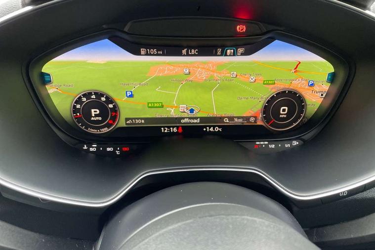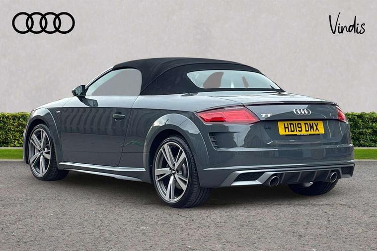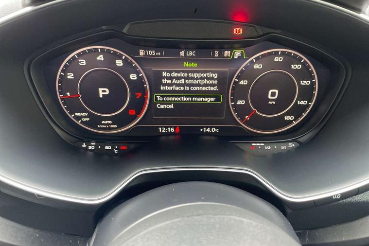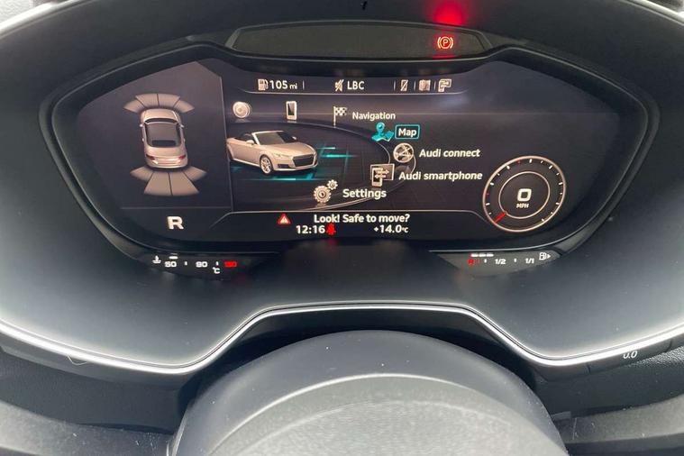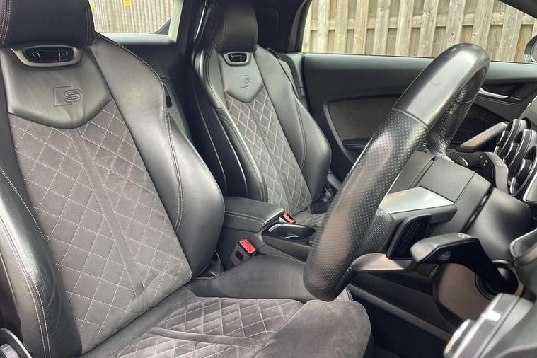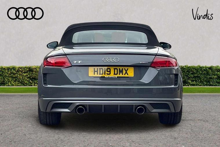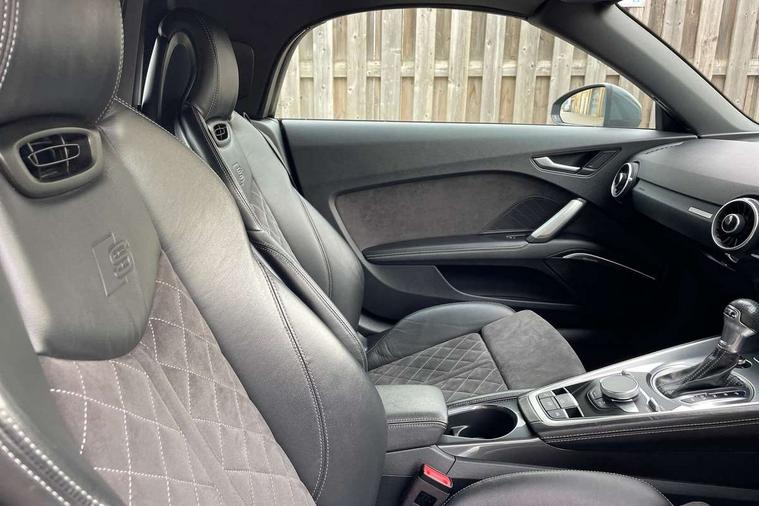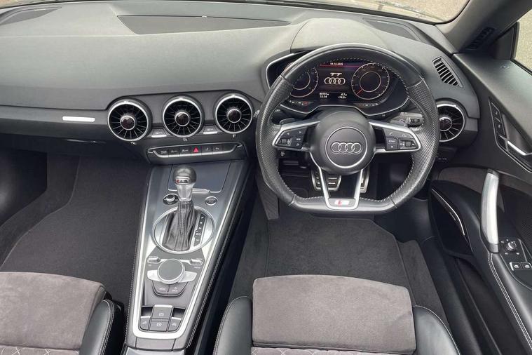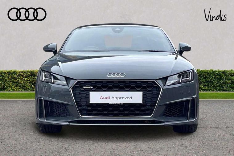 Audi active lane assist, Audi drive select with 4 Pre configured modes, Cruise control + speed limiter, MMI touch panel, Mobile phone preparation with bluetooth interface, Progressive power assisted steering, Rear parking sensors, Service interval indicator, Start/Stop system with energy recuperation, TP memo, 8 speakers, AM/FM radio, Audi music interface, Bluetooth audio streaming, DAB Digital radio, MMI Radio with CD player and SD/XC card slot, Auto dimming rear view mirror, Auto headlight range control, Body colour bumpers, Dynamic rear indicators, Electric front windows, Front fog lights, Green tinted heat insulating glass, Headlight wash system, High gloss black radiator grille, LED daytime running lights, Light and rain sensors, Retractable rear spoiler, S line badges on front wings, S Line body styling, S Line front and rear bumpers, S line rear diffuser with platinum grey insert, S line sill plates, Sunband for windscreen, 12V socket, 3 spoke flat bottomed high multi-function leather sport steering wheel with gearshift paddles, 4 way electric lumbar support for driver and front passenger, Black headlining, Door sill trims with S line logo, Extended aluminium look with stainless steel pedals, Front centre armrest, Front super sports seats, Heated front seats, Height adjustable driver's seat, Height adjustable front head restraints, Height/reach adjust steering wheel, ISOFIX child seat mounting for front passenger seat with airbag deactivation, Perforated leather gearknob, Rear head restraints, Rear top tether child seat ISOFIX attachment, S Line badge on steering wheel, Split folding rear seat, Tool kit, Top tether anchor plate for isofix child seat, Non smoking pack - TT/TT RS, 3 point front seat belts, ABS, ASR traction control, Brake energy regeneration, Curtain airbags, Driver and front passenger airbag with front passenger airbag deactivation, EDL traction control, Electromechanical parking brake, ESP, First aid kit, Front side airbags, Head airbags, Hill hold assist, Roll bar in glossy black, Seatbelt warning, Tyre pressure warning, Warning triangle, Anti theft alarm, Anti theft wheel bolts, Immobiliser, Keyless Go, Remote central locking, Matt brushed aluminium inlays, Tyre repair kit,