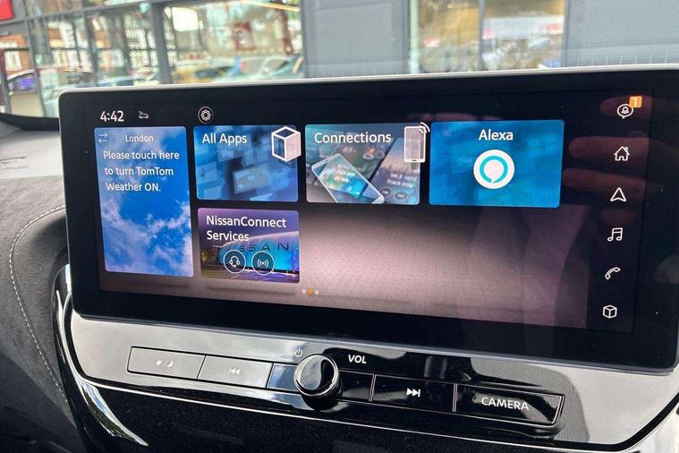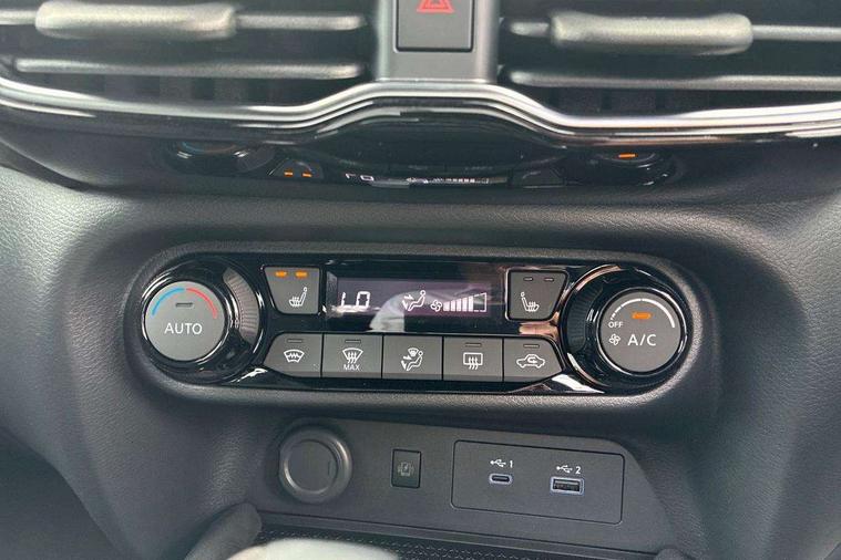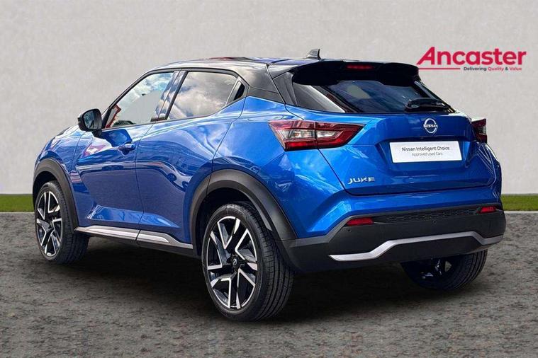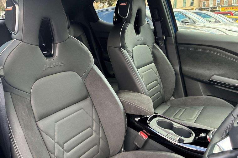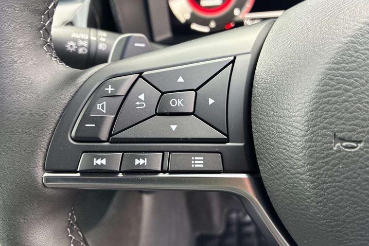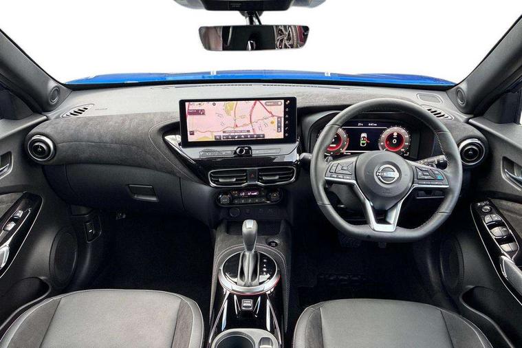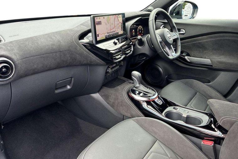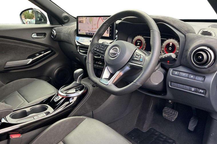 12.3" full colour TFT screen combimeter, Drive modes select (Eco, normal and sport), Emergency and breakdown call, Front parking sensor, Idle start/stop system, Intelligent driver alert system, Intelligent lane intervention, Lane departure warning system, Nissan connect 12.3" touch screen entertainment system, Nissan connect nav with TomTom traffic, Nissan connect services, Outside temperature sensor, Power Steering, Rear parking sensor, Stop/start button, Traffic sign recognition, Trip computer, Voice recognition, WiFi connectivity, Wireless Apple CarPlay and Google Android auto, Wireless Smartphone charger, 10 Bose speakers 8 speakers and 2 headrest speakers for driver/passenger seats, 2 X Rear console USB port, Bluetooth system, USB, Aux-in and 12V socket, Bose personal plus audio system, DAB Digital radio, Auto dimming frameless rear view mirror, Automatic hazard signal with emergency stop signal, Body colour door handles, Electrically adjustable door mirrors with integrated indicators, Follow me home headlights, Front and rear electric window with one touch driver window, High beam assist, LED 3rd brake light, LED daytime running lights, LED front fog lights, LED headlamps, LED rear fog lamp, LED rear lamps, One touch passenger window, Rear privacy glass, Rear side wing doors, Rear wiper, Roof spoiler, Shark fin roof antenna in solid Black, Solid black door mirrors, Solid black front bumper/rear bumper and side skirts inserts, Three blink turn signal, 3 height adjustable rear headrests, 3 seat bench in 2nd row, 60/40 split folding rear seat, Card holder on driver sunvisor, Door ambient lighting, Driver seat back pocket, Driver side rear coat hanger, Driver/passenger sunvisors and vanity mirrors, Front and rear cabin lights, Front armrest, Front door pockets with bottle holders, Front head restraints, Front/rear passenger grab handles, Gear console ambient circle lighting, Height adjustable driver's seat, Internal chrome door handles, Luggage board, Luggage space lighting, Monoform sporty seats, Multifunction steering wheel, Passenger seat back pocket, Rear door bottle holders, Single front passenger seat, Smooth synthetic leather steering wheel, Steering wheel mounted gearshift paddles, Synthetic leather kneepad, Synthetic leather shift knob, Telescopic steering wheel adjustment, Two cupholders in front centre console, Two rear isofix child seat anchorage points with top tether, Welcome light and console tray ambient lighting, Comfort pack - Juke, Heat pack with height adjustable passenger seats - Juke, Interior personalisation pack - Juke, ProPilot pack - Juke Auto, Satin grey exterior personalisation pack - Juke, ABS with EBD and brake assist, Active ride control, Active Trace Control, Driver and passenger airbags, Driver and passenger side airbags, Electric handbrake with auto hold function, Electronic Stability Programme (ESP), Front and rear curtain airbags, Height adjustable seatbelts, Hill start assist, Intelligent emergency braking with pedestrian and cyclist recognition, Rear door child safety locks, Seatbelt reminder for driver/front passenger and rear seats, Three 3 point rear seatbelts, Traction control, Tyre pressure monitoring system, VDC Dynamic Vehicle Control, Alarm, Immobiliser, Intelligent key and start push button with walk away lock and approach unlock functions, Remote central locking, 19" Alloy wheels with deep 3D effect, Tyre puncture repair kit,