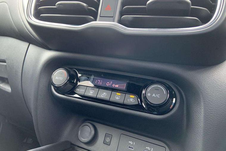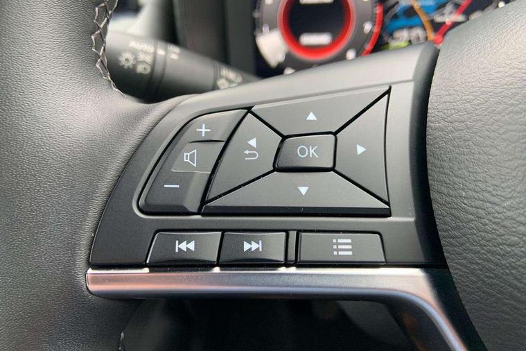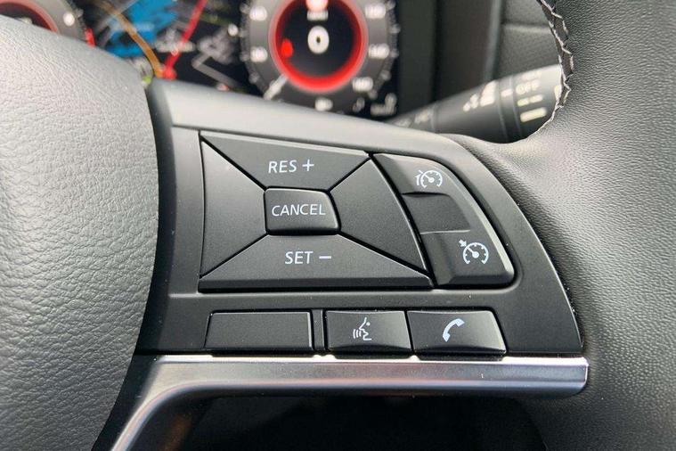 12.3" full colour TFT screen combimeter, Drive modes select (Eco, normal and sport), Emergency and breakdown call, Front parking sensor, Idle start/stop system, Intelligent driver alert system, Intelligent lane intervention, Lane departure warning system, Nissan connect 12.3" touch screen entertainment system, Nissan connect nav with TomTom traffic, Nissan connect services, Outside temperature sensor, Power Steering, Rear parking sensor, Stop/start button, Traffic sign recognition, Trip computer, Voice recognition, WiFi connectivity, Wireless Apple CarPlay and Google Android auto, Wireless Smartphone charger, 2 X Rear console USB port, 6 speakers, Bluetooth system, USB, Aux-in and 12V socket, DAB Digital radio, Auto dimming frameless rear view mirror, Automatic hazard signal with emergency stop signal, Body colour door handles, Electrically adjustable door mirrors with integrated indicators, Follow me home headlights, Front and rear electric window with one touch driver window, Heated and auto folding door mirrors, High beam assist, LED 3rd brake light, LED daytime running lights, LED headlamps, LED rear fog lamp, LED rear lamps, One touch passenger window, Rain sensor windscreen wipers, Rear privacy glass, Rear side wing doors, Rear wiper, Roof spoiler, Shark fin roof antenna in solid Black, Three blink turn signal, 3 height adjustable rear headrests, 3 seat bench in 2nd row, 60/40 split folding rear seat, Automatic climate control, Card holder on driver sunvisor, Cloth/Synthetic leather with melange fabric inserts, Driver side rear coat hanger, Driver/passenger sunvisors and vanity mirrors, Front and rear cabin lights, Front armrest, Front door pockets with bottle holders, Front head restraints, Front/rear passenger grab handles, Height adjustable driver's seat, Internal chrome door handles, Leather gearshift knob, Luggage board, Luggage space lighting, Monoform sporty seats, Multifunction steering wheel, Rear door bottle holders, Single front passenger seat, Smooth synthetic leather steering wheel, Synthetic leather kneepad, Telescopic steering wheel adjustment, Two cupholders in front centre console, Two rear isofix child seat anchorage points with top tether, Welcome light and console tray ambient lighting, ABS with EBD and brake assist, Active ride control, Active Trace Control, Driver and passenger airbags, Driver and passenger side airbags, Electric handbrake with auto hold function, Electronic Stability Programme (ESP), Front and rear curtain airbags, Height adjustable seatbelts, Hill start assist, Intelligent emergency braking with pedestrian and cyclist recognition, Rear door child safety locks, Seatbelt reminder for driver/front passenger and rear seats, Three 3 point rear seatbelts, Traction control, Tyre pressure monitoring system, VDC Dynamic Vehicle Control, Alarm, Immobiliser, Intelligent key and start push button with walk away lock and approach unlock functions, Remote central locking, 17" Alloy wheels, Tyre puncture repair kit,