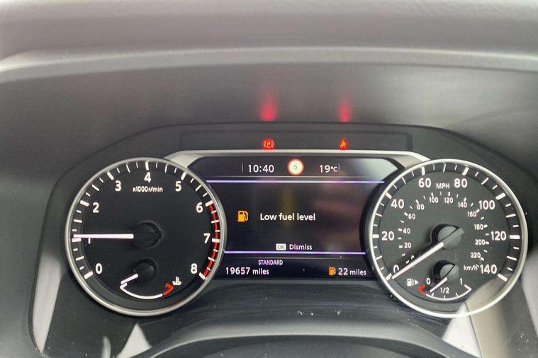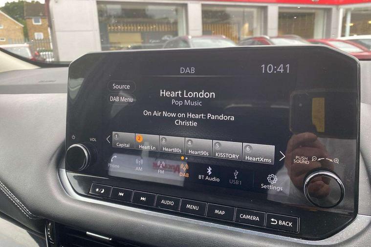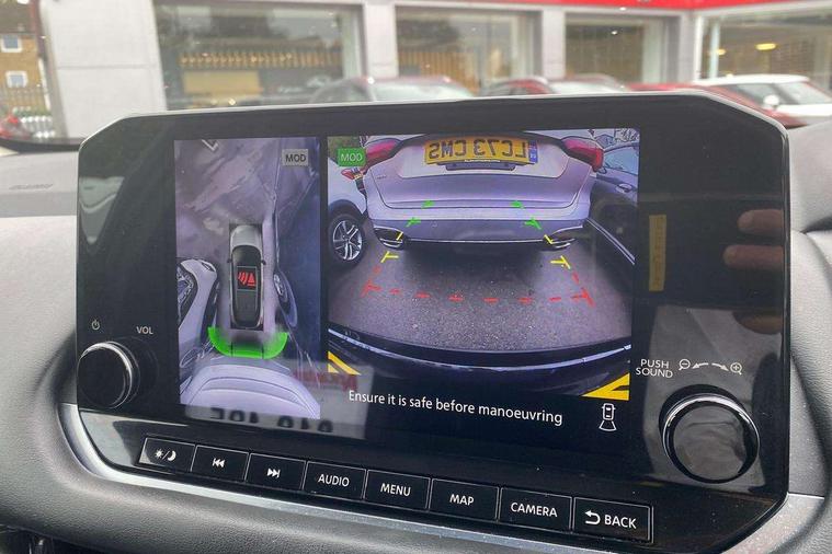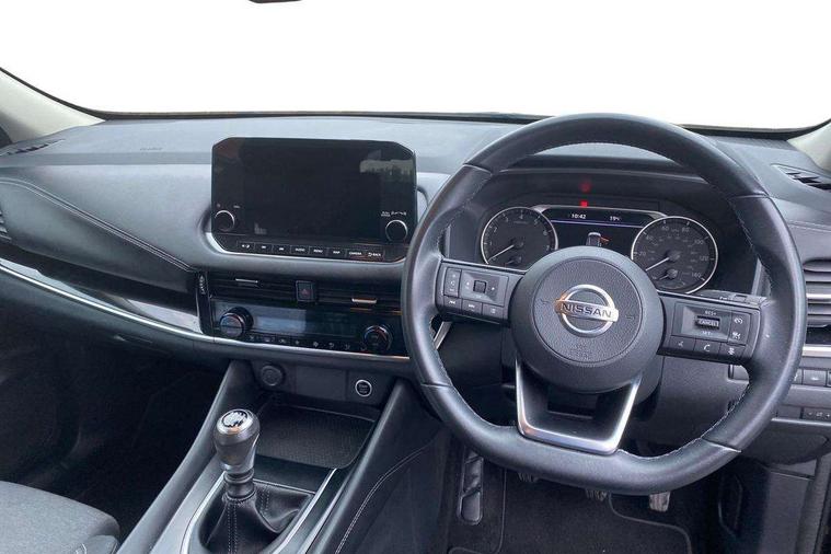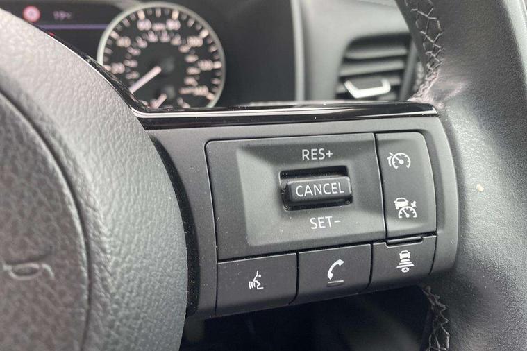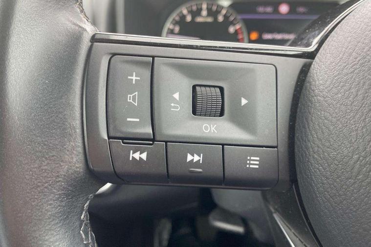 Blind spot warning, Drive modes (sport, normal, eco), Electric speed sensitive power steering, Emergency and breakdown call, Front and rear parking sensors, Full Digital 12.3" TFT Digital Combimeter, Google maps services - search, weather, 3D maps and Google street view, Idle stop/start system, Intelligent around view monitor, Intelligent Cruise control (ICC), Intelligent driver alert system, Intelligent forward collision warning, Intelligent lane intervention, Lane departure prevention, Lane departure warning system, Maximum speed limiter, Moving object detection, Nissan connect 12.3 inch touchscreen infotainment system, Nissan connect navigation, Push button starter, Rear cross traffic alert, Remote control services - door locks, lights, horn and car locator, Telematics - notifications and connectivity services, TomTom live traffic services, Traffic sign recognition with legal speed adjustment, Trip computer, Virtual personal assistant and firmware over the air capability, Wireless Apple CarPlay and wired Android Auto, 6 speakers, AM/FM audio system with DAB, Bluetooth audio streaming, Front USB connections (Type-A and Type-C), Rear USB charging only ports (Type-A and Type-C), Auto dimming rear view mirror, Auto rear wiper when reversing, Automatic hazard signal with emergency stop signal, Body colour mirror caps, Body coloured door handles, Bodyside mouldings, Chrome side window finisher, Door handle with button, Dusk sensor, Electric auto folding door mirrors, Electrically adjustable and heated door mirrors with LED turn indicator, Follow me home headlights, High beam assist, Intelligent auto headlights, LED daytime running lights, LED Headlights, LED rear lights, One touch front and rear electric windows with remote opening and closing, Partially body coloured bumpers, Privacy glass, Rain sensor, Rear bumper with graphite insert, Rear reversing light (bulb lighting), Rear roof spoiler, Rear side wing doors, Rear styling plate, Shark fin antenna, Splash free rain sensing wipers, Super UV and infrared cut glass, Three blink turn signal, 12v power socket in dashboard and luggage, 2 way electrical driver lumbar adjustment, 2x Rear coat hooks, 3 bench rear seats in 2nd row, 3 rear headrests, 4 folding assist grip, 6 Luggage hooks - 4 on floor, 2 on side, 6-way manually adjustable driver's seat, 60/40 split folding rear seat bench, Ambient lighting around centre console, Centre console storage tray, Chrome interior door handles, Cloth monoform upholstery, Driver and front passenger sunvisors with illuminated vanity mirrors, Driver seat back pocket, Dual zone automatic climate control with pollen filter, Front and rear door storage, Front cupholders x 2, Front door with bottle holders, Glovebox with light, Hard trunk cover, Height adjustable front headrests, Leather shift knob, Leather steering wheel, Luggage board system, Luggage space lighting, Manually adjustable passenger (slide recline + lifter), Multifunction steering wheel, Passenger seat back pocket, PVC front centre console and armrest, Rear armrest with 2 cupholders, Rear door bottle holders, Single front passenger seat, Soft PVC kneepad, Steering wheel switches, Sunglasses holder, Tilt/telescopic adjustable steering wheel, Two rear isofix child seat anchorage points with top tether, Welcome light and console tray ambient lighting, 3x3 point rear seatbelt pretensioners + load limiters, ABS, ESP, EBD and brake assist, Active brake limited slip, Auto hold function, Child locks on rear doors, Curtain and front side, far side airbags, Driver and passenger airbags, Driver, passenger and 2nd row rear seat belt reminder, Electronic parking brake, Front seatbelt pretensioners + load limiters, Height adjustable front seatbelts, Hill start assist, Intelligent blind spot intervention, Intelligent front emergency braking with pedestrian, cyclist recognition and junction assist, Intelligent rear automatic braking, Tyre pressure monitoring system, Vehicle dynamic control, Capless fuel filler, Engine immobiliser, Nissan i-key, Remote central door locking with deadlocking, Thatcham Cat.1 alarm, Interior instrumental panel B finisher, 18" Diamond cut alloy wheels, Tyre puncture repair kit,