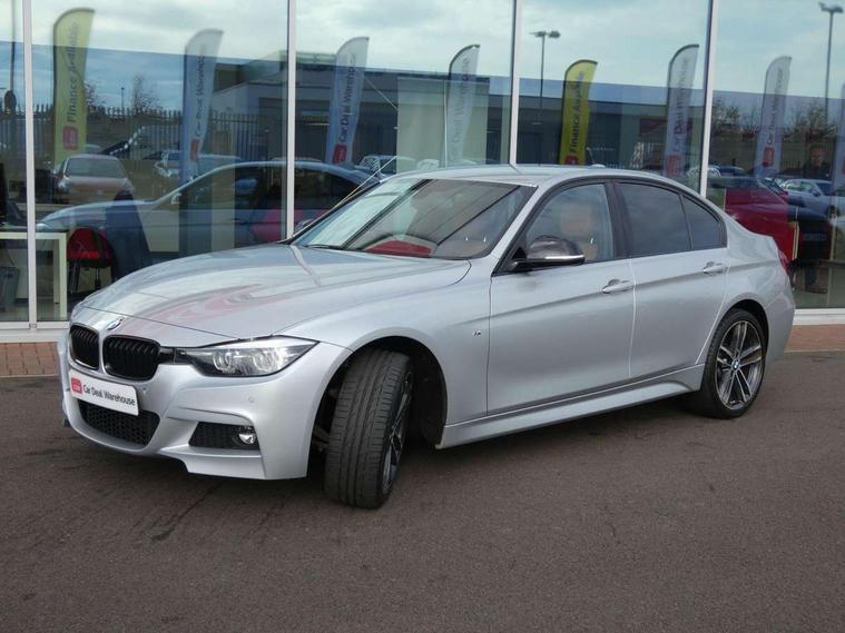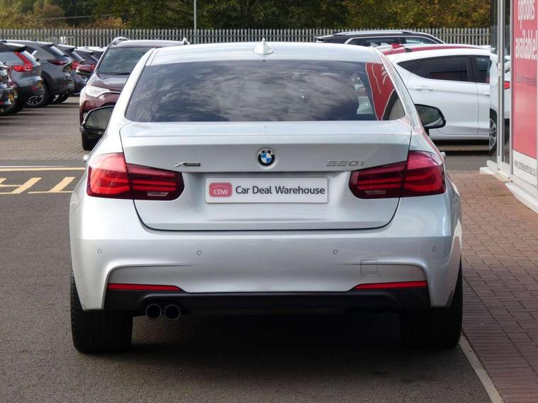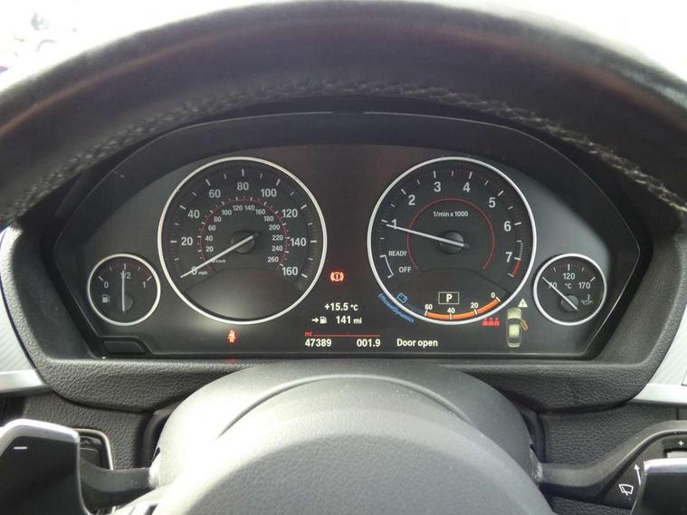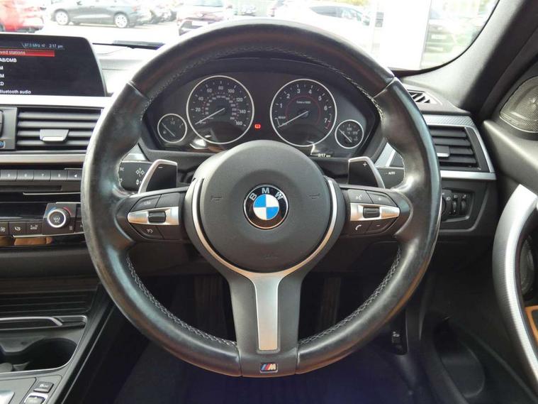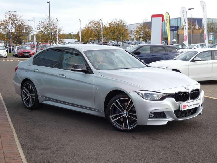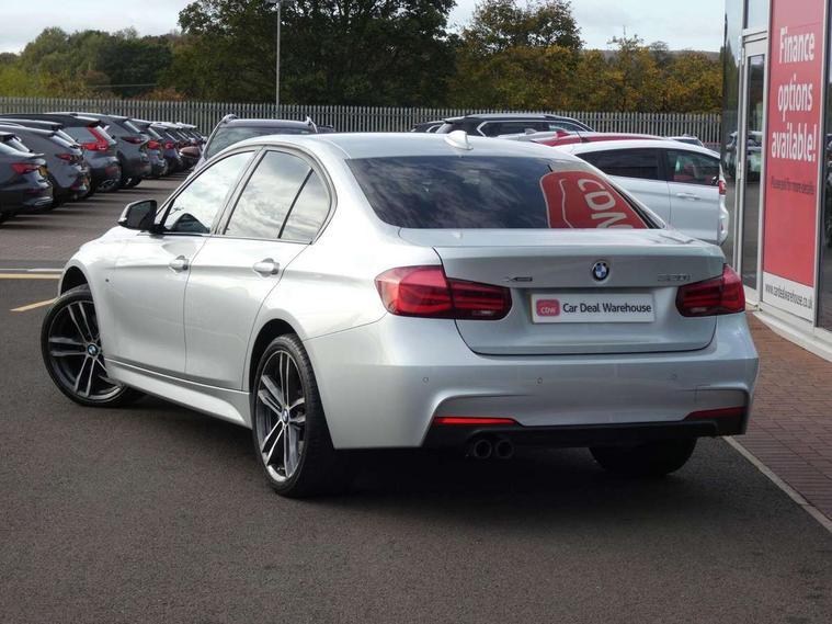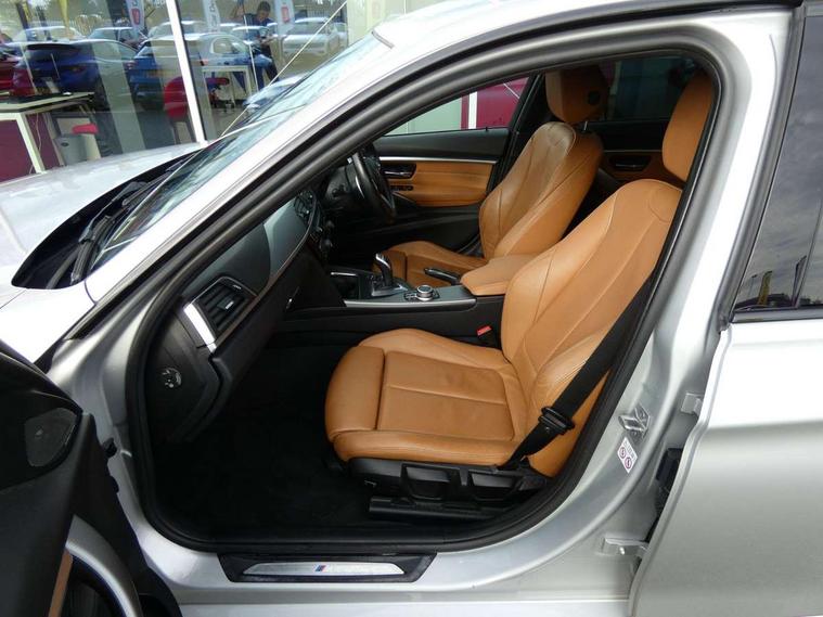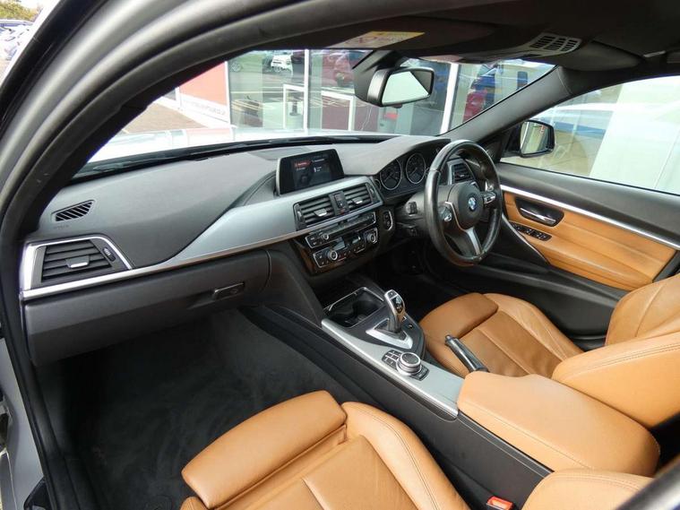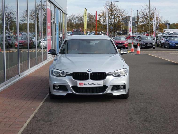 BMW Online services, BMW remote services, BMW Teleservices, Brake force display, Brake pad wear indicator warning light, Check control system, Digital clock, Door/boot open warning light, Lights on warning, Oil temperature gauge, On board computer, On board diagnostics, Operation warning of all exterior lights, Outside temperature display, Push button starter, Real time traffic information, Run flat tyre indicator, Service interval indicator, Traffic message channel (TMC), Drive Performance Control, Electronic differential lock, Sports function on gearbox with steering wheel mounted gearshift paddles, BMW professional radio/CD/MP3, CD Changer preparation, DAB Digital radio, Harman/Kardon logic 7 surround sound system, 'Guide me home' headlamps, 2 speed adjustable intermittent wipers with wash/wipe function, Auto dimming rear view mirror, Automatic headlight beam throw control, Black high gloss door mirrors, Body colour bumpers, Body colour door handles, Body colour roof mouldings, Clear indicator lenses, Dark chrome exhaust tailpipe, Dark headlamp surround, Door sill finishers, Dynamic brake lights, Electric adjustable door mirrors, Electric front and rear windows with one touch/convenient open/close function, Green tinted heat insulating glass, Heated rear window with automatic switch off, Heated windscreen washer jets, High beam assistant, High gloss shadow line, Individual sun protection dark tinted glazing for rear window and rear side door windows, kidney grille with high gloss black vertical slats, LED daytime running lights, LED fog lights, Rain sensor + automatic driving lights control, Shark fin roof aerial, 12V sockets in front centre console and passenger footwell, 2 x folding cupholders in instrument panel above glovebox, 3 rear seat head restraints, 4 foldable grab handles - rear with clothes hook, 4 lashing points to secure luggage, 40:20:40 split folding rear bench seat, Automatic interior light soft on/soft off system, Driver and passenger sunvisors with vanity mirrors + slide cover, Dual zone automatic air conditioning, Folding front centre armrest + storage, Front and rear door armrests, Front and rear velour floor mats, Front door storage bins with bottle holder, Front sports seats with electric side bolster adjustment, Glovebox light, Height adjustable front headrests, Indirect front interior illumination - soft-light function, Individual anthracite headlining, Isofix system on outer rear seats, Leather gear knob, Leather gear selector lever handle, Leather handbrake grip, Lockable glovebox, Luggage compartment lighting, Multi-function controls for steering wheel, Reach + rake adjustable steering column, Rear centre armrest with 2 cupholders, Rear storage compartment in multifunction centre console with sliding cover, Storage compartment in rear doors, Toolkit located in luggage compartment, Extended lighting package - 3 Series, Extended storage pack - 3 Series Saloon, 3 point inertia reel seatbelts + pre-tensioners on outer rear seats, ABS, Automatic Stability Control (ASC), BMW emergency call, Cornering brake control (CBC), Crash sensor, Driver and passenger airbags, DSC+, Dynamic brake control, Dynamic Traction Control - DTC, Front and rear head airbags, Front passenger airbag deactivation, Front seat side impact airbags, Front seatbelt pretensioners + load limiters, Hill start assist, M Sport braking system, Rear child proof door locks, Seatbelt warning, Three 3 point rear seatbelts, Twin horns, Tyre pressure monitor, Warning triangle and first aid kit, Automatic drive away locking facility, Central locking fuel filler cap, Centre lock switch, Electronic immobiliser, Key integrated remote control central locking, Remote control alarm, 19" M double spoke alloy wheels style in bicolour orbit grey - style 704M, Low rolling resistance tyres, Run-flat tyres,