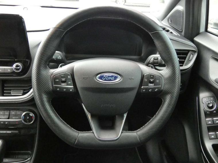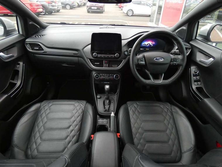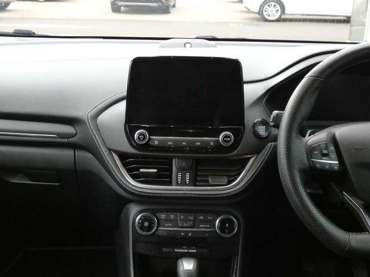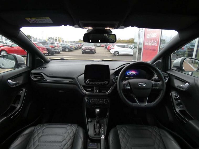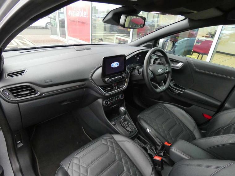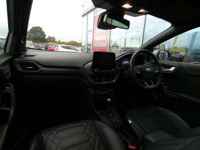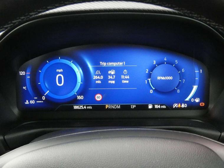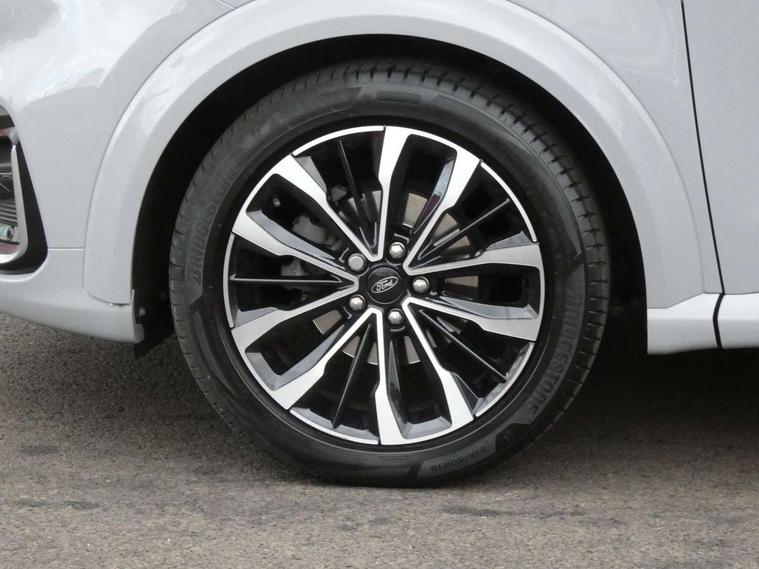 Driver impairment monitor, Emergency call service, Ford easy fuel, Front and rear parking sensors, Full digital 12.3" instrument cluster, Lane keeping aid with lane departure warning, Power assist steering, Selectable drive modes(Normal, sport, Eco, trail, slippery), Speed sign recognition, Sport suspension, Automatic headlights with auto high beam, Automatic rain sensing wipers, Bodyside chrome styling, Fixed LED signature headlamps, Front fog lamps, Gloss black with chrome elements on front and rear bumpers, High chrome waistline, LED daytime running lights, LED rear lamps, Power foldable heated door mirrors with puddle lamps and puma logo protection, Privacy glass to side rear windows and tailgate glass, Quickclear heated windscreen, Rear side wing doors, Rear wiper, Third brake light, Vignale body styling kit with unique grille and large body colour rear spoiler, 3 seat bench in 2nd row, Centre console with armrest and stowage, Electronic automatic temperature control (EATC), Ford megabox extended bootspace, Front and rear floor mats, Front and rear head restraints, Heated steering wheel and heated front seats, Manual 4 way driver seat adjust with lumbar adjustment and massage function, Manual 4 way passenger seat adjust with lumbar adjustment and massage function, Premium sensico leather upholstery with metal grey stitching, Premium sensico perforated flat bottomed steering with metal grey stitching, Premium sensico wrapped instrument cluster, Single front passenger seat, Wireless charging pad with electronic air temperature control (EATC), B&O Premium Audio system + Ford SYNC 3 navigation pack - Puma, Driver assistance pack with Lane departure warning - Puma, Winter pack - Puma, 3 rear seatbelts, Child safety lock, Electronic stability control (ESC) and hill start assist, Pedestrian/cyclist detection & post-collision braking, Pre collision assist with autonomous emergency braking, Tyre pressure monitoring system (TPMS), Keyless entry and power start button, Thatcham alarm, Carbon look interior deco spears,