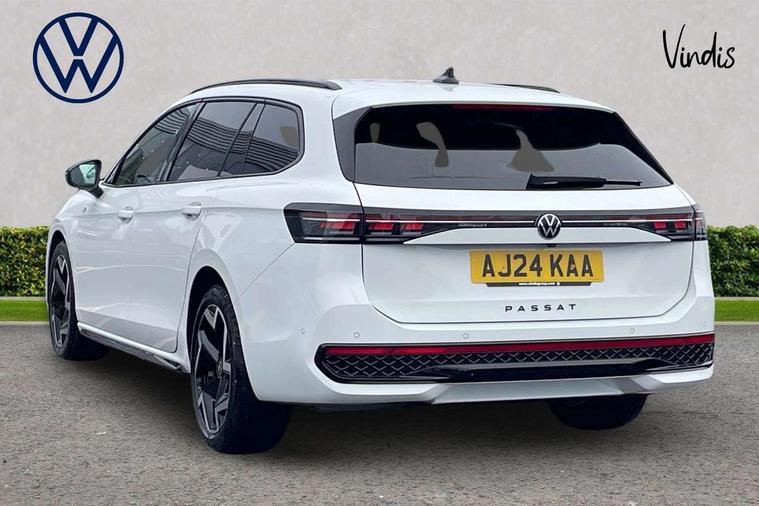 2 x Front USB-C ports, 2 x USB-C charging sockets on the centre console in the rear, charging capacity up to 45W, Adaptive cruise control, Advanced driver attention and drowsiness monitor, Digital cockpit pro 10.25" high resolution, Discover media navigation system includes streaming and internet, Dynamic road sign display, E-Sim card for online connectivity, eCall emergency call service, Full electric tailgate operation, Inductive smartphone charging without external antenna connection, Memory feature for park assist, Oncoming vehicle braking when turning including swerve support, Park assist with park distance control, Predictive speed limiter, Preparation for We connect and We connect plus, Wireless app connect, Battery 380 A (59 Ah) EFB+, Front wheel drive, Petrol Particulate Filter, Auto dimming interior rear view mirror, Automatic headlights, Body colour bumpers, Body colour door handles, Heated windscreen washer jets, LED third brake light, Rain sensor, Rear side wing doors, Rear wiper, Welcome light with surround lighting, 3 seat bench in 2nd row, 3 zone air care climatronic with rear air conditioning control panel, 30 colours options interior ambient lighting, Brushed stainless steel pedals, Front + rear carpet mats, Front head restraints, Front sports seats, Isofix child seat preparation, easy-fit (for two outer rear seats, and front passenger seat), compatible with I-size, Luggage compartment cover, power operated, Rear centre armrest, Single front passenger seat, Sun visors with illuminated vanity mirrors for driver and front passenger, Sunblind for rear side windows, Three rear head restraints, Unsplit rear seat bench, split folding backrest, Acoustics pack - Passat Estate, LED High matrix headlamps pack - Passat, 3x3 point rear seat belts, ABS (Anti locking brake system) includes BAS (Brake assist) and EBD (Electronic brake pressure distribution), Autonomous emergency braking front assist with pedestrian and cyclist monitoring, Disc brakes in front, Driver/Front Passenger airbags, Drivers knee airbag, Electronic parking brake with auto hold, ESC (Electronic stability control) + EDL (Electronic Differential lock) and ASR (Traction control), EDTC (Engine drag torque control), Extended safety system with proactive passenger protection system, Front passenger airbag deactivation switch, Hill hold function, Tyre pressure loss indicator, Warning triangle and first aid kit, Alarm with interior protection, Electronic engine immobiliser, Keyless locking and starting system keyless access with safelock, Tool kit for tyre mobility set, Trims for alloy wheels,