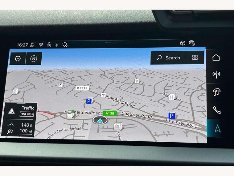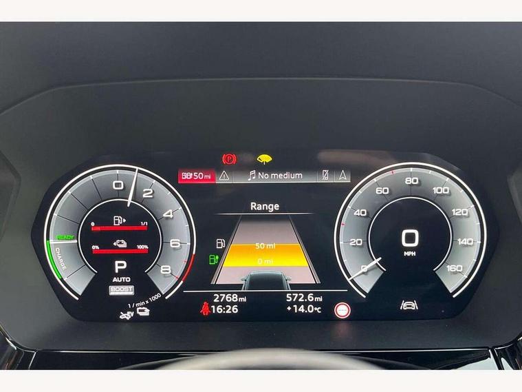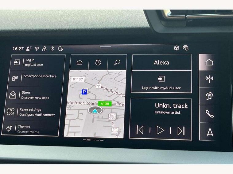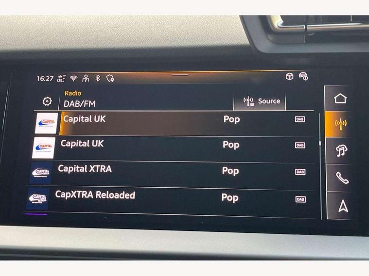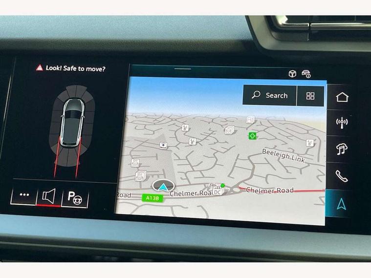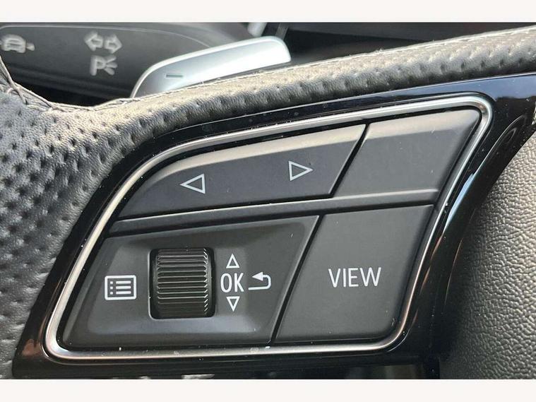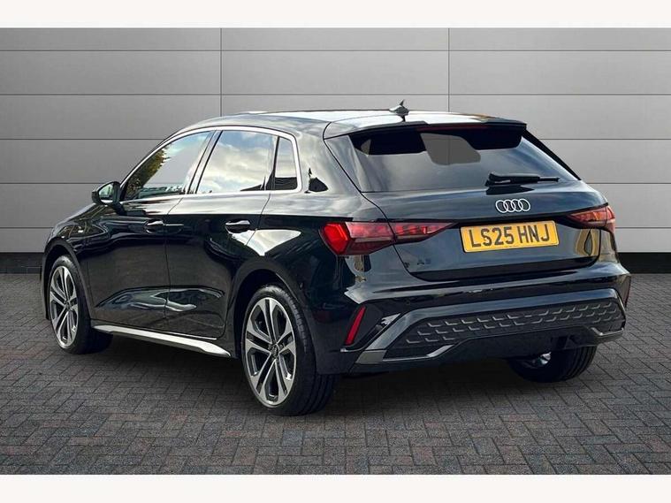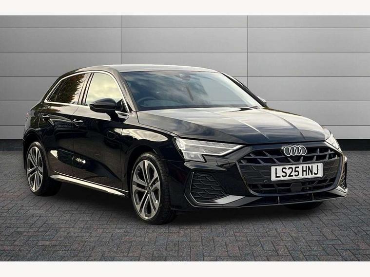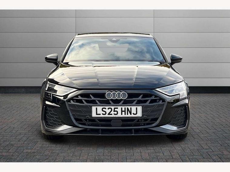 Adjustable speed limiter, Audi drive select, Audi smartphone interface with app store includes wireless Apple carplay, Android auto and Amazon alexa integration, Audi virtual cockpit plus - 12.3" full HD resolution dynamic digital instrument cluster, Automatic start/stop system with recuperation, Bluetooth interface, Camera based traffic sign recognition, Collision avoidance assistant, Cruise control, Distraction and Fatigue warning, e-Call (emergency call), Electromechanical power speed sensitive steering, Lane departure warning system, MMI Navigation Plus with high resolution 10.1" colour touch screen display, Park Assist with parking system Plus, Service indicator, Trip computer, Voice control system with natural language interaction, 3 pin 10 amp domestic charging cable, CCS socket for DC charging, Charging cable for public charging, mode 3 (type 2), up to 22 kW (AC), Compact charging system, Industrial connector CEE 32 A, 230 V, length 1.6 m, Standard suspension, Type 2 socket for AC charging, Audi Phonebox light with wireless charging, Audi sound system - 10 loudspeakers including centre loudspeaker and subwoofer, DAB Digital radio, USB ports with charging function in the rear, Acoustic glass windscreen, Aluminium window trim, Auto dimming frameless rear view mirror, Body colour exterior mirrors, Chrome exhaust tailpipes, Electrically adjustable/heated/folding/auto dimming door mirrors with integrated LED indications + kerb view function for passenger side, Exterior model badging, Front and rear side air inlets in grained matt black with dark liquid chrome frame, Front electric windows, Front radiator grill in high gloss dark chrome, Heat insulating glass windscreen, Illuminated door sills with aluminium inserts at the front with S logo, LED 3rd brake light, LED daytime running lights, LED headlights with LED rear lights and dynamic rear indicators, Light and rain sensors, Privacy glass - dark tinted rear window, rear door and side windows, Rear diffuser and grill in grained matt black with inlay in dark liquid chrome, Rear electric windows, Rear side wing doors, Rear wiper, S line bumpers, S roof spoiler, Side S line emblems on front wings, Side sill trim in dark liquid chrome, 12V socket and storage compartment in front centre console, 3 seat bench in 2nd row, 3 spoke flat bottomed leather multifunction sport steering wheel with gear shift paddles, 3-zone deluxe automatic air conditioning, 4 way electrically adjustable lumbar support for driver and front passenger, 40/20/40 split folding rear seat bench, Black cloth headlining, Convenience auxiliary air conditioning, Front and rear centre armrest in artificial leather, Front and rear centre armrest in artificial leather with contrasting stitching on armrests and instrument panel, Front and rear headrests, Front/rear floor mats, Heated front seats, Height and reach adjustable steering wheel, Manual boot compartment lid, Manually adjustable front seats, Rear cup holders, S badging on the steering wheel, Seat side bolsters, Single front passenger seat, Stainless steel pedals and front footrest in black, Twin leather upholstery with front sports seats S embossed logo, Aluminium interior elements pack - A3 Sportback, Multi-coloured LED interior lighting package - A3, 3x3 point rear seat belts, Acoustic vehicle alerting system, Driver and front passenger airbag with passenger airbag deactivation, Electronic Stabilisation Control (ESC) including ABS, ASR and EDL, First aid kit with warning triangle and 2 safety vests, Front side airbags with head airbags and interaction airbag, Hill hold assist, Pre-sense front with pedestrian and cyclist detection, Seatbelt monitoring, Tyre pressure loss indicator, Anti theft alarm, Anti-theft wheel bolts, Electronically operated child locks, Immobiliser, Remote central locking with safelock, Dash & door Inlay in dark aluminium Spectrum, Tyre repair kit,