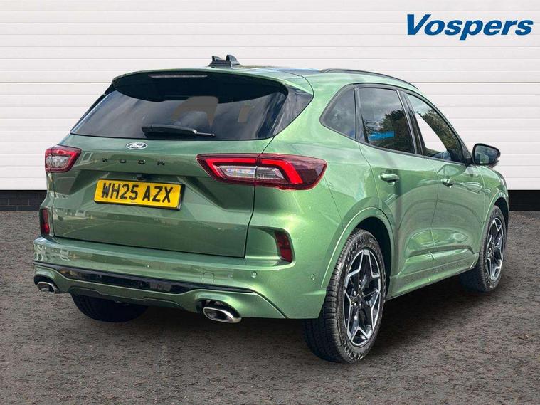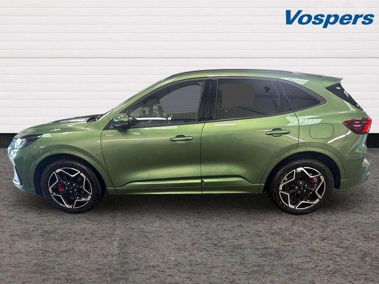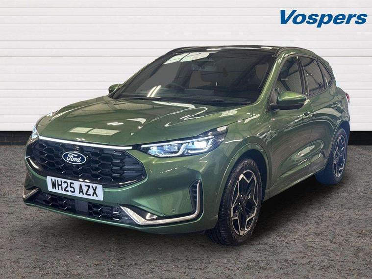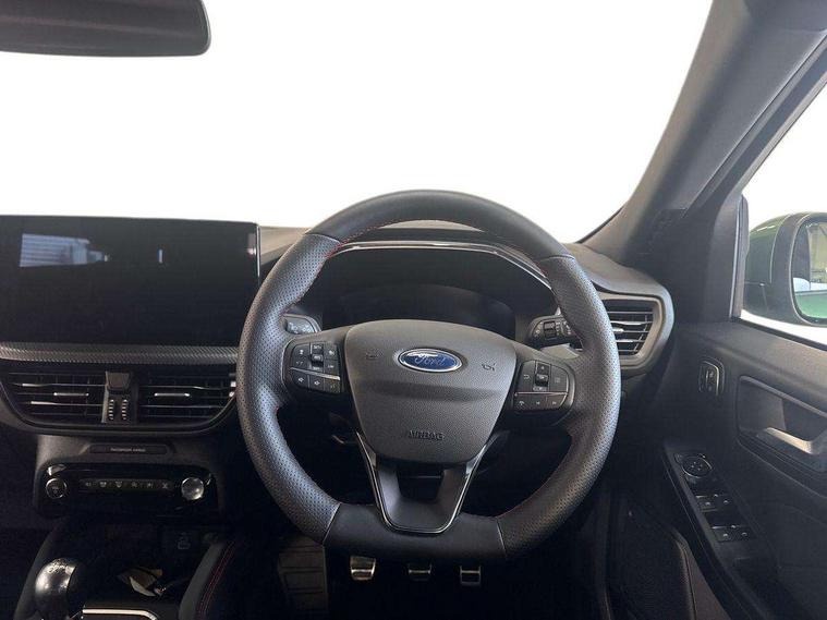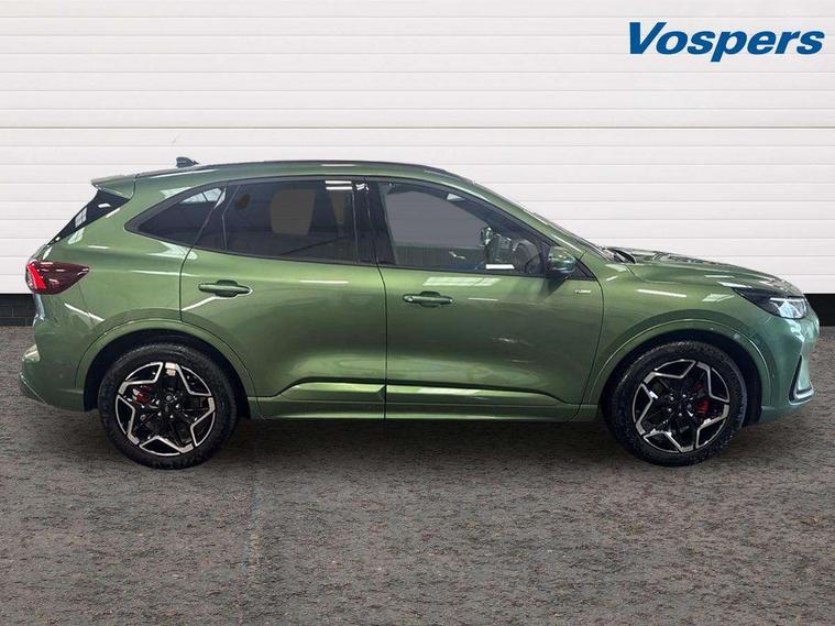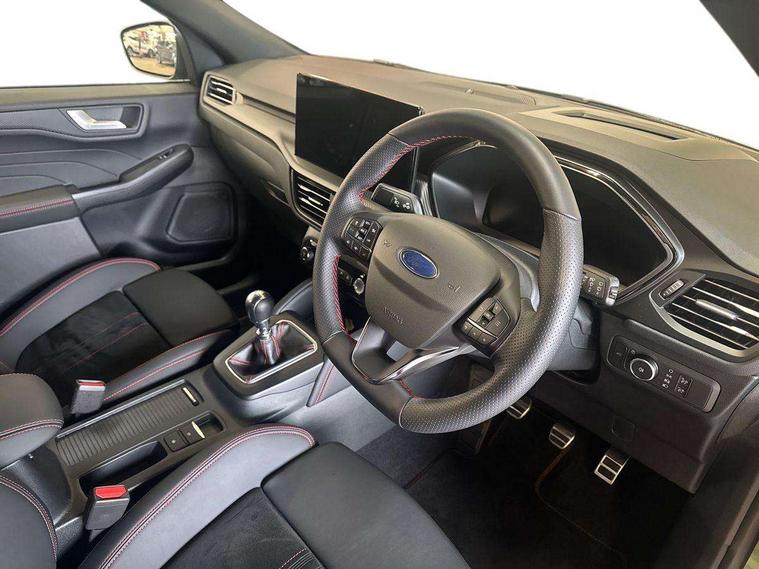 12.3" digital colour instrument cluster, 360 degree camera, e-Call (emergency call), Ford easy fuel, Ford SYNC 4 Navigation with 13" touchscreen, DAB radio, emergency assistance, Andriod Auto/Apple CarPlay, 5G modem & Ford Pass connect, Front and rear parking sensors, Hands free power tailgate, Lane keeping aid with lane departure warning, Power assist steering, Selectable drive modes, Service interval indicator, Sports suspension, Twist beam rear suspension, B&O premium audio system with 10 speakers, subwoofer and 2 USB ports, Auto headlamps with high and low beam, Black roof rails, Body colour bumpers, Front LED fog lamps, Large rear spoiler, LED daytime running lights, LED rear lights, Pop out door edge protectors, Power front/rear windows with global close, Power heated folding door mirrors with puddle lights, memory function and camera, Power opening panoramic roof, Quickclear heated windscreen, Rain sensing wipers, Rear privacy glass, Rear side wing doors, Rear wiper, ST-Line body styling kit, Third brake light, 12 way ergonomic power adjust driver's seat with memory (AGR certified), 12 way ergonomic power adjust passenger seat (AGR certified), 2nd row sliding seats, Electronic automatic temperature control (EATC), Front and rear head restraints, Partial premium touch sensico upholstery, Rear centre head restraint, Single front passenger seat, Sports seats, Driver assistance pack with intelligent adaptive cruise control - Kuga, Winter pack - Kuga, 3x3 point rear seatbelts, Airbags - front driver/passenger, front and rear curtain, Drivers knee airbag, Dynamic brake support, Electronic stability control (ESC) and ABS, Evasive steering assist, Ford MyKey Gen 2 safety system, Manual child proof rear door locks, Pre collision assist with autonomous emergency braking, Rear seat Occupancy alert, Red brake calipers, Tyre pressure monitoring system, Engine immobiliser, Keyless entry and Ford power start button (Keyless start), Locking wheel nuts, Remote powered central double locking doors, Thatcham category 1 alarm,