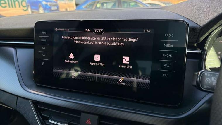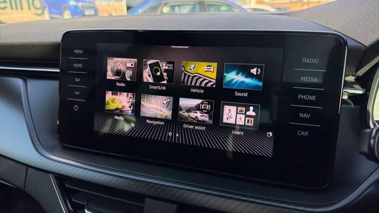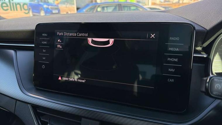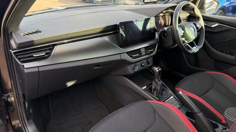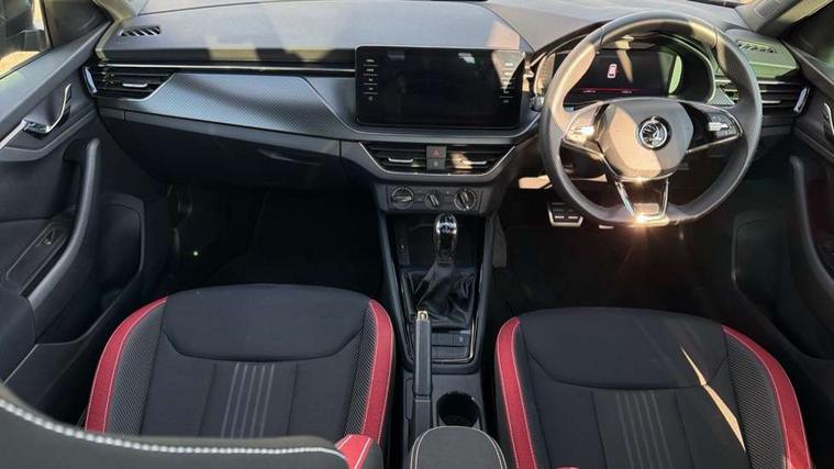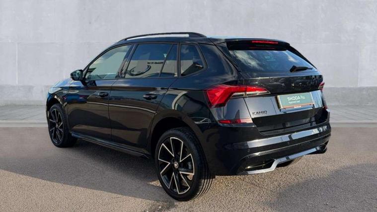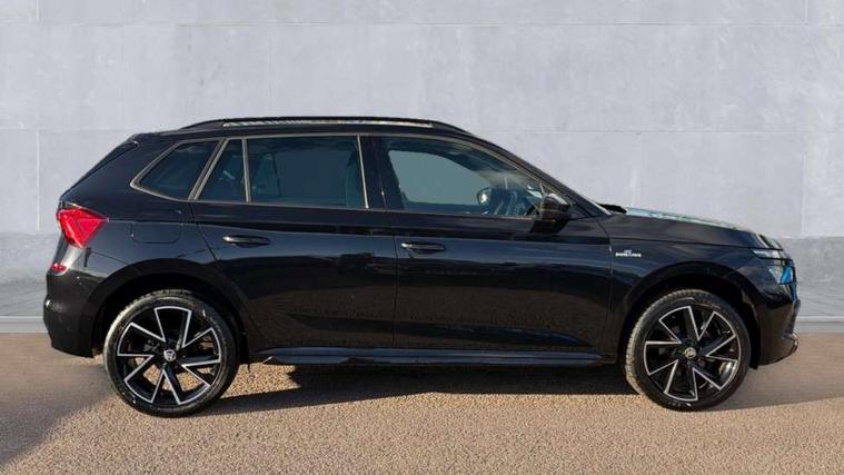 Amundsen satellite navigation with 9.2" glass colour touchscreen display, web radio, voice control and traffic sign recognition, Bluetooth system, E-call, Front assist system, Gesture control, PAS, Service indicator, Speed limiter, Wireless Smartlink for Apple CarPlay (wired for Android Auto), 8 Speakers, Auxiliary input socket, DAB Digital radio, Black door mirrors, Black radiator grille, Black rear diffuser, Body colour bumpers, Body colour door handles, Body colour roof spoiler, Boot lettering in black, Chrome grille surround, Dimming rear view mirror with black surround, Electrically adjustable and heated door mirrors, Fixed panoramic sunroof with black roof rails, Front and rear electric windows, Front sport bumper, Full LED headlights with adaptive front light system, cornering function, fog lights and dynamic indicators, Headlight range control, Heated rear window, High functionality rear led lights with dynamic indicators, KAMIQ Door sills, LED daytime running lights, LED third brake light, Light sensors, Monte carlo plaque, Privacy glass, Rain sensor, Rear fog lights, Rear side wing doors, Rear wiper, 12V Accessory socket in centre console, 3 seat bench in 2nd row, Aluminium pedals, Black ceiling for black/beige interior, Black roof lining, Chrome inner door handles, Cloth upholstery, Front head restraints, Glove compartment with illumination, Ice scraper, Isofix child seat fittings on outer rear seats, ISOFIX on front passenger seat, Leather gear lever, Manual lumbar support for front seats, Rake/reach adjustable steering wheel, Reading lights, Single front passenger seat, Sports seats, Sun visors with illumination on front passenger, Textile floor mats, Third rear headrest, Top tether for front passenger seat, Umbrella in driver's door, 3x3 point rear seatbelts, Airbags - driver and front passenger, ESP, Front passenger airbag deactivation switch, Front side airbags with curtain airbags, Hill hold control, Manual parking brake, Manual rear child locks, One tone horn, Rear disc brakes, Seatbelt reminder for driver an co-driver, Traction control, Tyre pressure monitor, Anti-theft alarm system with interior monitoring, backup horn, towing protection and remote central locking with SAFE system, Anti-theft wheel bolts, Electronic engine immobilizer, Chrome air vent surrounds, 18" Vega alloy wheels in black,