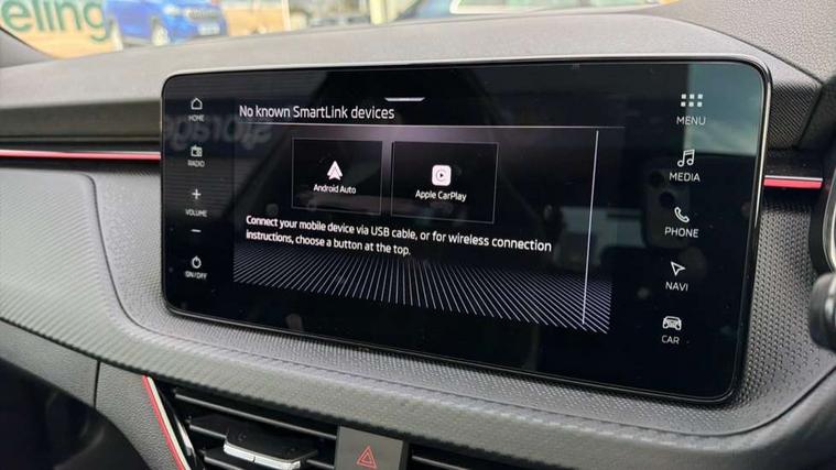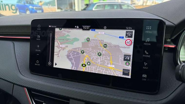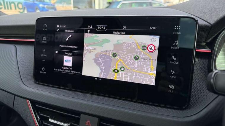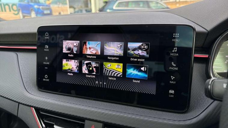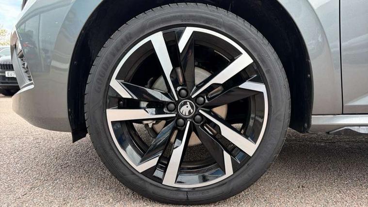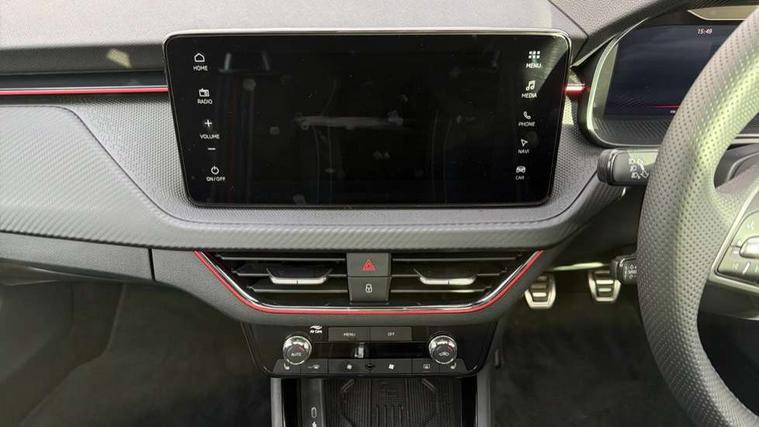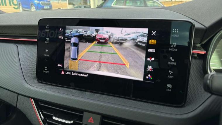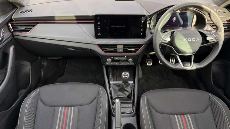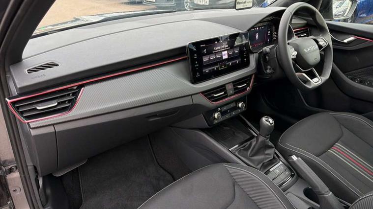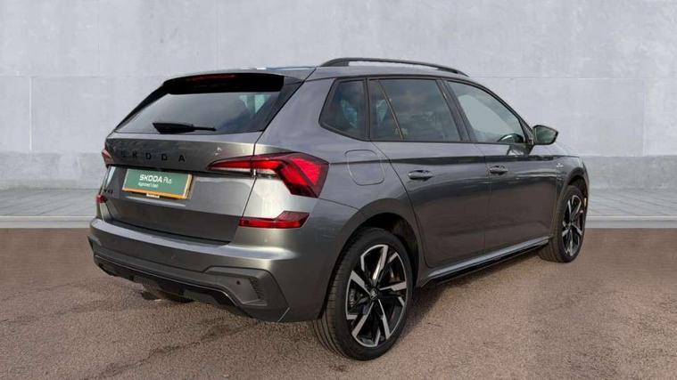 Advanced driver attention and drowsiness monitor, Bluetooth system, E-call, Front assist system, PAS, Rear parking sensors, Rear view camera, Service indicator, Speed limiter, Traffic sign recognition, Virtual cockpit with 10.25" display, Voice control system, Wireless smartlink, 4 USB C ports, 8 Speakers, 9.2" Skoda navigation display, DAB Digital radio, Auto dimming rear view mirror, Automatic headlight control with coming home and leaving home feature, Black door mirrors, Black radiator grille, Black rear diffuser, Black roof spoiler, Body colour bumpers, Body colour door handles, Boot lettering in black, Extended tailgate glass, Fixed panoramic sunroof with black roof rails, Front and rear electric windows, Heated rear window, LED daytime running lights, LED high beam, LED low beam, LED third brake light, Light sensors, Monte carlo plaque, Privacy glass, Rear side wing doors, Rear wiper, Ticket holder inside windscreen, 12V socket in luggage compartment, 3 seat bench in 2nd row, Aluminium pedals, Ambient lighting in white/red, Art leather carbon decor inserts, Art leather carbon door inserts, Black roof lining, Cargo elements, Chrome inner door handles, Driver and passenger sun visors with vanity mirror, Dual zone climate control, Front and rear roof lights, Front centre armrest, Front head restraints, Glove compartment with illumination, Height adjustable driver seat, Height adjustable front passenger seat, Ice scraper, Inner circulation control with pollen filter, ISOFIX on front passenger seat, Isofix preparation for back seats, Leather gearknob and handbrake lever, Manual lumbar support for front seats, Monte Carlo cloth upholstery, Net package and top tether hooks in boot space, Net under rear shelf, Pocket on the back of both front seats include mobile phone pockets, Rake/reach adjustable steering wheel, Reading lights, Rear centre armrests, Red hotstamping, Single front passenger seat, Sports seats, Textile floor mats, Third rear headrest, Top tether for front passenger seat, Umbrella in driver's door, Light and view plus package - Kamiq, 3x3 point rear seatbelts, Airbags - driver and front passenger, Disc brakes, ESP, Extended and predictive pedestrian/cyclist protection, Front passenger airbag deactivation switch, Front side airbags with curtain airbags, Hill hold control, Manual leather parking brake, Manual rear child locks, One tone horn, Seatbelt reminder for driver an co-driver, Traction control, Tyre pressure monitor, Anti-theft alarm system with interior monitoring, backup horn, towing protection and remote central locking with SAFE system, Anti-theft wheel bolts, Electronic engine immobilizer, 18" Ursa black diamond cut alloy wheels,