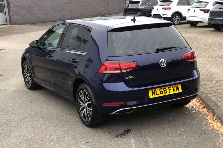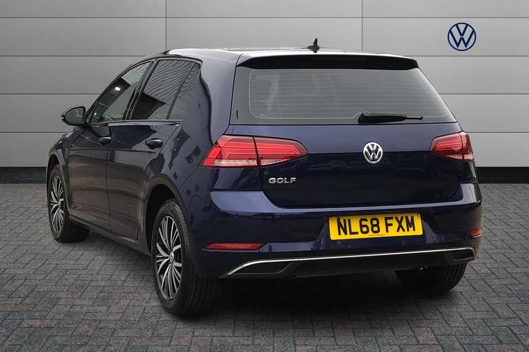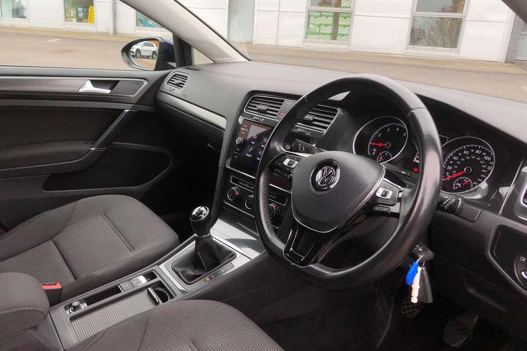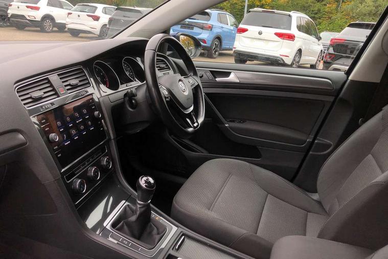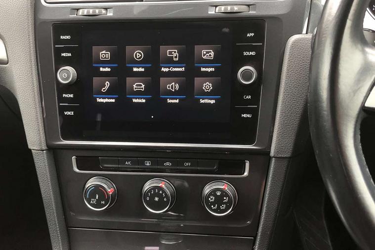 App-Connect, 'Lights On' Reminder warning buzzer, 8" colour touch screen, ACC - Adaptive cruise control with front assist, forward collision warning, distance monitoring, city emergency brake and speed limiter, Bluetooth hands free telephone connection, Brake pad wear indicator warning light, Driver alert system, Driver profile selection, Exterior temperature gauge, Front assistant collision mitigation, Instrument cluster in white, Multifunction computer, PAS - speed related, Power assisted speed sensitive electro-mechanical steering, Rev counter, Stop/start system, Trip and service interval display, Ultrasonic front and rear optical and audible parking sensors, Warning buzzer and light for front seatbelts unfastened, Battery regeneration during braking, XDS electronic differential lock, CD/MP3/WMA, USB and SD card reader, aux-in, Composition media system, DAB Digital radio receiver, Automatic coming/leaving home lighting function and rain sensor, Automatic dimming rear view mirror/rain sensor, Automatic headlights, Black front air intake and radiator grille with chrome insert, Black rear diffuser, Body colour bumpers, Body colour door handles, Body colour door mirrors with integrated indicators, Electric front windows, Electric rear windows, Electrically adjustable and heated door mirrors, Halogen headlights range adjustable via infotainment system with LED daytime running lights, Heated rear windscreen, High level 3rd brake light incorporating LED Technology, LED rear lights, Rain sensor, Rear number plate lights incorporating LED technology, Rear window aerial, Rear window wash/wipe with intermittent wipe, Reflectors in all doors, Tailgate with integrated rear roof spoiler, Windscreen wipers/ intermittent wipe + 4 position delay, 12V socket in luggage compartment, 3 rear headrests, 60/40 split folding rear seat backrest, Bag hook in luggage compartment, Boot lashing points, Cooled glovebox, Courtesy light delay, Cover for storage compartment in centre, Dust/pollen filter, Front and rear reading lights incorporating LED technology, Front centre armrest with storage compartment and two rear air vents, Front seat back storage pockets, Grab handles front x 2, rear x 2 with integrated coat hooks, Height/reach adjust steering wheel, Illuminated vanity mirrors, Instrument lighting white adjustable panel illumination, Isofix preparation for 2 rear child seats, Load through provision with rear centre armrest and cupholders x2, Luggage compartment cover, Luggage compartment light, Multifunction leather steering wheel with leather trimmed gear knob, Overhead storage box, Pearl grey headlining, Storage box in luggage compartment, Storage compartments in doors, Storage compartments in front doors, Storage compartments in rear doors, Sun visors, Three spoke multi-function leather trimmed steering wheel and gearknob, Three spoke steering wheel, Variable boot floor, height adjustable and removable, Mirror pack - Golf, 3 rear three point seatbelts, Anti-lock braking system (ABS), Automatic post collision braking system, Child locks on rear doors, Driver/Passenger optimised head restraints, Drivers and Front Passengers airbags with front passengers airbag deactivation switch, Drivers knee airbag, Electronic stability control (ESC) including Electronic differential lock (EDL) and ASR (Traction control) with deactivation via infotainment system, Front and rear curtain airbags, Front seat side impact airbags, HBA (Hydraulic Brake Assist), Pre crash preventive occupant protection, Three point height adjustable front seatbelts with tensioners, Tyre pressure loss indicator, Alarm with interior protection, Electronic engine immobiliser, Remote central locking with 2 remote folding keys, Brushed dark silver decorative inserts in dash and door panels, Polar night black centre console, Steel space saver spare wheel,