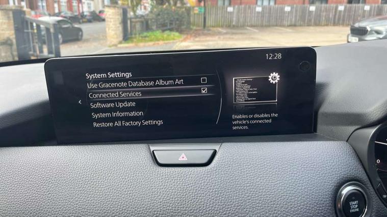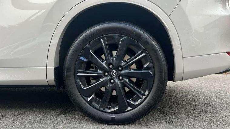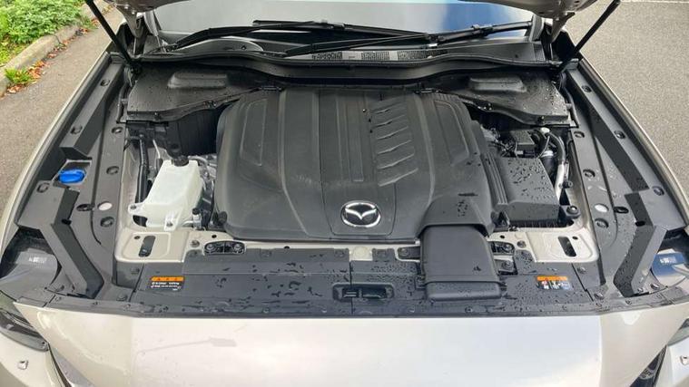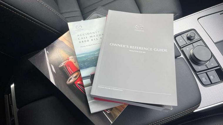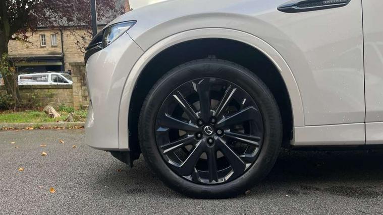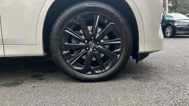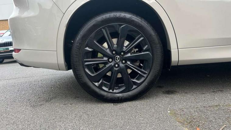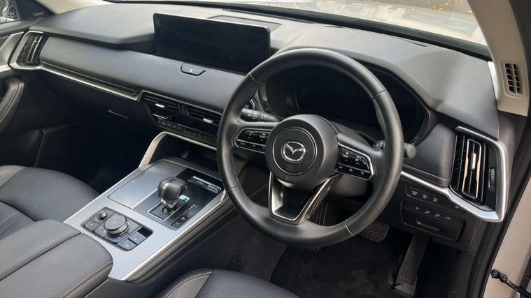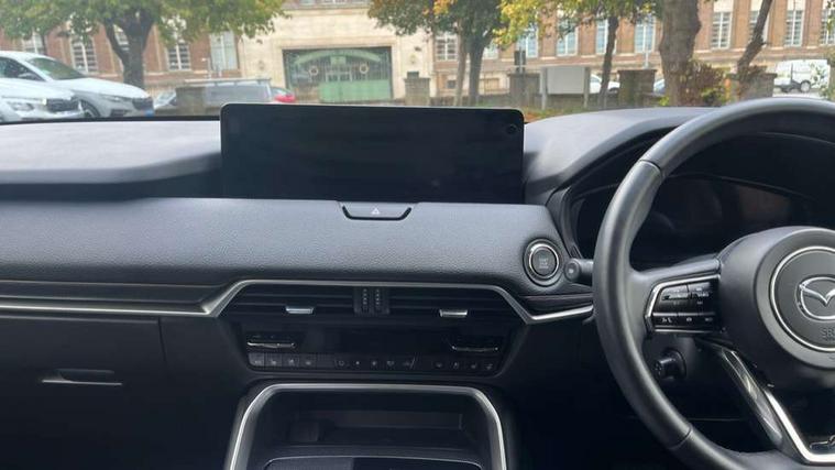 Emergency lane keeping with blind spot assist, Low washer fluid warning light, 12.3" Colour entertainment centre display with mazda connect infotainment, 12.3" TFT Colour display, Adjustable speed limiter, Blind spot assist, Blind spot monitoring with rear cross traffic alert, Cruise control, Distance alert system, Driver attention alert system, Driver Monitoring with personal identification, E-call with GPS, Emergency stop signalling system, Exit warning function, Front and rear parking sensors, Ingress / Egress support and automatic driver position guide, Integrated bluetooth, Intelligent speed assist, Kinematic posture control, Lane keep assist system (LAS) with Lane departure warning system (LDWS), Mazda Driver Personalisation System, Mazda Navigation System with european mapping, Multimedia Commander, PAS, Power lift gate with handsfree function, Power start/stop button, Reversing camera with static guide lines, Speed alert, Traffic sign recognition enhanced with mandated excessive speed warning, Trip computer, Windscreen projected colour active driving display, Wireless apple car play/android Auto, Internal Combustion Engine Sound Emulator, Mi-Drive (Normal, Sport, Off-road, Towing and EV mode), AM/FM and DAB radio, Bose surround sound system with 12 Speaker, Bose center point, Bass match and audio pilot technology, Steering wheel mounted audio/bluetooth controls, USB-C inputs (x2 front and x2 rear), Auto dimming driver's door mirror, Automatic headlight levelling, B-pillar and C-pillar garnishes in gloss black finish, Body colour roof spoiler, Body coloured bumpers, Body coloured wheel arch and side mouldings, Coming/leaving home lighting function, Dark plated headlight lense, Dark plating finish signature wing in front grille, Dark plating front side garnish, Differentiated front bumper design to accentuate the intake, Dusk sensing headlights, Electric front/rear windows with one touch auto up/down, Electrically adjustable, heated auto power folding door mirrors with memory, Frameless auto dimming interior rear view mirror, Front kodo turn signal, Front wiper de-icer, Gloss black door mirrors, Headlight washers, High beam control, Honeycomb radiator grille in piano black, LED 3rd brake light, LED headlamps, LED rear signature combination lamps, Rain sensing front wipers with adjustable sensitivity and speed, Rear side wing doors, Rear wiper, Roof pillars and roof lining finished in lighter colour to soften the overall look, Signature LED daytime running lights, Silver decoration panel, 12v power outlet - front, 12V socket in boot, 3 height adjustable rear headrests, 3 seat bench in 2nd row, 40/20/40 split folding rear seats with quick levers in the boot, Ambient lighting, Cargo net, Chrome interior trim accents with steering wheel centre bezel, surround of engine start / stop button and glove box handle, Door panel trim vinyl leather with armrest, Driver and front passenger two rear grab handles with rear coat hooks, Driver and front passenger visors with covered vanity mirror and driver ticket holder, Driver seat electric tilt, slide, recline, height and lumbar adjustment, Driver, front passenger and two rear door pockets, Driver/passenger front seatback pockets, Dual zone climate control air conditioning with rear air vents, Electric telescopic and tilt adjustment steering wheel, Featuring black vinyl leather dashboard trim with titanium coloured accents, Folding rear centre armrest with two cup holders, Front centre storage with two cupholders, Front down lamp with front and rear foot lamps, Front headrests, Front passengers seat electric slide, recline, height and lumbar adjustment, Front seat ventilation with 3-stage setting, Glovebox illumination, Heated front seats with 3 stage setting, Heated leather wrapped steering wheel, Heated outer rear seats with 3-stage setting, ISOFIX child seat anchorage points attached on outer rear seats, Karakuri tonneau cover, Leather upholstery, Leather wrapped gear shift knob, LED illumination luggage compartment, Paddle shift, Practical and spacious front centre armrest storage, Rear seat recline function for rear passenger comfort, Remote fold down rear seats, Remote pre-heating/cooling, Roof mounted sunglasses holder, Single front passenger seat, 3 point ELR front seat belts x2 with pretensioners, 3 point ELR rear seat belts, Active bonnet, Anti-lock braking system (ABS), Drivers knee airbag, DSC - Dynamic Stability Control, Electronic parking brake with auto disengage function and auto hold function, Front and rear curtain airbags, Front dual stage driver and single stage front passenger airbags, Front passenger airbag cut-off switch, Front side airbags, Front smart city brake support, Hill decent control, Hill launch assist, Manual rear child locks, Seatbelt reminder for driver/front passenger and rear seats, Traction control, Tyre pressure monitoring system (TPMS), Remote central locking with deadlocking and automatic door lock when driving, Smart keyless entry, Thatcham accredited alarm and immobiliser, Mesh metal film centre console panel, 20" Black metallic alloy wheels, Emergency tyre repair kit,