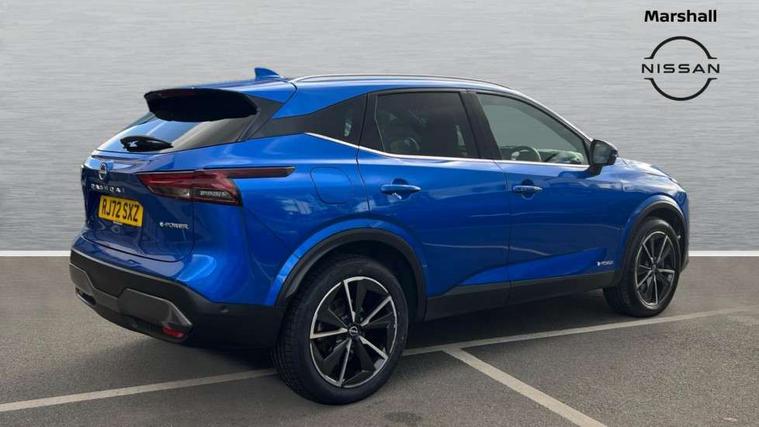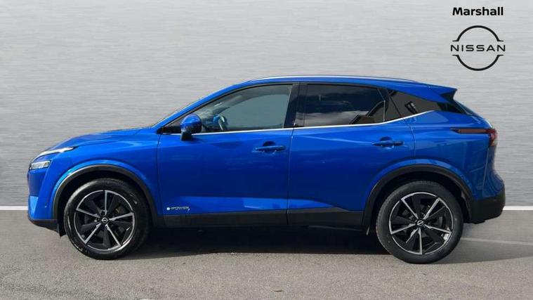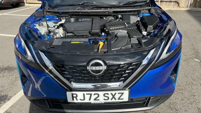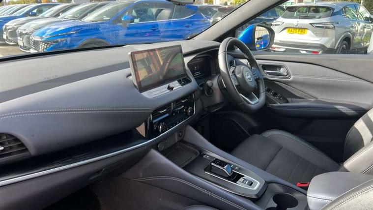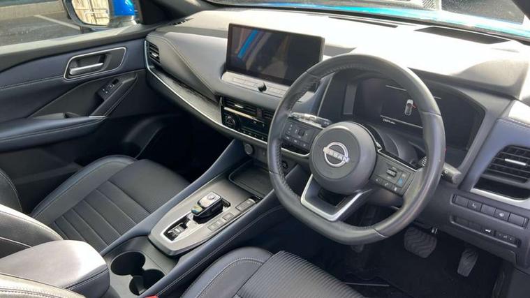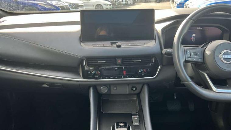 Advanced windscreen head up display, Android auto/Apple CarPlay (Wired), Blind spot warning, Drive modes (sport, normal, eco), Electric speed sensitive power steering, Emergency and breakdown call, Front and rear parking sensors, Full Digital 12.3" TFT Digital Combimeter, Google maps services - search, weather, 3D maps and Google street view, Hands free power tailgate, Idle stop/start system, Intelligent around view monitor, Intelligent Cruise control (ICC), Intelligent driver alert system, Intelligent forward collision warning, Intelligent lane intervention, Lane departure prevention, Lane departure warning system, Lane keep assist, Moving object detection, Nissan connect 12.3 inch touchscreen infotainment system, Nissan connect navigation, ProPILOT with Navi-Link, Push button starter, Rear cross traffic alert, Rear view camera, Remote control services - door locks, lights, horn and car locator, Telematics - notifications and connectivity services, TomTom live traffic services, Traffic sign recognition with legal speed adjustment, Trip computer, Virtual personal assistant and firmware over the air capability, Wireless apple carplay, Wireless charging pad, 6 speakers, AM/FM audio system with DAB, Bluetooth audio streaming, Front USB connections (Type-A and Type-C), Rear USB charging only ports (Type-A and Type-C), Auto dimming rear view mirror, Auto rear wiper when reversing, Automatic hazard signal with emergency stop signal, Body colour mirror caps, Body coloured door handles, Bodyside mouldings, Chrome side window finisher, Door handle with button, e-POWER badging, Electric auto folding door mirrors, Electrically adjustable and heated door mirrors with LED turn indicator, Follow me home headlights, Front and rear LED turning signals, Headlights auto levelling system, Intelligent auto headlights, LED daytime running lights, LED headlights with adaptive driving beam, LED rear lights, One touch front and rear electric windows with remote opening and closing, Partially body coloured bumpers, Privacy glass, Rear bumper with graphite insert, Rear reversing light (bulb lighting), Rear roof spoiler, Rear side wing doors, Rear styling plate, Shark fin antenna, Splash free rain sensing wipers, Super UV and infrared cut glass, Thermaclear heated windscreen, Three blink turn signal, 12v power socket in dashboard and luggage, 2x Rear coat hooks, 3 bench rear seats in 2nd row, 3 rear headrests, 4 folding assist grip, 6 Luggage hooks - 4 on floor, 2 on side, 60/40 split folding rear seat bench, Ambient lighting around centre console, Ambient lighting in front doors, Centre console storage tray, Chrome interior door handles, Cloth/syntech leather monoform upholstery, Dark black/blueish PVC wrapping, Dark headlining, Driver and front passenger sunvisors with illuminated vanity mirrors, Driver seat back pocket, Dual zone automatic climate control with pollen filter, e-POWER shifter, Electrically adjustable driver seat, Electrically adjustable lumbar support for driver, Front and rear door storage, Front centre console and armrest, Front cupholders x 2, Front door with bottle holders, Glovebox with light, Hard trunk cover, Heated front seats, Heated steering wheel, Height adjustable driver's seat, Height adjustable front headrests, Height adjustable passenger seat, Leather steering wheel, Luggage board system, Luggage space lighting, Manual lumbar support on passenger seat, Manually adjustable passenger (slide recline + lifter), Multifunction steering wheel, Passenger seat back pocket, Rear armrest with 2 cupholders, Rear door bottle holders, Single front passenger seat, Soft PVC kneepad, Steering wheel switches, Tilt/telescopic adjustable steering wheel, Two rear isofix child seat anchorage points with top tether, Welcome light and doors with console tray ambient lighting, Glass roof pack with roof rails - Qashqai, 3x3 point rear seatbelt pretensioners + load limiters, ABS with EBD and brake assist, Active brake limited slip, Auto hold function, Child locks on rear doors, Curtain and front side, far side airbags, Driver and passenger airbags, Driver, passenger and 2nd row rear seat belt reminder, Electronic parking brake, Front seatbelt pretensioners + load limiters, Height adjustable front seatbelts, Hill start assist, Intelligent blind spot intervention, Intelligent front emergency braking with pedestrian, cyclist recognition and junction assist, Intelligent rear automatic braking, Tyre pressure monitoring system, Vehicle dynamic control, Capless fuel filler, Engine immobiliser, Intelligent Key, Remote central door locking with deadlocking, Thatcham Cat.1 alarm, Interior instrumental panel C finisher, 19" Diamond cut alloy wheels, Tyre puncture repair kit,