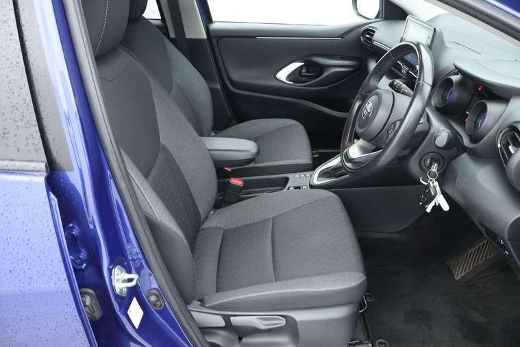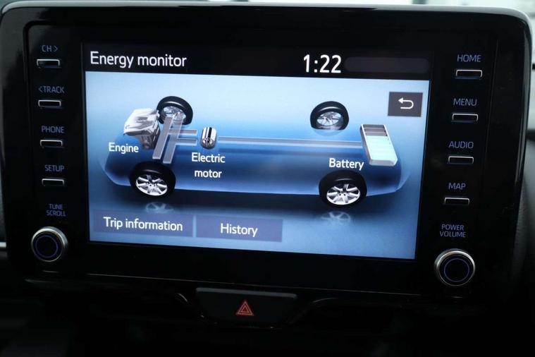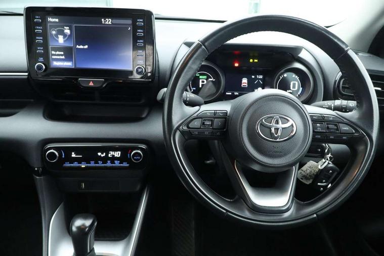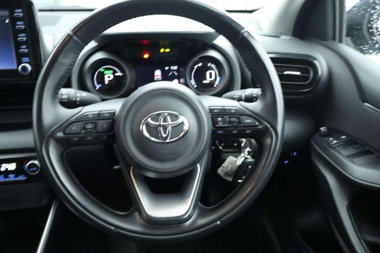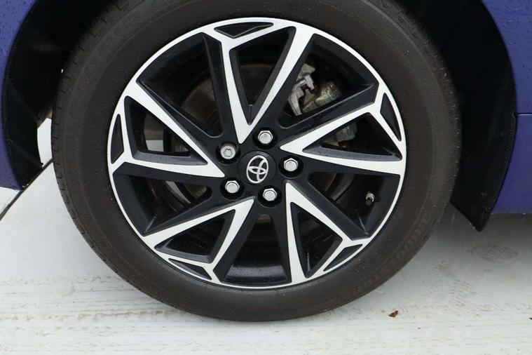 Adaptive cruise control, Adjustable speed limit with speed warning, Bluetooth connectivity, Colour binocular inspired displays with digital speedometer, E-call, Electric power steering, Hybrid energy display, Multi information display switches on steering wheel, Reversing camera, Smartphone integration with Apple CarPlay and Android auto, Tailgate, Voice recognition, Vehicle Stability Control (VSC), 4 speakers, 8" Multimedia display touch screen, USB connection, Acoustic windscreen glass, Auto windscreen wipers, Automatic headlights, Body coloured door mirrors, Electric adjustable heated door mirrors, Follow me home headlights, Front auto power windows with anti jam protection, Full LED rear lights, LED daytime running lights, LED front fog lights, LED front light guide, LED Headlights, LED High mounted stop lamp, LED Indicators, LED rear light guide, Manual headlight levelling, Painted chequered front grille, Rain sensor, Rear auto power windows with anti jam protection, Rear privacy glass, Rear side wing doors, Rear spoiler, Rear wiper, Shark fin antenna, Turning signal integrated indicators in door mirrors, Variable front intermittent wipers, 3 adjustable rear headrests, 3 spoke leather steering wheel, 60/40 split folding rear seat, Active headrests, Adjustable boot height, Auto air conditioning, Coat hooks in rear grab handles, Cup holders (2 front & door), Data Communication Module (DCM) connected services, Fabric upholstery, Front armrest, Glovebox, Grey roof lining, Height adjustable driver's seat, Isofix seat fixing, Leather gearshift, Pollen filter, Shopping bag hooks, Single front passenger seat, Tilt/telescopic steering column, 3 point seatbelts on all rear seats, ABS+EBD+Brake assist, Electronic parking brake, Emergency brake light system (EBS), Front passenger airbag on/off switch, Front seatbelt reminder, Hill start assist control (HAC), Rear child proof door locks, Rear seat belt reminder, Supplemental Restraint System (SRS) 8 airbags: Driver & passenger's airbags, dual side curtain airbags, side impact airbags, front centre airbag, Toyota Safety Sense 2, Precollison + Night time Pedestrian & Cyclist Detection, Lane Trace Assist, Auto High Beam, Intelligent ACC & Road Sign Assist, Tyre pressure warning system, 2x Master key, Alarm/immobiliser, Remote powered central double locking doors, Soft touch instrument panel, Space saver spare wheel,