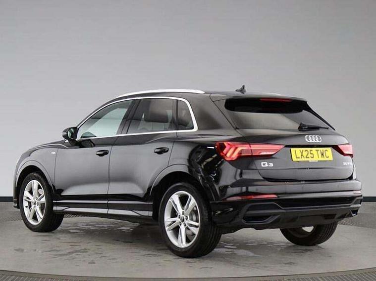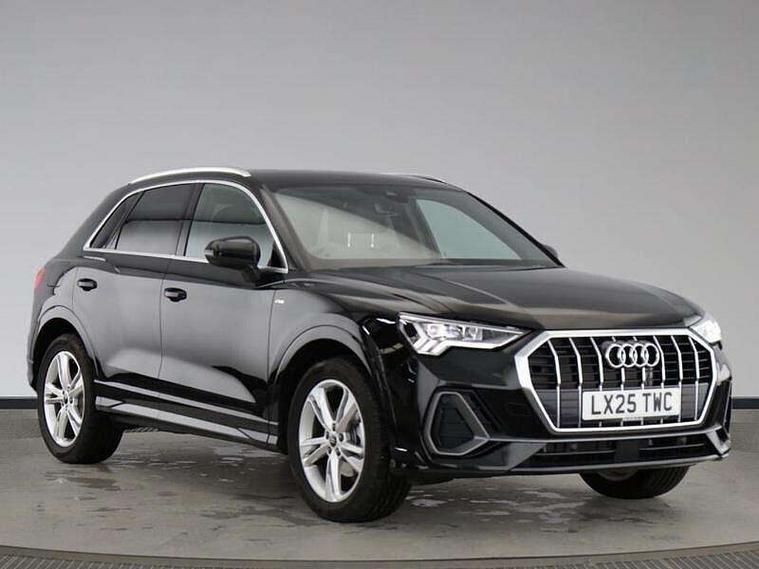 Amazon alexa Integration, Audi connect safety and service, Audi drive select, Audi lane departure warning, Audi Virtual Cockpit - 10.25" display, Bluetooth interface, Camera based traffic sign recognition, Distraction and Fatigue warning, Legal emergency call, MMI Navigation Plus with high resolution 10.1 inch touchscreen colour display, Power operated tailgate, Progressive steering, Service interval indicator, Smartphone interface includes wireless Apple carplay/Android Auto, Start stop system with recuperation, Voice control system with natural language interaction, Sports suspension, 2 USB-C ports with charge and data functions, 6 passive loudspeakers, DAB digital radio module, Acoustic windscreen, Aluminium roof rails, Aluminium window trim, Anthracite black radiator grille, Auto dimming door mirrors, Auto dimming frameless rear view mirror, Body colour front spoiler blade, Electrically folding, adjustable and heated door mirrors with integrated LED side indicators and kerb view function for passenger side, Front and rear electric windows, Front fog lights, Front side air inlets in matt platinum grey, Grille vertical bars in aluminium silver/Matt, High gloss black finish B and C pillars, LED Dynamic rear indicators, LED headlights with LED daytime running lights, LED rear lights, LED third brake light, Privacy glass dark tinted rear and rear-side windows (from B-pillar backwards), Rain and light sensors, Rear diffuser grille in grained matt black, Rear diffuser strip in matt anthracite black, Rear side wing doors, Rear wiper, S line badges on front wings, S line front and rear bumpers and side skirts in contrasting Manhattan grey paint finish, Side skirt insert in matt Platinium grey, Variable front intermittent wipers, 12V socket in rear centre console, 3 seat bench in 2nd row, 3 spoke leather multifunction steering wheel features S badging and grips in perforated leather with contrast stitching, 40:20:40 folding with manual adjustment for 60:40 forwards/backwards position and backrest angle, Adjustable rear seat bench/backrest with centre armrest and cupholder, Black cloth headlining, Dual zone electronic climate control, Electric lumbar support, Front and rear black floor mats with contrast stitching in rock grey, Front and rear headrests, Front centre armrest, Height and reach adjustable steering wheel, Illuminated door sill trims with S logo, ISOFIX child seat mounting for front passenger with airbag deactivation and outer rear seat including top tether attachment point for outer rear seats, Manual front seats with height adjustment, Perforated leather gearknob, Single front passenger seat, Stainless steel luggage compartment sill finisher, Stainless steel pedals, Twin leather upholstery with front sport seats + S embossing, Non smoking pack - Q3, 3x3 point rear seatbelts, 6 airbags - Driver, front passenger, curtain and side windows, Audi pre-sense front with pedestrain and cyclist recognition, Electrically operated child locks on rear doors, Electromechanical parking brake, Electronic stabilisation control including ABS, ASR and EDL, Front seatbelt reminder, Hill descent control, Hill hold assist, Pre sense basic, Seatbelt monitoring, Tyre pressure warning, Warning triangle and first aid kit, Anti theft wheel bolts, Immobiliser, Remote central locking, Thatcham approved category 1 anti theft alarm, Aluminium look interior elements, Dark matt brushed aluminium inlay, Detail dashboard around MMI touch colour display in glass look, black with surround in aluminium look, Leatherette door armrest,