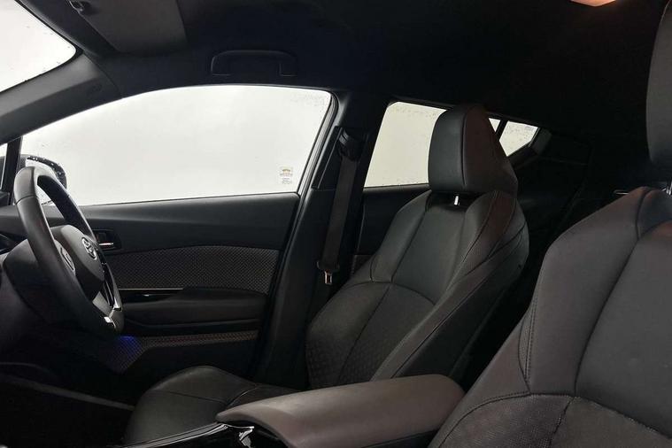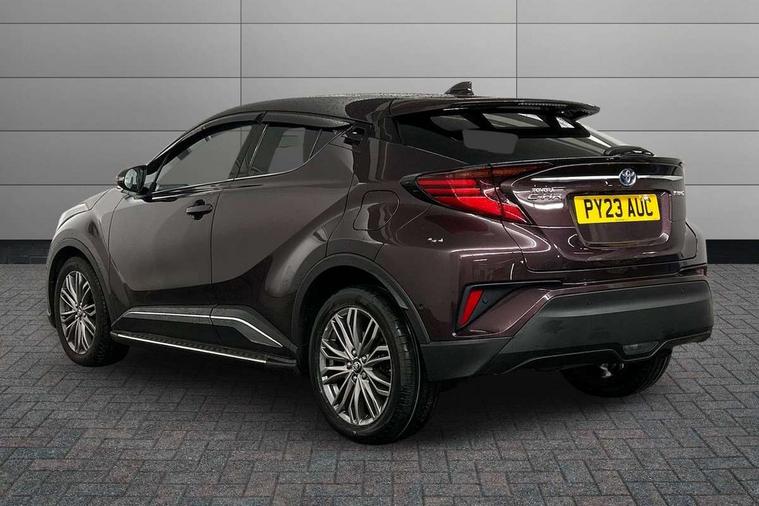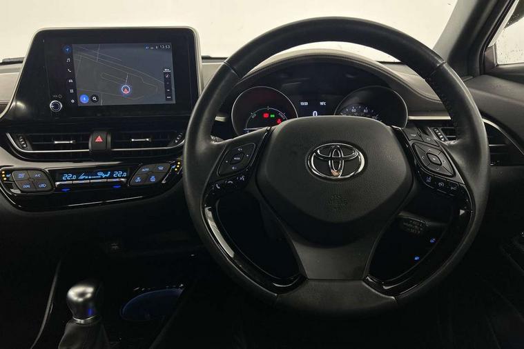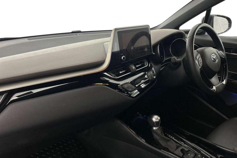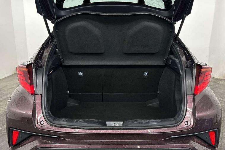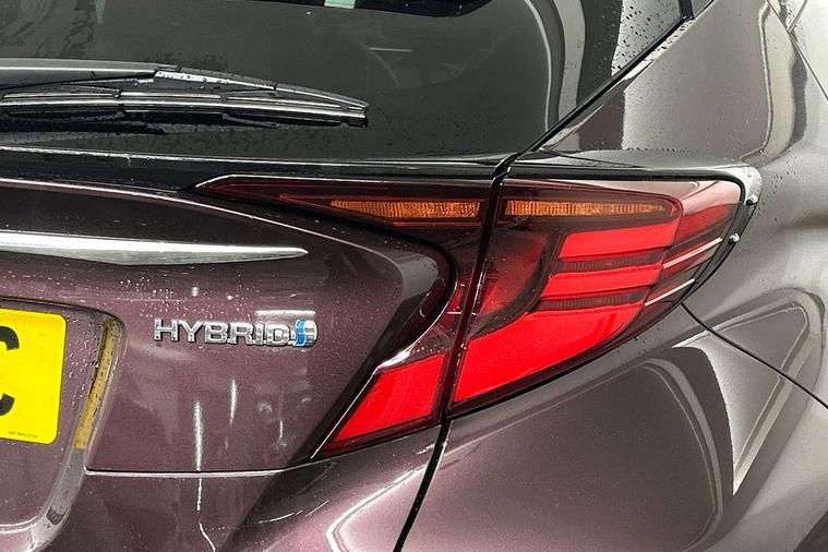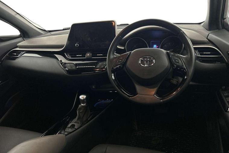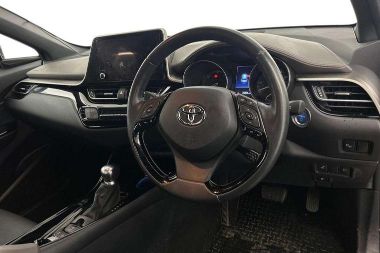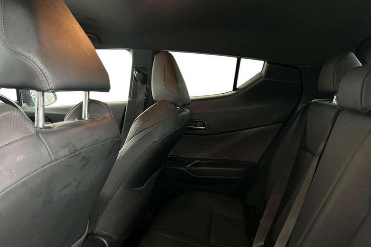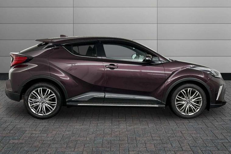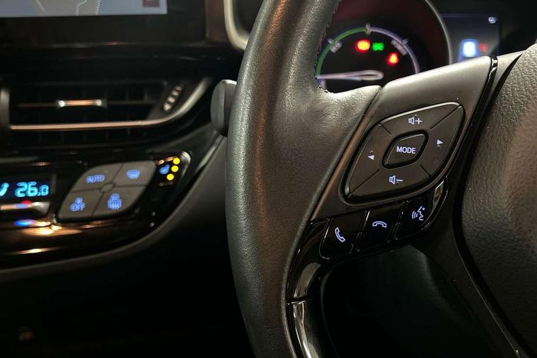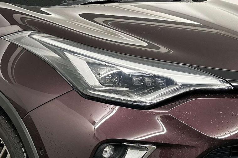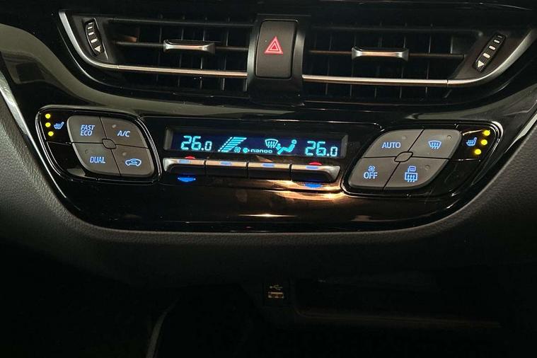 4.2" coloured TFT screen for multi-information display, Adaptive cruise control, Apple car play and Android auto, Bluetooth connectivity, E-call, Electric power steering, Hybrid system indicator, Lane departure alert with steering control, Lane trace assist, Push button tailgate release, Remote boot door release in cabin, Remote boot door release in key, Reversing camera, Road sign assist - RSA, Simple Intelligent parking assist, Smart voice assist, Touch 2 Go navigation system, Trip computer, Voice recognition, Wireless smartphone integration, Vehicle Stability Control (VSC), 6 speakers, AM/FM radio, DAB Radio (Digital Audio Broadcasting), Toyota touch 2 multimedia system with 8" display, USB connector, Wi-fi connectivity, Adaptive front light system, Adaptive LED Headlights, Anti-jam protection on power windows, Auto high beam, Auto up and down function on all power windows, Automatic headlight levelling, Automatic headlights, Automatic headlights cut-off, Black and body coloured rear bumper, Black lower front grille, Black upper front grille, Body colour door handles, Body colour door mirrors, Body colour front spoiler lip, Body coloured front bumper, Boot door release with push button, Electric heated door mirrors, Follow me home headlights, Front and rear power windows, Headlight cut off reminder, Honeycomb lower front grille, LED daytime running lights, LED fog lights, LED front light guide, LED High mounted stop light, LED rear brake lights, LED rear combination lights, Noise reduction layer on front windows and windscreen, Power adjustable door mirrors, Privacy glass, Rain sensor, Rear sequential indicators, Rear side wing doors, Rear spoiler, Rear tailgate, Rear window defogger, Rear window wiper, Shark fin antenna, UV-filter on driver and passenger windows, UV-filter on rear windows, Variable front intermittent wipers, 12v power outlet - front, 3 rear headrests, 3 seat bench in 2nd row, 3 spoke leather steering wheel, 60/40 split folding 2nd row rear seats, Adjustable rear headrests, Adjustable speed limiter switch on steering wheel, Assist grips front and centre pillar, Audio and telephone switches on steering wheel, Black front door assist grips, Blue ambient lighting on front cup holders, Blue ambient lighting on front doors, Boot light, Chrome interior door handles, Driver and front passenger personal light, Driver and front passenger Whiplash Injury Lessening seats, Driver and passenger seatback pockets, Dual zone automatic air conditioning, Floor mats, Front cupholders, Front head restraints, Front sports seats, Glovebox with internal light, Hard tonneau cover, Heated driver and front passenger seats, Heated steering wheel, Hooks for luggage holding net, Humidifying Nanoe air purifier, Illuminated entry system, Isofix attachments on outer rear seats, Leather gearshift, Light on driver sun visor, Light on passenger sun visor, Manual telescopic steering wheel, Manual tilt steering wheel, Microphone on front personal light, Mirror on driver sun visor, Mirror on passenger sun visor, Multimedia switches on steering wheel, Pollen filter, Power adjustable lumbar support on driver seat, Power tilting cushion on driver seat, Shopping bag hooks, Single front passenger seat, Slow opening on lower glovebox, Voice recognition switch on steering wheel, Leather pack - C-HR, Tech with parking sensor pack - C-HR, 16 Disk front wheel brake, 3x3 point rear seatbelts, ABS+EBD+Brake assist, Electronic parking brake, Front and rear seatbelt reminder, Front passenger airbag on/off switch, Hill start assist control (HAC), Pre collision system with pedestrian detection, Pre-tensioners and force limiters, Rear door child safety locks, SRS Airbags - Driver + Front passenger, front side, front and rear curtain and driver's knee airbags, Toyota safety sense, Tyre pressure monitoring system, Tyre pressure warning system, Acoustic vehicle alert system (AVAS), Glass-breaking alarm sensors, Immobiliser, Intrusion alarm, Intrusion sensor, Motion sensor alarm, Power door locks, Power passenger window lock, Remote central locking, Black lower dashboard, Dark brown upper dashboard, Piano black console, Silver deco line on upper dashboard, Tyre repair kit,