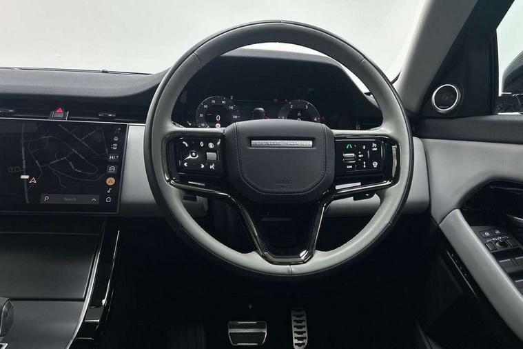 11.4" touch screen, Adaptive cruise control, Android Auto, Apple car play, Blind spot assist, Bluetooth connectivity, Brake pad wear indicator warning light, Driver condition monitor, eCall emergency system, Eco mode, Electronic power assisted steering (EPAS), Front and rear parking aid, InControl remote, Interactive driver display, Land Rover InControl apps, Lane keep assist, Pivi pro connected includes diamond pivi variant, smart settings, connected navigation pro, nuance speech licence, Powered tailgate/boot lid, Rear collision monitor, Rear traffic monitor, Traffic sign recognition with adaptive speed limiter, Voice control system, Wireless device charging, All terrain progress control, Diesel exhaust fluid (DEF) large tank, Efficient Driveline, Large fuel tank, Passive suspension, Terrain Response 2, Digital Audio Broadcast radio-DAB, Steering wheel mounted controls, Acoustic laminated windscreen, Auto headlights, Automatic headlight levelling, Electric windows with one touch open/close and anti trap, Flush deployable exterior door handles, Front and rear recovery eyes, Front fog lights, Heated rear window with timer, Heated washer jets, Heated windscreen, Pixel LED headlights with signature DRL and LED tail Lights, Power fold, auto-dimming, heated door mirrors with approach lights and auto dimming driver side, Rain sensing windscreen wipers, Rear animated directional indicators, Rear fog lights, Rear side wing doors, Rear wiper, Side repeater indicators in mirror, Tailgate spoiler, Third brake light, Winter wiper park position, 14 way driver memory electric front seats with 2 way manual headrests + 4 way lumbar support, bolsters, 40:20:40 split folding rear seats with centre headrest and armrest, Ambient interior lighting, Bright metal pedals, Carpet mats, Chrome tread plates with range rover branding Includes stainless steel loadspace scuff plate with etched graphic, Customer configurable single point entry, Electrically adjustable steering column with memory function and easy entry/exit, Front and rear cupholders, Heated steering wheel, Isofix system on outer rear seats, Overhead lighting console, Overhead stowage for sunglasses, Passive front head restraints, Rear air vents, Rear head restraints, Satin chrome gearshift paddles, Single passenger seat, Sunvisors with illuminated vanity mirrors, Twin sliding front centre armrest, Online pack with data plan - Evoque, Power socket pack 2 - Evoque, 3 rear 3 point seatbelts, Anti-lock braking system (ABS), Brake hold function, Customer configurable autolock, DSC - Dynamic Stability Control, Electronic brake force distribution, Electronic parking brake, Electronic traction control, Emergency braking, Front and rear seatbelt reminder, Hill descent control, Hill launch assist, Low traction launch, Occupant protection assist, Passenger seat occupant detector, Power operated child locks, Roll stability control, Six airbags - Driver and passenger airbags/driver knee airbag/front side airbag and curtain airbags, Torque vectoring brake, Tyre pressure monitoring system, Alarm, Immobiliser, Intrusion sensor, Keyless entry, Locking wheel nuts,