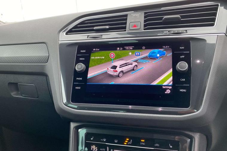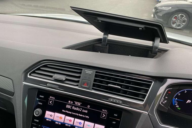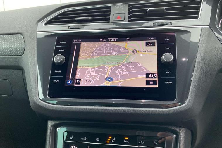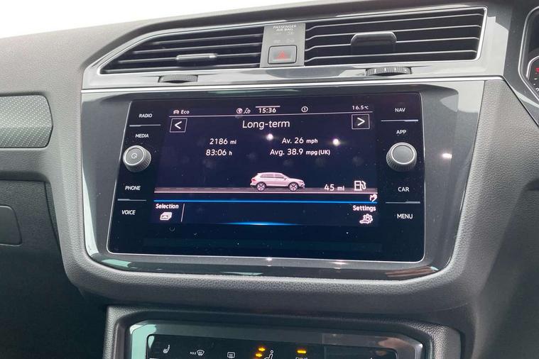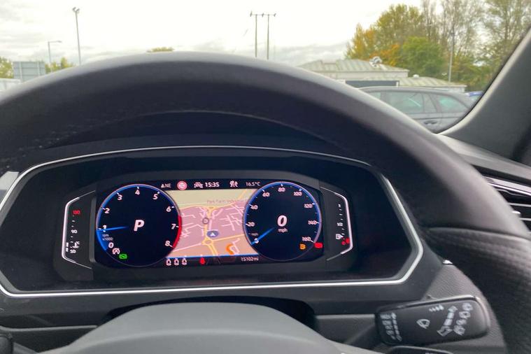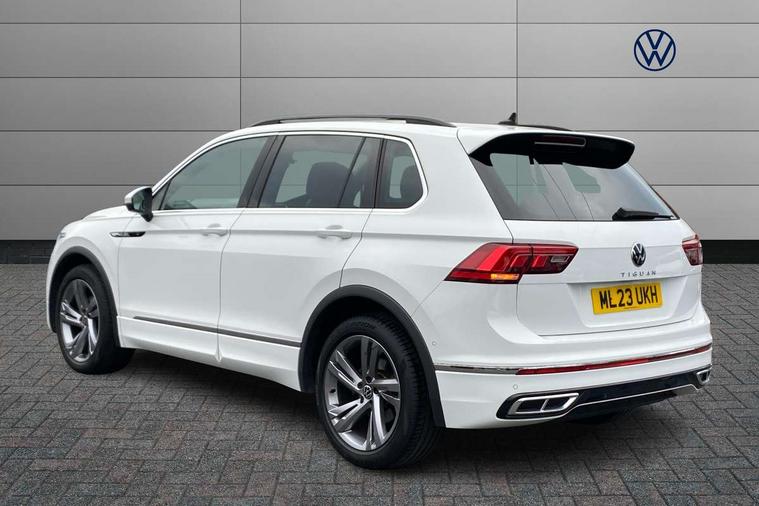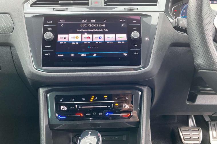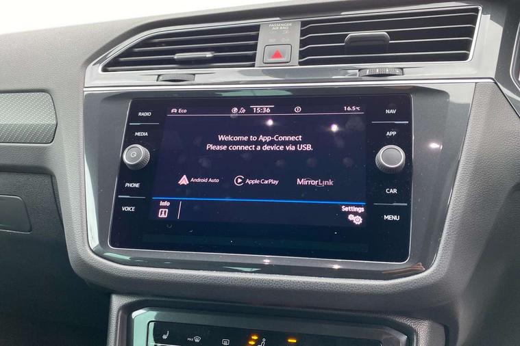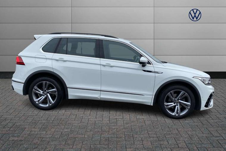 Adaptive cruise control ACC stop and go including speed limiter, App-Connect incl. App-Connect Wireless for Apple CarPlay and Android Auto, Bluetooth phone integration system, Comfort drive travel assist, Digital cockpit pro, Driver alert system, Driver profile selection, Dynamic road sign display, eCall emergency call system, Electromechanical speed sensitive power steering, Emergency assist, Front and rear parking distance sensors, Instrument cluster mph speedometer Great Britain, Lane keeping system Lane Assist, Lights on warning, Multifunction front facing camera, Outside temperature display, Premium multifunction display with multi colour display, Preparation for subsequent activation Navigation feature Discover Media includes Streaming and Internet, Remote control boot opening, Rev counter, Service interval indicator, Speed limit display, Start/stop system with regenerative braking, Tailgate/trunk lid unlocking from outside, Trip computer, Warning sound and light for doors and tailgate open, Battery regeneration during braking, Sports suspension, 8 Speakers, Digital radio reception DAB+, Diversity antenna for FM reception, Radio, Auto dimming interior rear view mirror, Automatic headlight control system, Body colored bumpers in R-Line style, Body colored exterior mirror housings, Body colour door handles, Chrome moldings on the side windows, Coming/leaving home lighting function, Dynamic headlight range control, Front and rear electric windows, Heated rear window, High level 3rd brake light, Laminated safety glass windshield, heat and sound insulating, LED headlamps with LED separate daytime running light and dynamic cornering light, LED rear combination lamps, LED rear number plate lights, License plate carrier in front and rear, Poor weather light and cornering light, Power adjustable, folding and heated door mirrors with surround lighting, front passenger exterior mirror lowering function, Privacy glass for rear side windows and rear window, R Line body kit, R Line side sills, Rain sensor, Rear exhaust tailpipe, Rear fog lamp, Rear side wing doors, Rear spoiler in R style, Rear windscreen washer and wiper with interval delay, Side and rear windows in heat insulating glass, Trailer Stability Programme, Unique R Line badging, Windscreen wipers/ intermittent wipe + 4 position delay, 12V outlet in center console rear and in luggage compartment, 12V outlet in front and tray, 2 LED front reading lights, 2 LED rear reading lights, 3 bench rear seats in 2nd row, 3 rear headrests, Air Care Climatronic 3 zone automatic climate control with enhanced air filter and controls in the rear, Art Velours greyson sports cloth upholstery, Backrest release for left front seat, Black headlining, Brushed stainless steel pedals and footrest, Carpet mats in front and rear with decorative stitching in Gray, Climate control unit rear with touch function, Door and side trim panel in foam film, insert in leatherette, Driver + front passenger lumbar support, Front footwell illumination, Front scuff plates in aluminum with R-Line logo, Front seats head restraints (x-adjustment), Height adjustable front seats, Height/reach adjust steering wheel, Isofix Preparation 2 Rear child seats, Leather gear knob, Rear bench seat asymetrically split folding, longitudinally movable and folding with load-through hatch and center armrest, Remote unlocking for rear seat backrest, Single front passenger seat, Sun visors with illuminated vanity mirrors, Top front comfort seats, Winter pack - Tiguan, 3 point seat belt for centre rear seats, 3 point seat belts with seat belt pretensioners for the outer rear seats, Curtain airbags for front and rear passengers, Driver/Front Passenger airbags, Drivers knee airbag, Electronic parking brake with auto hold, Electronic Stability Control with driver steering recommendation, ABS, ASR, EDL, EDTC and trailer stabilization, Front assist with autonomous emergency braking (for Adaptive Cruise Control ACC up to 130 mph), Front disc brakes, Front passenger airbag deactivation, Front side airbags, Height adjustable front 3 point seatbelts + pretensioners, Manual child proof rear door locks, Pedestrian monitoring system, Proactive passenger protection system in combination with front assist, Rear disc brakes, Two tone horn, Tyre pressure loss indicator, Warning sound and light for front seat belts if unfastened, Warning triangle, Anti theft alarm system with interior monitoring, backup horn and towing protection, Anti theft wheel bolts, Electronic engine immobiliser, Keyless locking and starting system keyless access with safelock, Chrome elements on the mirror switch power window switches and door pulls, Decorative inserts Carbon Gray for dashboard and front door trim panels, Interior door handle in matte chrome, 19" Valencia alloy wheels with AirStop tyres, Tool kit, Tyre mobility kit Includes 12V compressor and tyre sealant,