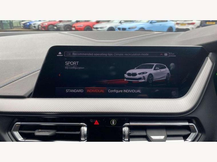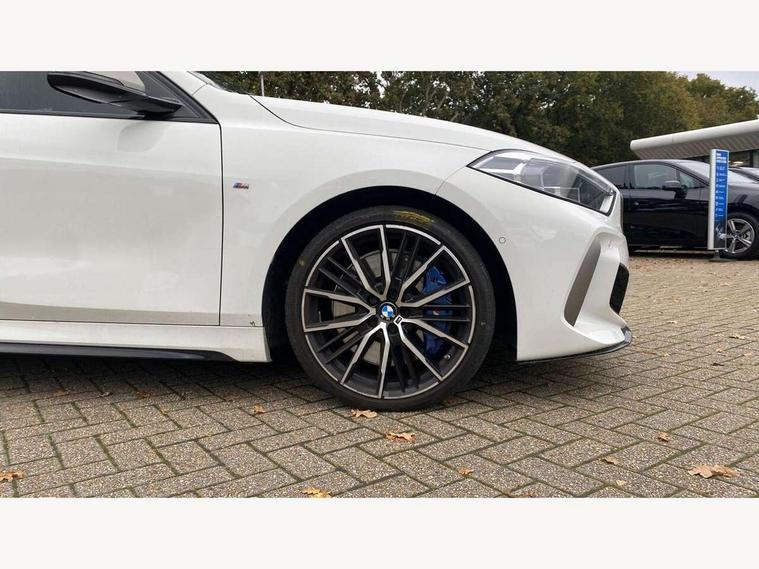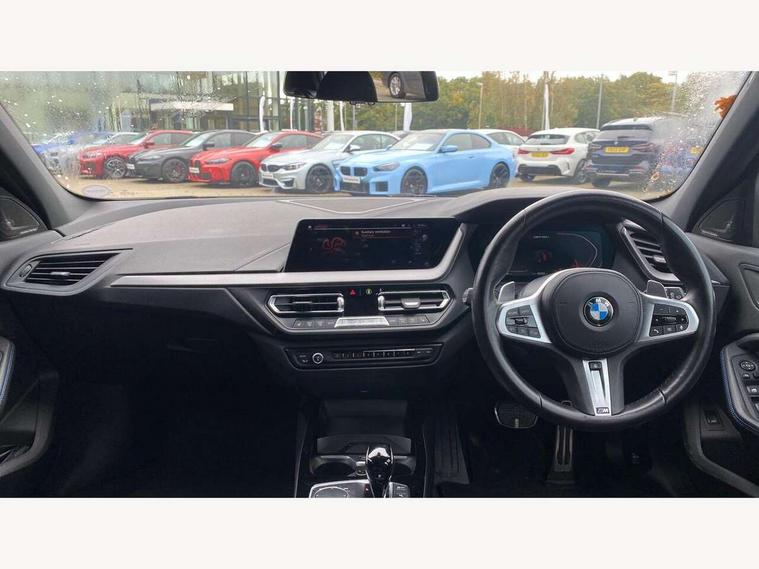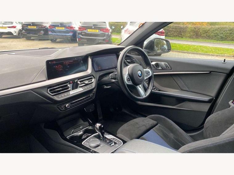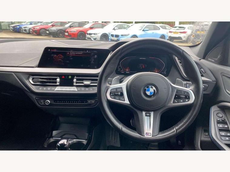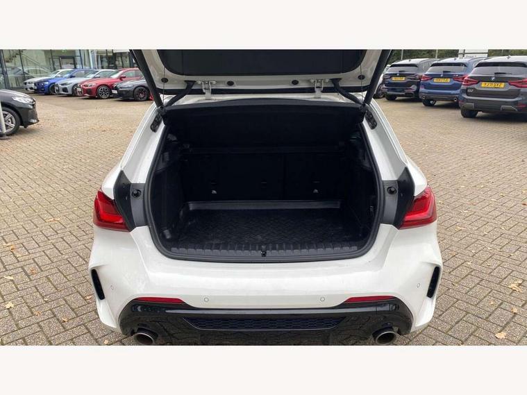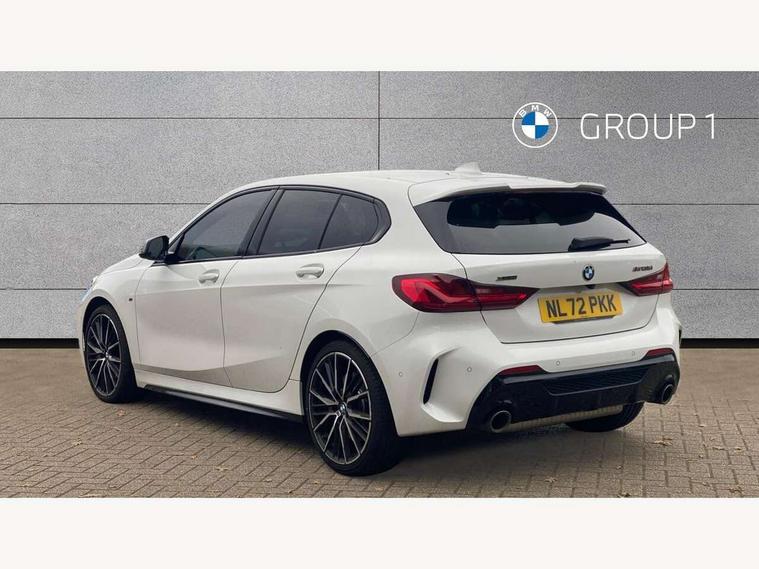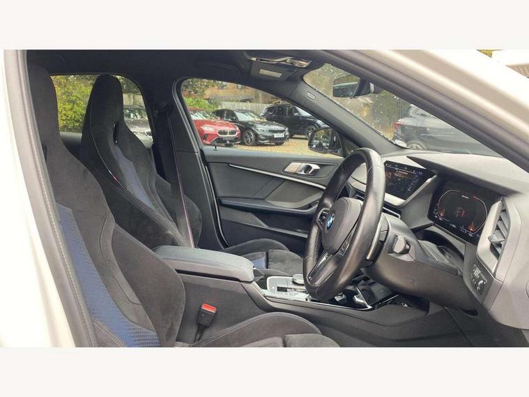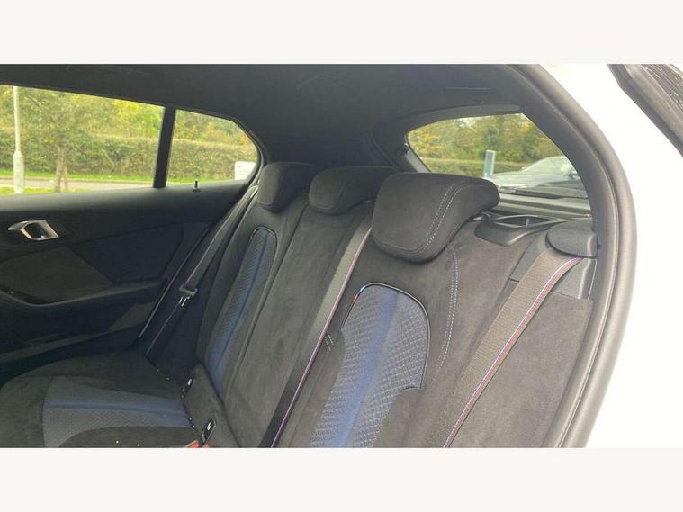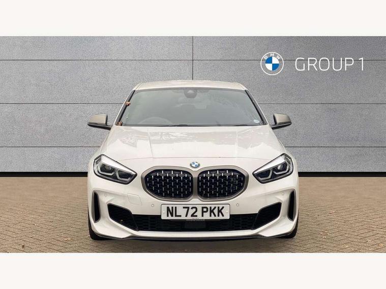 Active guard plus, Attentiveness assist, BMW ConnectedDrive online services, BMW Teleservices, Check Control warning system for monitoring of lights and door/luggage compartment open warning, Cruise control with brake assist, Eco pro mode, Electric power steering, Electro hydraulically controlled multi-plate clutch transfers drive to rear axle and with power take-off device located on the front differential., Energy efficient operating strategy, Front axle single joint with specific axle kinematics to minimise drive influences on steering + provide increased rigidity agile driving behaviour, Gearshift time display in manual mode, Integrated owners handbook, Lane departure warning system, M Sports steering with M135i xDrive specific settings, Oil sensor for level and grade, On board computer, Optimum shift indicator, Personal Profile, Pull away assistant, Rigidly mounted rear subframe - Multi link construction with separate spring / damper configuration and excellent driving characteristics, Speed limit Info including no-overtaking indicator, Speed limiter, Sporty fast gear shifting in sport mode, Aluminium lightweight construction, Anti roll bar front and rear, Balancer shaft, Double VANOS, Drive Performance Control, Eight speed sport automatic transmission with gearshift paddle switches, Electronic differential lock, Electronic selector lever, Engine cover with M performance designation, High precision injection, Larger fuel tank capacity (50 litres), Launch control, M135i specific heavily de-throttled engine intake air guide, M135i specific high-performance cooling package, M135i specific larger turbocharger with integrated divert-air valve, Petrol Particulate Filter, Twin tube gas filled shock absorbers with degressive characteristic curve, VALVETRONIC engine management, Variable, stepless and infinitely adjustable distribution of drive torque between the front and rear axles, DAB Digital radio, Auto dimming rear view mirror, Automatic headlight beam throw control, Automatic windscreen wipers and automatic headlight, Body colour door handles, Body colour roof trims, Cerium grey exterior mirror caps, Direction indicator side lights in exterior mirrors, Exhaust tailpipe, Cerium Grey with bevelled finish - twin, round 100mm, left and right split, Fading support, Folding side mirrors with auto dimming/folding wing mirrors with auto dimming, Follow me home headlights, Front and rear bumper system with replaceable deformation elements, Front and rear electric windows with open and close fingertip control, anti trap facility and comfort closing, Front door sill finishers with M135i designation, Green tinted heat protection glazing, Heated, electrically adjustable exterior mirror aspheric on driver side, convex on passenger side, High gloss shadowline window frame, Recess cover mirror frames and B/C pillar embelisher trim, High level third brake light, Integrated front windscreen with washer jets, Kidney grille frame in Cerium Grey with Mesh design, LED daytime running lights, LED eyebrow turn indicators, LED front fog lights, Lightweight engineering, M logo designation side in cerium grey, M Performance exhaust system with valve control and minimised exhaust back pressure, M Performance specific setup, M Sport spoiler, Matt black air guide grilles, Matt black wheel arch trim, Model designation on electric bootlid includes xDrive designation for M135i xDrive, Nearside reverse light in rear light cluster, Preparation for high beam assistant, Rear fog lights, Rear side wing doors, Rear window wiper, Reinforced crank drive, new pistons and adapted con rods, Shark fin antenna, Trailer stabilisation logic, Visible VIN plate, Welcome lighting, xDrive intelligent all wheel drive with M135i specific reinforced components, 12V power socket in front centre console with blanking plug, 3 rear seat head restraints, 3 seat bench in 2nd row, 3 spoke sports leather steering wheel with black leather and stitching, pearl chrome decorative finish, specific M Badge, Anthracite headlining, Black boot net with lashing eyes, Cargo function on 2nd seat row, Child seat ISOFIX attachment for two outer rear seats and front passenger seat with anchorage points, Conditioned based service, Driver and front passenger seat heating, Folding rear clothes hook, Four grab handles integrated in roof lining, Front and rear door pockets with bottle holders, Front and rear side armrest integrated into door trim, Front armrest, Front integrated head restraints, Front M sports seats, Glove compartment, Luggage compartment for bag hooks on left and right, foldable luggage compartment liner and four lashing eyelets, Manual adjust steering wheel, Multi-function controls for steering wheel, Single front passenger seat, Storage compartment in centre console, Sun visors with vanity mirrors and insert tab, Two front centre console cupholders, Two zone automatic air conditioning, Velour floor mats, Additional interior lighting pack - 1 Series M135i, BMW live cockpit professional pack- 1 Series, Connected pack professional - 1 Series, Interior lights pack - 1 Series, M Sport exterior styling aerodynamics pack - 1 Series 135i, 2 tone horn, 3 point seatbelts on all seats, front pyrotechnic belt tensioners, stopper and belt force limiters, rear coded belt buckles, Airbags - Front driver/passenger, front and rear curtain head protection, front side, manual deactivation of front passenger airbag, Anti lock braking system (ABS) with brake assist, BMW emergency call, Brake drying, Braking readiness, Child proof locking system in rear door, City braking function, Comfort modes, Cornering brake control, Crash sensor activating central locking release, hazard warning lights, fuel cut off, interior lighting + activation of safety battery terminal clamp, Driver and front passenger seat belt security check, Dynamic stability control + (DSC+), Dynamic Traction Control - DTC, Electrically operated hand brake including automatic hold function, Front and rear