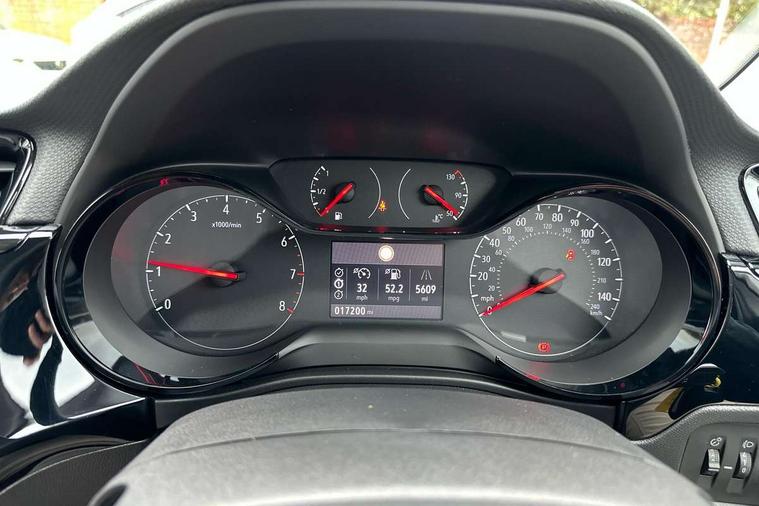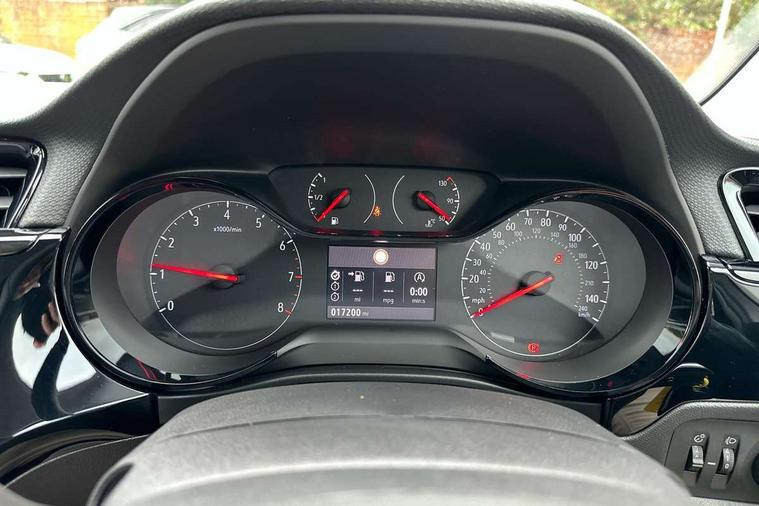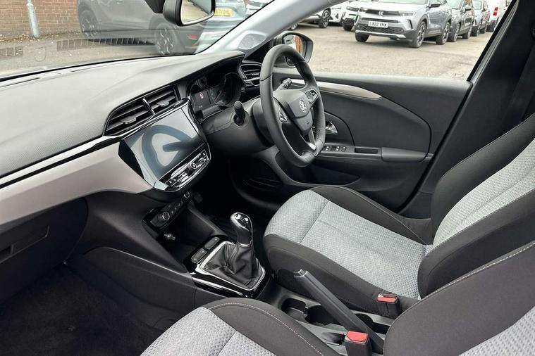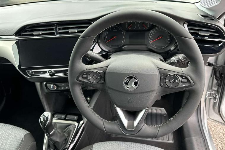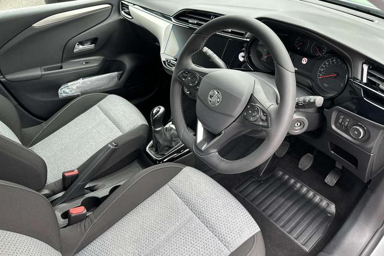 3.5" colour digital instrument cluster, Apple car play/Android Auto, Breakdown call (b-call), Central facia display with digital clock, outside air temperature and audio information, Cruise control with intelligent speed limiter, Driver drowsiness alert system, E-call, Engine oil life indicator, Front camera system, Instrumentation - Speedometer, rev counter, low fuel gauge warning light + water temperature gauge warning light, Lane departure warning, Lane keep assist, Lights on audible warning, Multi function trip computer, RDS with traffic programme, Rear parking distance sensors, Service indicator, Smartphone projection, Speed sensitive power steering, Speed sign recognition, Start/stop system, Vauxhall connect box, Electronic returnless fuel system, Petrol Particulate Filter, Under body shield for aero, AM/FM stereo radio, Bluetooth A2DP audio streaming, DAB Digital radio, Multimedia with 10-inch touchscreen, Six speakers, Steering wheel audio, phone and cruise controls, USB type C port, 3rd brake light, Automatic headlight control system, Black door mirror housings, Black lower side window mouldings, Body colour door handles, Body colour front and rear bumpers, Body colour roof and A pillar, Bonnet/headlight/wiper structure, Chrome-effect Griffin logo and Black vizor frame, Corsa lettering in tailgate, Electrically operated front and rear windows with safety auto reverse and one touch up/down facility, Electrochromic automatic anti-dazzle rear view mirror, Flexible roof mounted aerial, Glazed tailgate and heated rear window with wash/wipe facility, Hazard warning lights, Headlamps for left side traffic, High beam assist, LED daytime running lights, LED Headlights, Rain sensitive windscreen wipers, Rear fog lamp, Rear reversing lights, Rear side wing doors, Rear wiper, Solar heat absorbing windscreen and windows, Two speed windscreen wipers with variable intermittent wipe, Windscreen and side window demist vents, 12V power sockets, 3 bench rear seats in 2nd row, 3 spoke flat bottomed leather effect steering wheel with satin chrome effect bezel, 4 speed fan with illuminated controls, 4 way manual co-driver seat reach fore/aft, backrest upright/recline, 6 way manual adjustable driver seat height up/down, reach fore/aft, backrest upright/recline, 60/40 split folding rear seat, Air conditioning with air recirculation facility, Cabin particulate filter - removes dust, airborne particles and pollen, Cloth upholstery, Comfort front seats, Driver/passenger sunvisors with vanity mirrors + covers, Four adjustable facia vents, Front cupholder, Front headrests, Height adjustable head restraints, Illuminated glovebox with lid, Interior courtesy light, Internal chrome door handles, IP plastic insert single piece, LED boot light, Polyurethane gear knob/lever, Reach and rake adjustable steering column, Rear cupholder, Rear headrests, Right hand drive (RHD), Single dome lamp with dual front reading lamps, Single front passenger seat, Two litre open door pockets, 3 rear 3 point seatbelts, Anti-lock braking system (ABS), Automatic emergency braking with pedestrian detection, Cornering brake control, Deactivation switch for front passenger's airbag, Drag torque control, EBD - Electronic brakeforce distribution, Electrical child lock system in rear door latch, Electronic Stability Programme (ESP), Emergency brake assist, Forward collision alert, Front seatbelt unfastened audible warning and warning light, Hill hold and start system, ISOFIX child seat mountings incorporating top tether anchor points located on second row rear seats, Manual handbrake, Seatbelt pretensioners, Single tone horn, Six airbags - Driver's dual stage airbag/front passenger's dual stage airbag/front seat side impact airbags/full size curtain airbags, Straight line stability control, Traction control, Tyre deflation detection system, Tyre pressure monitoring system, 2 keys one folding with integral remote, Electronically protected audio equipment, Engine deadlock and immobiliser, Freewheeling door locks, Locking wheel nuts, Remote control central locking, Remote locking fuel filler flap, Steering column lock, Visible vehicle identification number, Akoya grey fascia with high gloss black insert, 16" Grey alloy wheels,