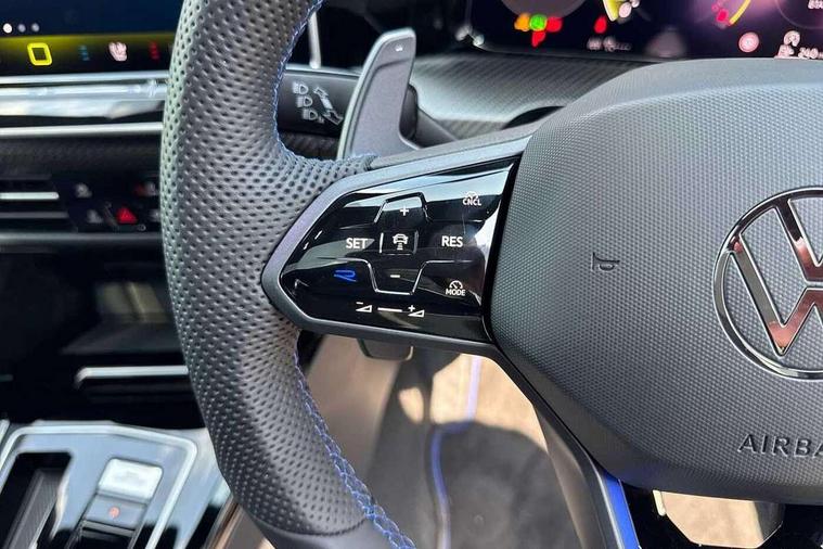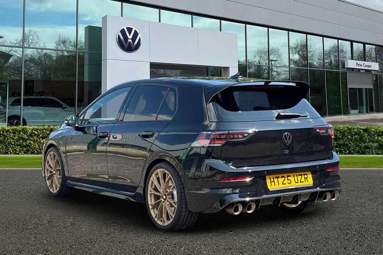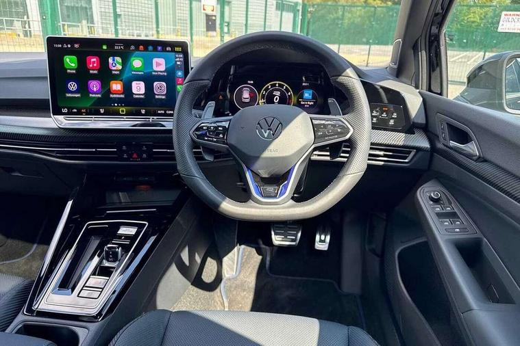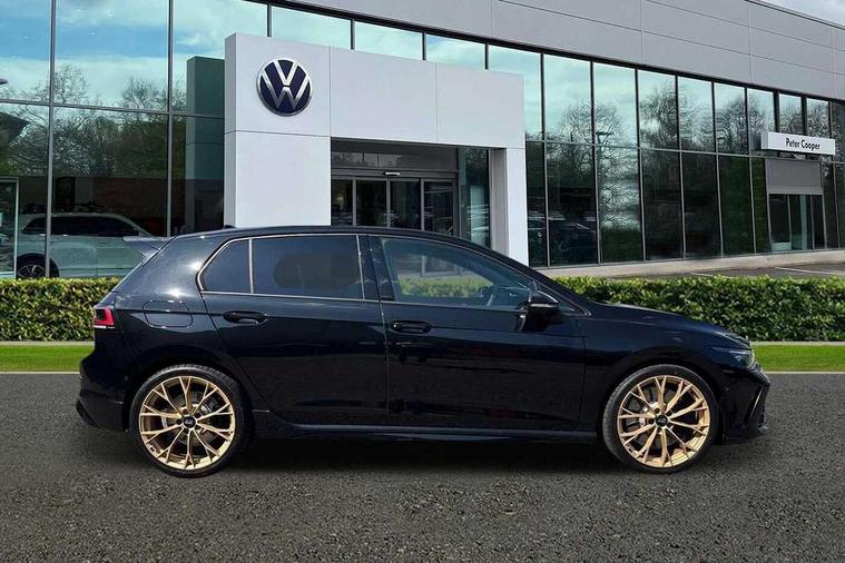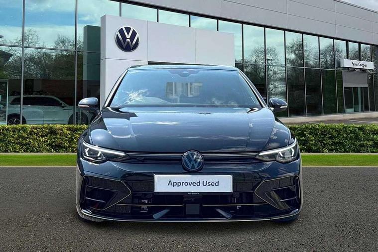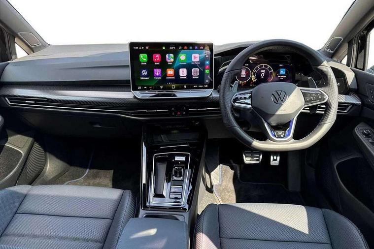 Activated carbon canister, Adaptive cruise control (ACC), Advanced driver attention and drowsiness monitor, Dynamic road sign display, E-Sim card for online connectivity, eCall emergency call system, Electronic maximum speed limit increased to 270 km/h, includes driving Modes 'drift' and 'special', larger roof spolier and GPS laptimer + G-Meter, Multi-color Digital cockpit pro, selection of different info profile possible, Multifunction front facing camera for distance control, Navigation system, Oncoming vehicle braking when turning including swerve support, Side assist blind spot lane change system, rear traffic alert and exit warning system, Speed limiter, Speedo, rev counter, electronic odometer, trip, service interval display, exterior temperature and fuel gauge, Traffic jam assist, Voice enhancer and voice control, Warning signal and warning light for front and rear seatbelts not fastened, We connect plus preparation, We connect preparation, Wireless app connect, All wheel drive - 4Motion, Petrol Particulate Filter, Start-stop system with battery regeneration (recuperation - energy recovery during braking), XDS electronic differential lock for improved traction and handling, 2 USB C ports in front, 2 USB charging sockets on the centre console in the rear charging capacity upto 45W, Digital radio reception (DAB), Diversity antenna for FM reception, Gaming platform via car app, Infotainment system with 12.9" display, Mobile phone interface with inductive charging feature, 3rd brake light, Auto dimming rear view mirror, Automatic headlamp activation with Coming home and Leaving home feature, Black badge on B-pillar, Black mirror caps, Black strips on radiator grille and headlights, Body colour door handles, Darkened headlights, Darkened R Logos and VW logos in front, rear and on fender, Exterior mirrors convex on the left and aspherical on the right, Front and rear electric windows, Front fog lamps and cornering light, Heat insulating windshield made of laminated glass, LED matrix headlights with ambient light V2, advanced high beam, dynamic range contol with cornering, LED rear lamp with indicator, poor weather, LED separate daytime running light, R name plate, Rain sensor, Rear fog light on one side and reversing lights on both sides, Rear side wing doors, Rear tinted glass 65% light absorbing from B pillar backwards, Rear windscreen washer and wiper with interval delay, Remote electrically foldable door mirrors, puddle lights and reverse activated passenger's door mirror, Welcome light with surround lighting, 12V socket in front centre console, 12V socket in luggage compartment, 3 rear head restraints, 3 seat bench in 2nd row, 30 colour ambient lighting, illuminated center console storage compartment in front, Air care climatronic 3 Zone automatic climate control with rear air conditioning control panel, Aluminium gearshift handle, Brushed stainless steel pedals, Chrome plated radiator grille inserts, air vent surrounds and light switch surrounds, Entry lights, Front + rear black carpet mats, Front centre armrest, Integrated front head restraints, ISOFIX anchors for child seats on outer rear bench seats and on front passanger seat compatible for i-Size, Luggage compartment lighting, Rear cupholder and loadthough, Single front passenger seat, Soul black instrument panel, Soul black roof lining, Split folding backrest with centre armrest and unsplit rear seat bench, Sun visors with illuminated vanity mirrors, Driver assistance pack - Golf Estate/Hatchback Auto, R styling pack - Golf, Technology park and comfort pro package - Golf Hatchback, 3 point height adj front seatbelts + pretensioners, 3 rear three point seatbelts, ABS, Autonomous emergency braking front assist with pedestrian and cyclist monitoring, Child locks on rear doors, Driver and front passenger airbag with front passenger airbag deactivation, Electronic parking brake with auto hold, ESC (Electronic Stability Control), Extended pedestrian protection measures, Front and rear black brake calipers with darkened R-logo, Hill start assist, Rear disc brakes, Two tone horn, Tyre pressure loss indicator, Volkswagen roadside assistance, Anti theft wheel bolts, Preparation for alcohol interlock, 19" Estoril alloy wheels in black with progressive steering, Sporty vehicle dynamics, Tool kit for tyre mobility set, Tyre mobility kit Includes 12V compressor and tyre sealant, Wheel hub cover with darkened R-logo,