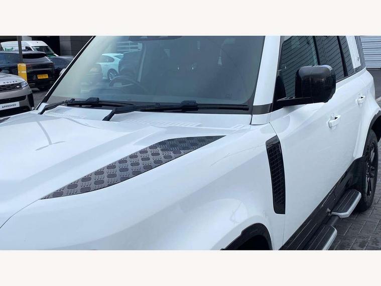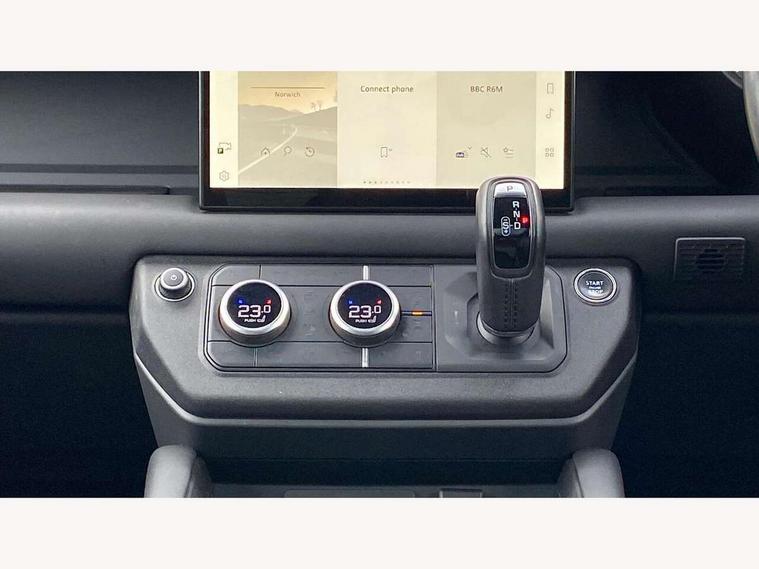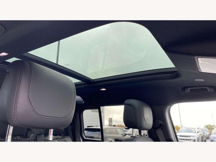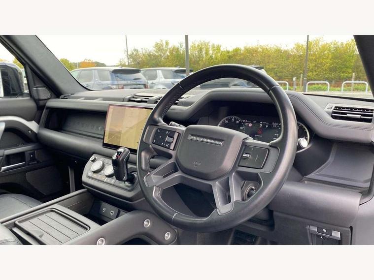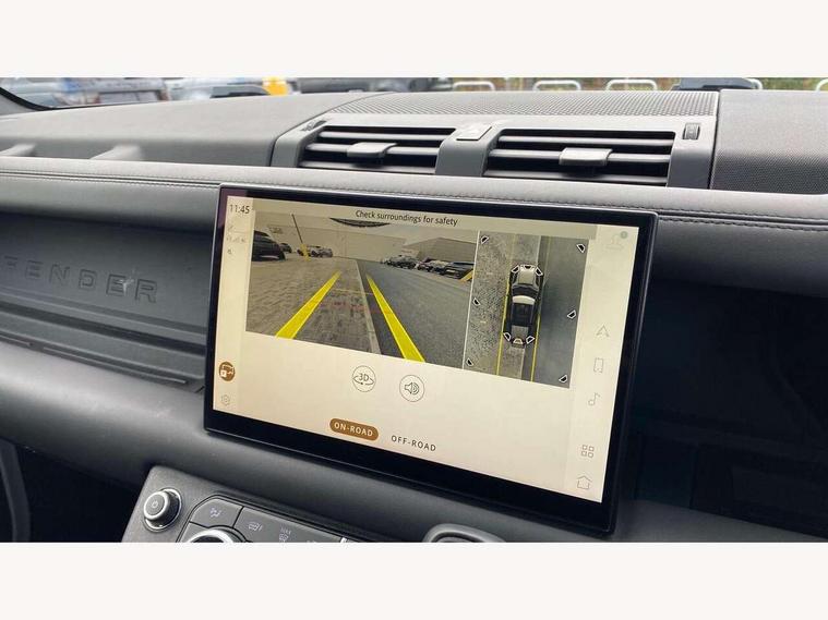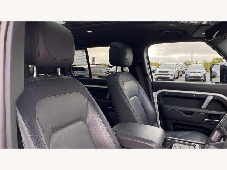 11.4" touchscreen, 360 degree parking aid, 3D Surround Camera with 360 View, 180 Rear View, Front Traffic Detection, Forward Vehicle Guidance, Tow Hitch Assist and clear sight Ground View, Adaptive cruise control, Android Auto, Apple CarPlay, Assisted tailgate with soft close, Blind spot assist, Bluetooth system, Brake pad wear indicator, Clear exit monitor, Connected navigation pro, Driver condition monitor, Electric power assisted steering (EPAS), Lane keep assist, Push button start, Rear collision monitor, Rear traffic monitor, Traffic sign recognition with adaptive speed limiter, Trip computer, Wade Sensing, 8 speed automatic transmission, All wheel drive system, Twin speed transfer box, DAB Radio (Digital Audio Broadcasting), Meridian 700w surround sound audio system with 15 speakers, Pivi pro connected, Automatic headlight levelling, Automatic headlights, Centre high mounted stop light, ClearSight interior rear view mirror, Electric heated/power fold door mirrors with approach lights and auto dimming driver side, Electric windows with one touch open/close and anti-trap, Follow me home lighting, Front fog lights, Heated rear window with timer, Heated windscreen, LED tail lights, Privacy glass, Puddle lights, Rain sensing windscreen wipers, Rear fog lights, Rear side wing doors, Rear wiper, Side hinged tailgate, Trailer stability assist, X-Dynamic badge, 12V power socket in loadspace, 14 way heated and cooled electric adjustable memory front seats with 4 way manual headrests, 2 seat bench in 3rd row, 3 seat bench in 2nd row, Air quality sensor, Alpine lights, Cabin Air Purification plus, Durable rubber cabin flooring, Durable rubber loadspace flooring, Electric reach + rake adjustable steering column, Extended leather upgrade, Footwell lights, Front passenger isofix child seat attachment, Heated steering wheel, Loadspace cover, Loadspace Hook, Multifunction steering wheel, Overhead stowage for sunglasses, Premium cabin lighting, Rear headrests, Rear ISOFIX, Rear reading lights, Single front passenger seat, Storage glovebox, Sunvisors with illuminated vanity mirrors, Twin front cupholders with cover, Online pack with data plan - Defender, 7 three point seatbelts, ABS, Brake hold function, Cornering brake control (CBC), Customer configurable autolock, DSC - Dynamic Stability Control, EBD - Electronic brakeforce distribution, Electric parking brake (EPB), Emergency brake assist, Emergency braking, ESP + traction control, Front airbags with passenger seat occupant detector, HDC - Hill descent control, Hill launch assist, Low traction launch, Power operated child locks, Remote for (e-Call, Optimised assistance call, InControl app, Climate, beep and flash and door), RSC - Roll stability control, Seat belt reminder, TPMS (Tyre pressure monitoring system), Alarm, Immobiliser, Intrusion sensor, Keyless entry, Locking wheel nuts,