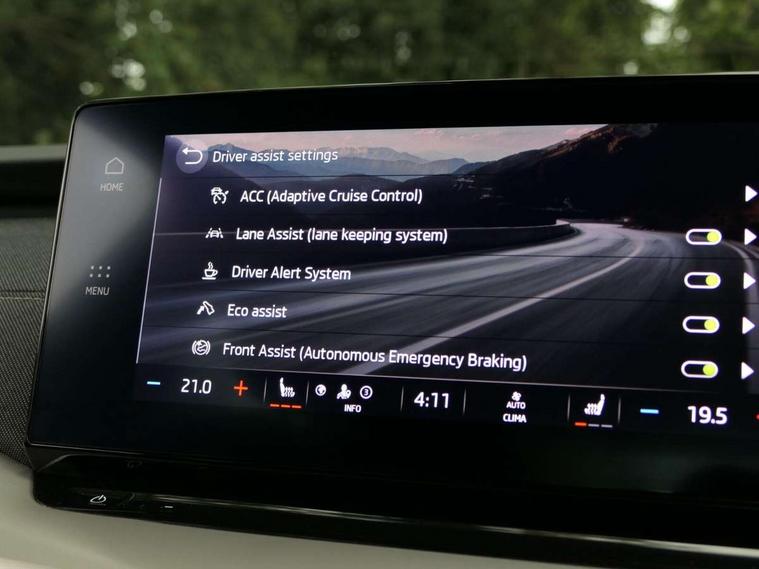 1x USB Type C port in rear view mirror (charging only), 2x USB Type C ports in rear of front centre armrest (charging only), Bluetooth system, Boot lid release from inside vehicle (electrically), Columbus satellite navigation with 10" touchscreen display, Driver fatigue sensor, eCall emergency system, Electro-mechanical power steering, Front and rear parking sensors with manoeuvre assist, Front assist system, Speed limiter, Turn Assist, Virtual Cockpit - 10.25" digital display, Voice control system, Wireless SmartLink for Apple Car Play, 2x USB Type C ports (for charging and data transfer), 8 Speakers, DAB Digital radio, Aero front windscreen wipers with intermittent function, Auto dimming rear view mirror, Body colour door mirrors and handles, Chrome grille surround, Chrome strip in lower front bumper, Chrome window surround, Electric front and rear windows, Headlight washers, Heated rear windscreen, High level third brake light, Ice scraper in fuel cap, Rain and light sensors, Rear fog light on one side, Rear privacy glass, Rear side wing doors, 3 rear headrests, 3 seat bench in 2nd row, 4 foldable roof handles, Chrome inner door handles, Front centre armrest, Front head restraints, Grey headlining, Heated front seats, Illuminated glovebox, Leather trimmed gearshift lever, Luggage compartment lighting x1 light, Microsuede cloth upholstery, Parcel shelf - folding, Satin black microsuede with grey stitching in padded dash panel, Single front passenger seat, Sunglasses storage, Textile floor mat set, Ticket holder, Two-spoke leather multi function steering wheel with paddles, Umbrella in door panel, Unsplit rear bench seat and split folding backrest, 3 point front/outer rear seatbelts+pre-tensioners, Alarm with interior monitoring, tilt sensor and back up horn, Automatic door unlocking in case of crash, Automatic fuel cut off in case of crash, Automatic warning lights in case of emergency braking, Curtain airbags and front side airbags, Driver and front passenger airbags, Drivers knee airbag, Electronic parking brake, ESC including ABS, EBV, MSR, ASR, EDS, HBA, DSR, Front central airbag, Hill hold control, Hill start assist, ISOFIX on front passenger seat and outer rear seats, Manual rear child locks, Passenger airbag deactivate switch, Pro active services, Rear disc brakes, Two tone horn, Tyre pressure monitor, Visual and acoustic seat belt reminder, Warning reflectors in front door, Door locks with immobiliser, Keyless entry and start/stop including rear doors, Remote central locking, Chrome air vent surrounds, Silver squares haptik decorative inserts,