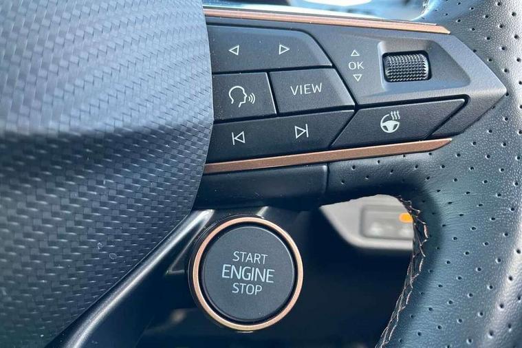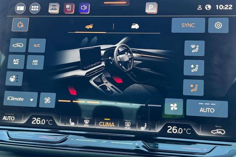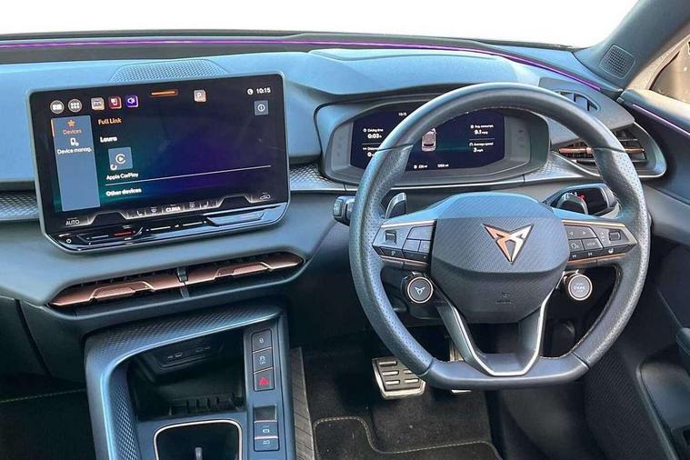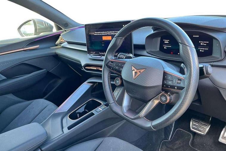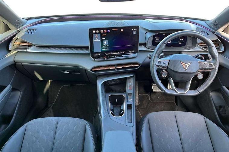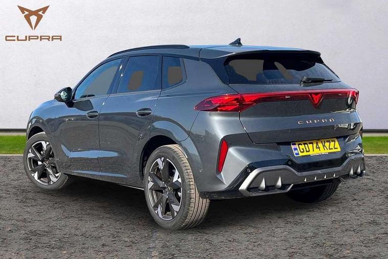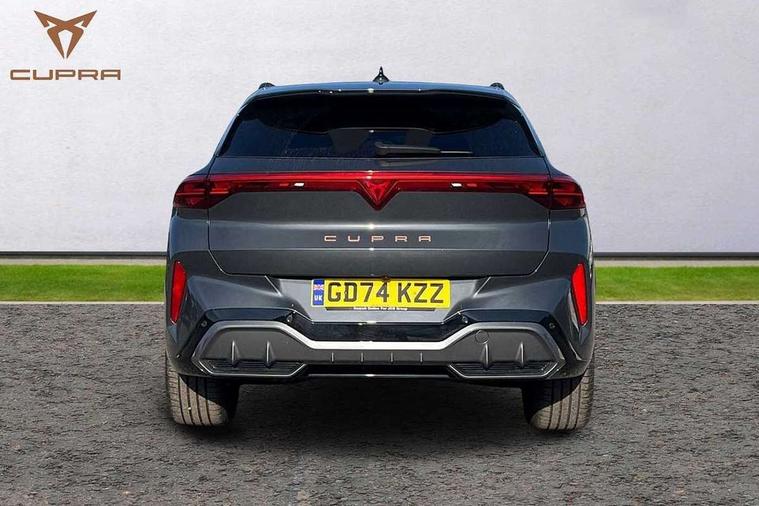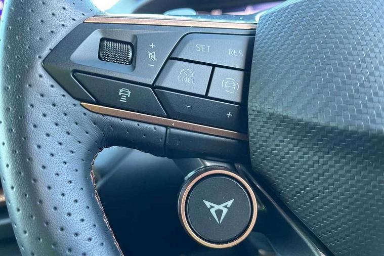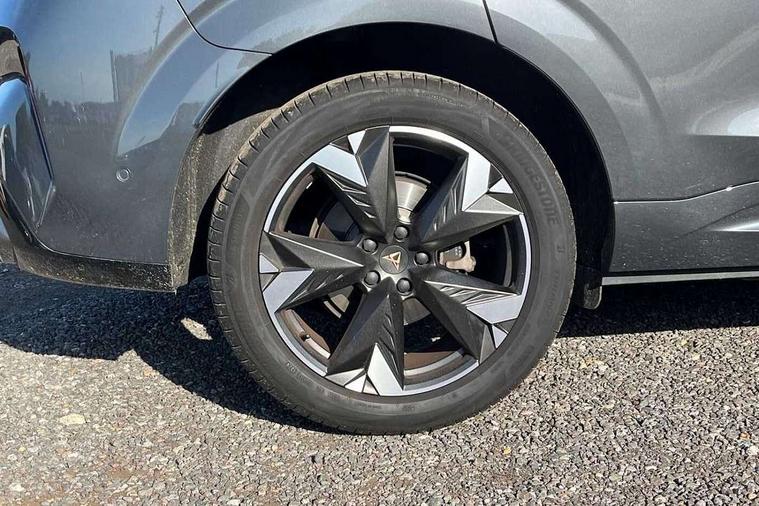 10.25" digital cockpit and configurable dashboard, Adaptive cruise control with follow-to-stop and speed limiter, Advanced driver alert system, Advanced lane assist with semi-automatic vehicle control in a medical emergency and traffic jam assist, Driving profile selection and conventional shock absorber, Dynamic road sign display, E-call, Electric tailgate with virtual pedal, Emergency steering support with turn assist, Four x USB Type C ports (2 in front and 2 in rear), Front and rear parking sensors, Front assist (Forward collision warning with automatic braking) with multifunction camera and front cross traffic assist, Head up Display, Intelligent park assist, Media system with Nav - 12.9" touch display, voice control, full link phone (wired/wireless), DAB and Steering wheel mounted controls, Rear traffic assist, Side and exit assist, Speed sensitive power steering, Start/stop system with regenerative braking, Top view camera (front camera, rear camera, 2 side cameras), Wireless phone charger, Auto dimming rear view mirror, Black roof rails, CUPRA 3D rear lights with ceremony & swiping indicator and illuminated logo, Dark tinted rear windows, Daytime running lights with automatic headlight control and Coming and Leaving home function, Door mirrors with memory function and lowing function on passenger mirror, Dynamic headlight range control, Electric front/rear windows, Electrically adjustable, heated and folding door mirrors, Front fog lamps with cornering function, Heat reflecting windscreen, High beam assist, LED headlamps with signature "CUPRA LED", Rain sensing wipers, Rear fog light on one side, back up light on both sides, Rear side wing doors, Rear wash/wipe, Third brake light, Welcome lights (within exterior mirror housing), 3 seat bench in 2nd row, Black roof lining, Cupra sports pedals, Dinamica cloth upholstery, Driver seat memory function, Electrically adjustable front seats including lumbar support, Front and rear head restraints, Front and rear reading lights X 4, Front centre armrest, Heated front seats, Heated leather wrapped multi function sports steering wheel with tiptronic, Illuminated interior front door sills, Isofix, Operating voltage 12V, Single front passenger seat, Smart wraparound interior lighting, Sunvisors with illuminated mirror, Three zone climate control with control panel in rear, Unsplit rear seat bench, split folding backrest, with centre armrest, Variable luggage/load compartment floor, 3 point seatbelts in front with pretensioner and electric height adjustment, 3 point seatbelts on all rear seats, Brake control system - ESC and brake booster, Child proof door locks, Driver and front passenger airbags, Electronic parking brake, Front and rear disc brakes, Front interaction airbag, Front passenger airbag deactivation switch, Front side airbags with curtain airbags, Pre-crash front and rear seat belt tensioner, window closure and hazard lights, Tyre pressure monitoring system, Visual and acoustic seat belt reminder, electric contact in front and rear, Anti theft alarm, Keyless locking and starting system with keyless access, Locking wheel bolts, Black decorative trims, Chrome interior detailing, 19" Spectrum exclusive machine alloy wheels, Tool kit,