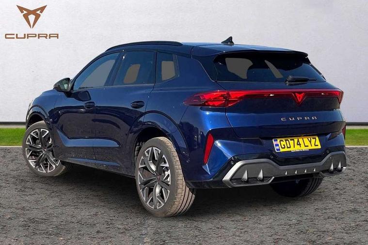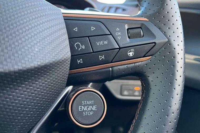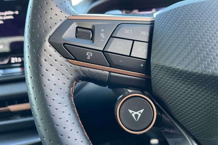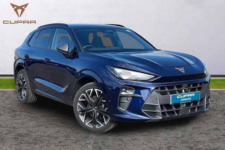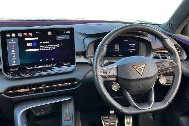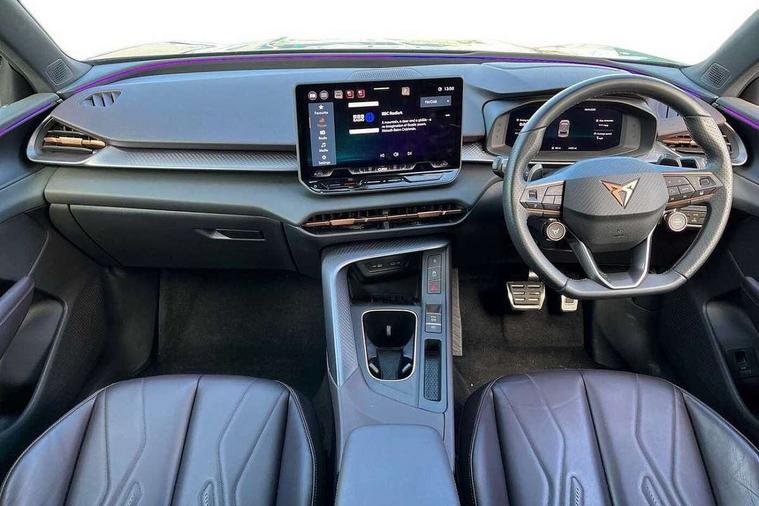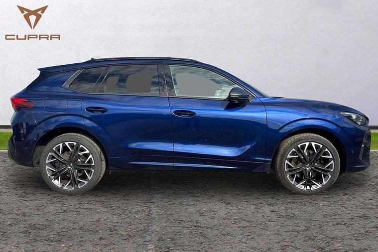 10.25" digital cockpit and configurable dashboard, Adaptive cruise control with follow-to-stop and speed limiter, Advanced driver alert system, Advanced lane assist with semi-automatic vehicle control in a medical emergency and traffic jam assist, Driving profile selection (DCC- Comfort, performance, CUPRA, Individual, Dynamic road sign display, E-call, Electric tailgate with virtual pedal, Emergency steering support with turn assist, Four x USB Type C ports (2 in front and 2 in rear), Front and rear parking sensors, Front assist (Forward collision warning with automatic braking) with multifunction camera and front cross traffic assist, Head up Display, Intelligent park assist, Media system with Nav - 12.9" touch display, voice control, full link phone (wired/wireless), DAB and Steering wheel mounted controls, Rear traffic assist, Side and exit assist, Speed sensitive power steering, Start/stop system with regenerative braking, Top view camera (front camera, rear camera, 2 side cameras), Wireless phone charger, Adaptive chassis control with a 2-valve shock absorber, Auto dimming rear view mirror, Black roof rails, CUPRA 3D rear lights with ceremony & swiping indicator and illuminated logo, Dark tinted rear windows, Daytime running lights with automatic headlight control and Coming and Leaving home function, Door mirrors with memory function and lowing function on passenger mirror, Electric front/rear windows, Electrically adjustable, heated and folding door mirrors, Front fog lamps with cornering function, Heat reflecting windscreen, High beam assist, Rain sensing wipers, Rear fog light on one side, back up light on both sides, Rear side wing doors, Rear wash/wipe, Third brake light, Welcome lights (within exterior mirror housing), 3 seat bench in 2nd row, Black roof lining, Cupra sports pedals, Driver seat memory function, Electrically adjustable front seats including lumbar support, Front and rear head restraints, Front and rear reading lights X 4, Front centre armrest, Heated front seats, Heated leather wrapped multi function sports steering wheel with tiptronic, Illuminated interior front door sills, Isofix, Leather upholstery, Operating voltage 12V, Single front passenger seat, Smart wraparound interior lighting, Sunvisors with illuminated mirror, Three zone climate control with control panel in rear, Unsplit rear seat bench, split folding backrest, with centre armrest, Variable luggage/load compartment floor, Pure performance pack - Terramar, 3 point seatbelts in front with pretensioner and electric height adjustment, 3 point seatbelts on all rear seats, Brake control system - ESC and brake booster, Child proof door locks, Driver and front passenger airbags, Electronic parking brake, Front and rear disc brakes, Front interaction airbag, Front passenger airbag deactivation switch, Front side airbags with curtain airbags, Pre-crash front and rear seat belt tensioner, window closure and hazard lights, Tyre pressure monitoring system, Visual and acoustic seat belt reminder, electric contact in front and rear, Anti theft alarm, Keyless locking and starting system with keyless access, Locking wheel bolts, Black decorative trims, Chrome interior detailing, 20" Hadron exclusive machine alloy wheels, Performance tyres in polmer coating, Tool kit,