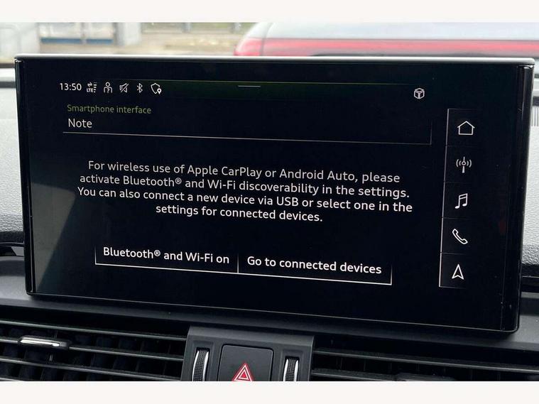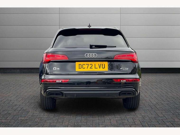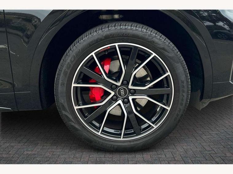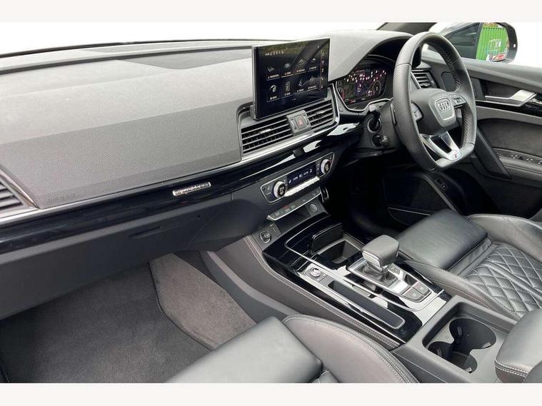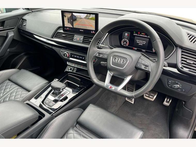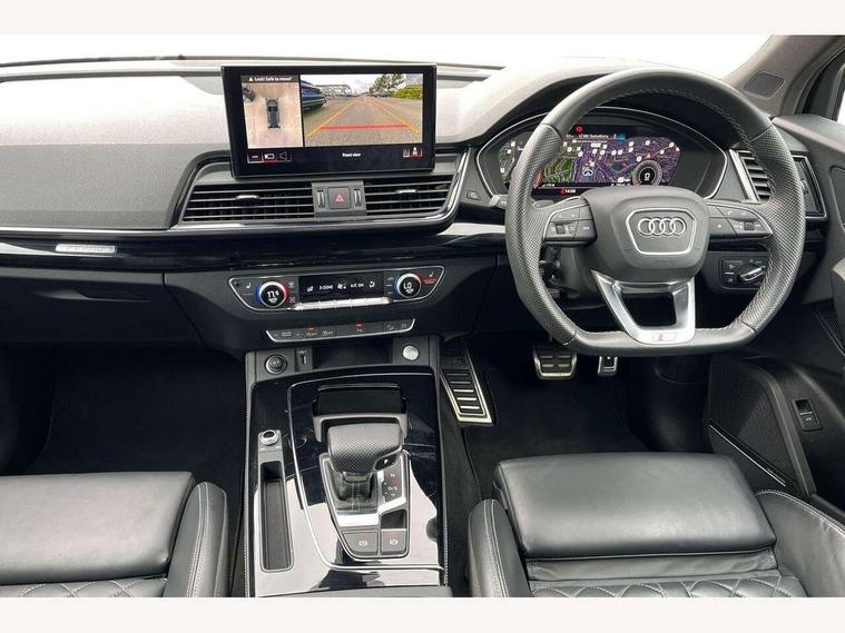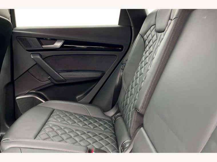Audi connect safety and service (e-call), Audi connect with Amazon Alexa Integration, Audi drive select, Audi virtual cockpit plus with 12.3" screen and three different layout designs, Audi wireless smartphone interface, Automatic start-stop system with coasting functionality and efficiency programme, Bluetooth interface, Electro - mechanical power assisted steering, MMI navigation plus with 10.1" touch screen, Power tailgate, Reversing camera, Service interval indicator, Voice control system with Audi hotword activation "Hey Audi", Diesel particulate filter, Quattro on demand, S line sports suspension, 2 x USB charging port with aux input socket, DAB Digital radio, Acoustic windscreen, Audi matrix LED headlights with dynamic front and rear indicators, Audi rings at front and rear in black, Audi rings decal on rear doors, Auto dimming door mirrors, Auto dimming rear view mirror, Automatic headlight adjustment, Automatic headlights and windscreen wipers, Black roof rails, Body colour bumpers, Body colour underbody protection, Chrome plated exhaust trims, Daytime running lights, Door sills in Selenite silver, Electric adjustable/heated/folding door mirrors, Front air inlet surrounds in titanium black, Front and rear electric windows, Headlight washers, High gloss black B pillar trims and triangular rear door trim, High level LED brake light, Rear chrome trim strip below lights, Rear privacy glass and rear side windows, Rear side wing doors, Rear wiper, Roof bars, S Line rear spoiler, 3 rear headrests, 4 way electric lumbar support for driver and front passenger, 40:20:40 split folding 3 rear bench seat in 2nd row with rear centre armrest, Black cloth headlining, Comfort front centre armrest, Contrast stitching on seats, steering wheel and gear lever gaiter, Deluxe 3 zone electronic climate control, Electrically adjustable front seats, Fine Nappa leather upholstery with diamond pattern contrast stitching + front sport seats with S embossed logo, Front/rear floor mats, Gear lever in black leather, Heated front seats, Height adjustable front head restraints, Height/reach adjustable steering column, Illuminated door sill trims with S logo, ISOFIX child seat mounting and top tether, Luggage compartment cover, Rear seat bench plus, Removable luggage compartment floor, Single front passenger seat, Stainless steel pedals, Sunvisors with vanity mirrors, Black styling package - Q5 Edition 1, Extended interior upholstery pack - Q5, Extended LED Interior multi coloured Lighting Pack - Q5, 3 point seatbelts on all seats, 6 airbags - Driver, front passenger, curtain and side airbags, Electrically operated child locks on rear doors, Electromechanical parking brake, Electronic stabilisation control including ABS, ASR and EDL, Front and rear brake calipers painted in red, Front passenger airbag deactivation, Hill descent control, Hill hold assist, Multi collision brake assist, Pop-up bonnet for pedestrian protection, Pre sense city, Seat belt force limiter, Seatbelt monitoring, Tyre pressure warning, Warning triangle and first aid kit, Anti theft alarm, Anti-theft wheel bolts, Keyless Go access/ignition system, Remote central locking, Piano black finish inlay,