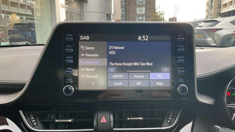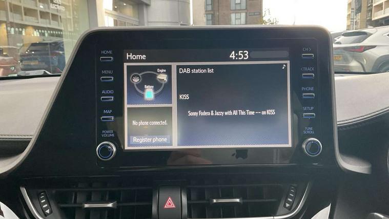 4.2" coloured TFT screen for multi-information display, Adaptive cruise control, Bluetooth connectivity, E-call, Electric power steering, Hybrid system indicator, Lane departure alert with steering control, Lane trace assist, Push button start, Push button tailgate release, Remote boot door release in cabin, Remote boot door release in key, Reversing camera, Road sign assist - RSA, Smart voice assist, Trip computer, Voice recognition, Vehicle Stability Control (VSC), 6 speakers, AM/FM radio, DAB Radio (Digital Audio Broadcasting), Toyota touch 2 multimedia system with 8" display, USB connector, Wi-fi connectivity, Anti-jam protection on power windows, Auto high beam, Auto up and down function on all power windows, Automatic headlights, Automatic headlights cut-off, Black and body coloured rear bumper, Black lower front grille, Black upper front grille, Body colour door handles, Body colour door mirrors, Body colour front spoiler lip, Body coloured front bumper, Boot door release with push button, Electric heated door mirrors, Follow me home headlights, Front and rear power windows, Front fog lights, Headlight cut off reminder, Honeycomb lower front grille, LED daytime running lights, LED High mounted stop light, LED rear brake lights, LED rear combination lights, Manual headlight levelling, Manually retractable door mirrors, Noise reduction layer on front windows and windscreen, Power adjustable door mirrors, Rear side wing doors, Rear spoiler, Rear tailgate, Rear window defogger, Rear window wiper, Reflective LED headlights, Shark fin antenna, UV-filter on driver and passenger windows, UV-filter on rear windows, 12v power outlet - front, 3 rear headrests, 3 seat bench in 2nd row, 3 spoke leather steering wheel, 60/40 split folding rear seat, Adjustable rear headrests, Adjustable speed limiter switch on steering wheel, Assist grips front and centre pillar, Audio and telephone switches on steering wheel, Black front door assist grips, Boot light, Chrome interior door handles, Cloth upholstery, Driver and front passenger personal light, Driver and front passenger Whiplash Injury Lessening seats, Dual zone automatic air conditioning, Floor mats, Front cupholders, Front head restraints, Front sports seats, Glovebox with internal light, Hard tonneau cover, Hooks for luggage holding net, Humidifying Nanoe air purifier, Illuminated entry system, Isofix attachments on outer rear seats, Leather gearshift, Light on driver sun visor, Light on passenger sun visor, Manual telescopic steering wheel, Manual tilt steering wheel, Manually adjustable lumbar support on driver seat, Manually height adjustable driver seat, Manually height adjustable front passenger seat, Manually reclining driver seat, Manually reclining front passenger seat, Manually sliding driver seat, Manually sliding front passenger seat, Microphone on front personal light, Mirror on driver sun visor, Mirror on passenger sun visor, Multimedia switches on steering wheel, Pollen filter, Shopping bag hooks, Single front passenger seat, Slow opening on lower glovebox, Voice recognition switch on steering wheel, 16 Disk front wheel brake, 3x3 point rear seatbelts, ABS+EBD+Brake assist, Electronic parking brake, Front and rear seatbelt reminder, Front passenger airbag on/off switch, Hill start assist control (HAC), Pre collision system with pedestrian detection, Pre-tensioners and force limiters, Rear door child safety locks, SRS Airbags - Driver + Front passenger, front side, front and rear curtain and driver's knee airbags, Toyota safety sense, Tyre pressure monitoring system, Tyre pressure warning system, Acoustic vehicle alert system (AVAS), Glass-breaking alarm sensors, Immobiliser, Intrusion alarm, Intrusion sensor, Motion sensor alarm, Power door locks, Power passenger window lock, Remote central locking, Black lower dashboard, Black upper dashboard, Grey deco line on upper dashboard, Matte black centre console, Tyre repair kit,