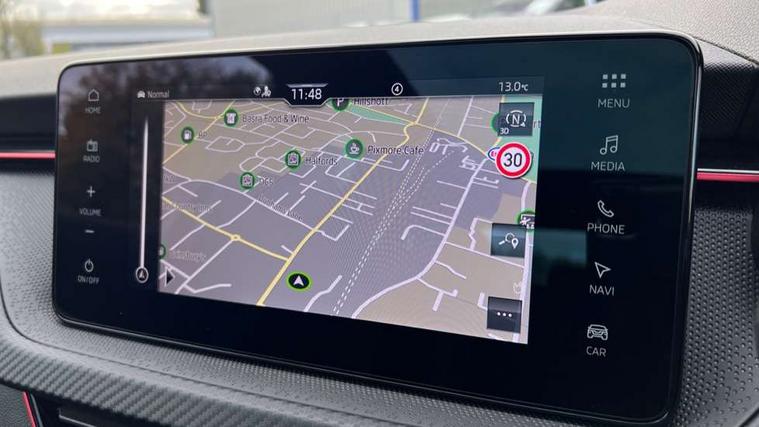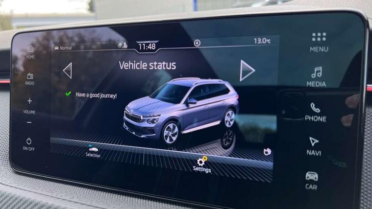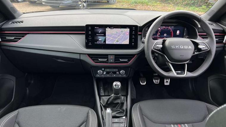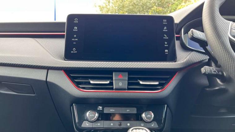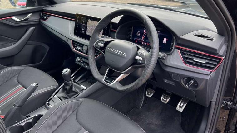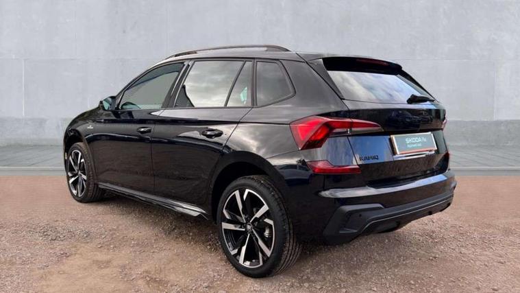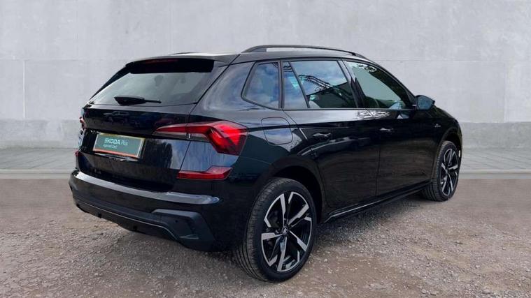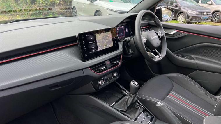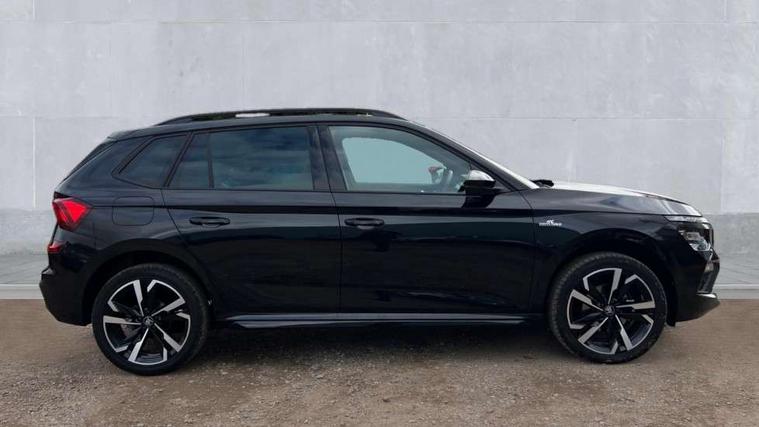 Advanced driver attention and drowsiness monitor, Bluetooth system, E-call, Front assist system, PAS, Rear parking sensors, Rear view camera, Service indicator, Speed limiter, Traffic sign recognition, Virtual cockpit with 10.25" display, Voice control system, Wireless smartlink, 4 USB C ports, 8 Speakers, 9.2" Skoda navigation display, DAB Digital radio, Auto dimming rear view mirror, Automatic headlight control with coming home and leaving home feature, Black door mirrors, Black radiator grille, Black rear diffuser, Black roof spoiler, Body colour bumpers, Body colour door handles, Boot lettering in black, Extended tailgate glass, Fixed panoramic sunroof with black roof rails, Front and rear electric windows, Heated rear window, LED daytime running lights, LED high beam, LED low beam, LED third brake light, Light sensors, Monte carlo plaque, Privacy glass, Rear side wing doors, Rear wiper, Ticket holder inside windscreen, 12V socket in luggage compartment, 3 seat bench in 2nd row, Aluminium pedals, Ambient lighting in white/red, Art leather carbon decor inserts, Art leather carbon door inserts, Black roof lining, Cargo elements, Chrome inner door handles, Driver and passenger sun visors with vanity mirror, Dual zone climate control, Front and rear roof lights, Front centre armrest, Front head restraints, Glove compartment with illumination, Height adjustable driver seat, Height adjustable front passenger seat, Ice scraper, Inner circulation control with pollen filter, ISOFIX on front passenger seat, Isofix preparation for back seats, Leather gearknob and handbrake lever, Manual lumbar support for front seats, Monte Carlo cloth upholstery, Net package and top tether hooks in boot space, Net under rear shelf, Pocket on the back of both front seats include mobile phone pockets, Rake/reach adjustable steering wheel, Reading lights, Rear centre armrests, Red hotstamping, Single front passenger seat, Sports seats, Textile floor mats, Third rear headrest, Top tether for front passenger seat, Umbrella in driver's door, Light and view plus package - Kamiq, 3x3 point rear seatbelts, Airbags - driver and front passenger, Disc brakes, ESP, Extended and predictive pedestrian/cyclist protection, Front passenger airbag deactivation switch, Front side airbags with curtain airbags, Hill hold control, Manual leather parking brake, Manual rear child locks, One tone horn, Seatbelt reminder for driver an co-driver, Traction control, Tyre pressure monitor, Anti-theft alarm system with interior monitoring, backup horn, towing protection and remote central locking with SAFE system, Anti-theft wheel bolts, Electronic engine immobilizer, 18" Ursa black diamond cut alloy wheels,