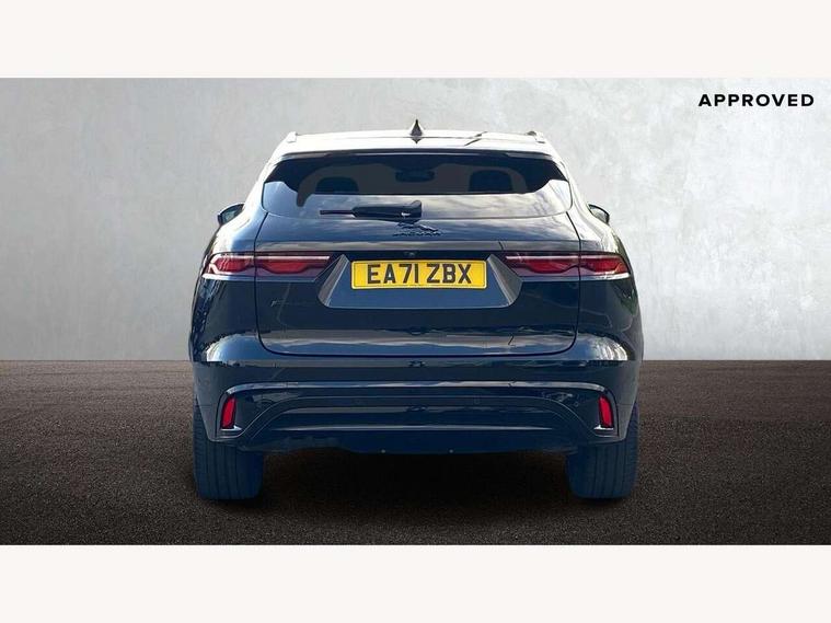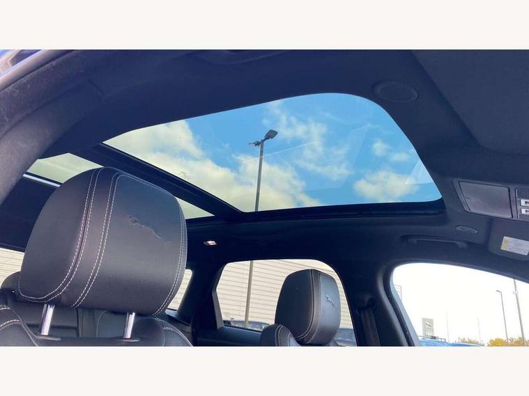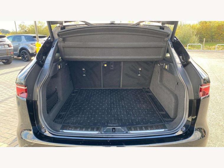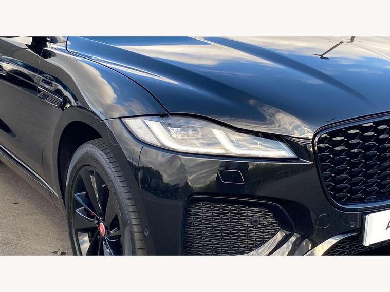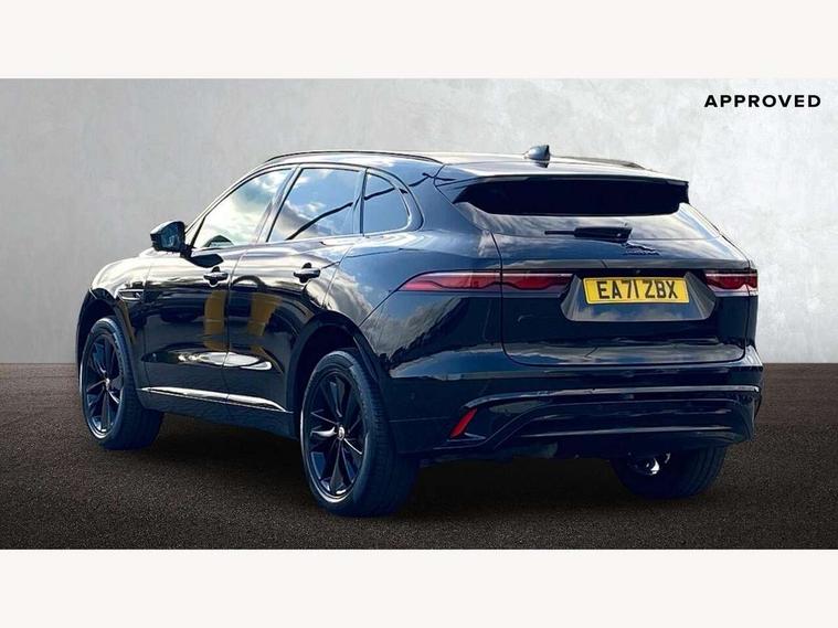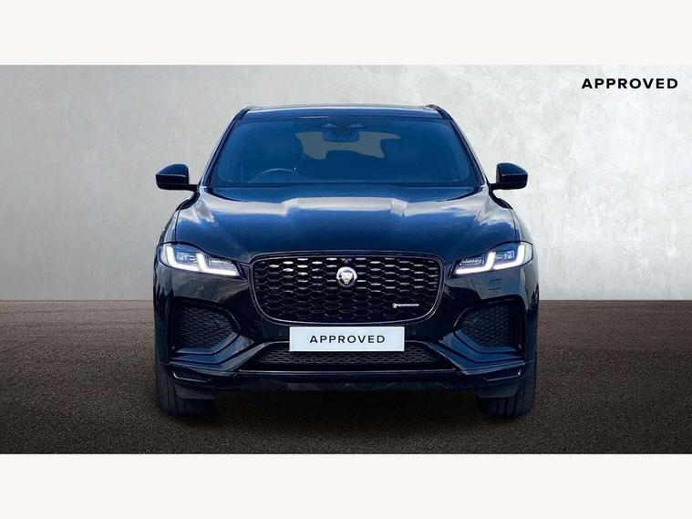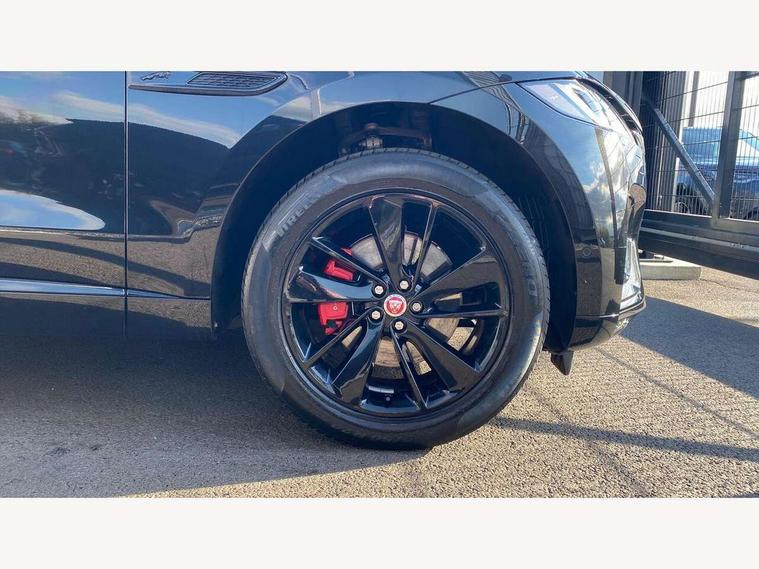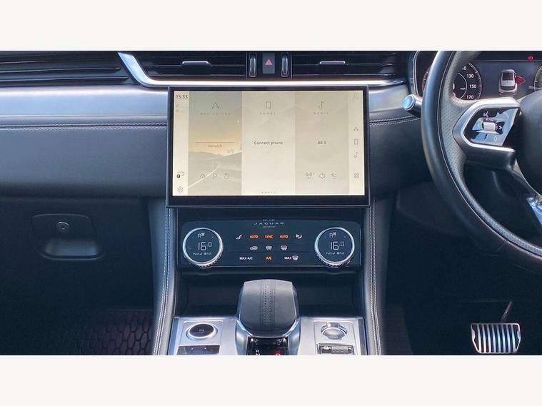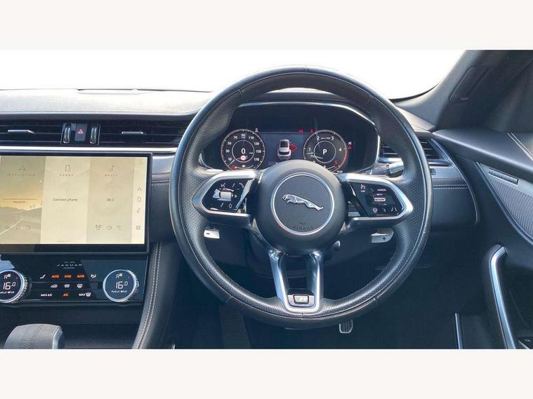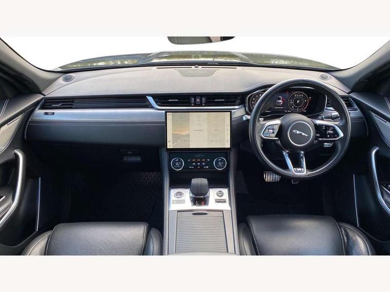 11.4" touchscreen, Android Auto, Apple car play, Blind spot assist, Bluetooth connectivity, Clear exit monitor, Driver alert system, Driver condition monitor, Eco driving style assistant, Electric power assisted steering, InControl remote, Interactive Driver display instrument cluster, Jaguar Toggle shift selector, Lane departure warning system, Lane keep assist, Outside temperature gauge, Personalisation profile management, Pivi pro connected navigation system with app interface and media storage, Pro services and wifi hotspot, Push button starter, Rear traffic monitor, Service interval indicator, Speed proportional steering, Start up sequence with movement in dials and lighting, Traffic sign recognition with adaptive speed limiter, Trip computer, Voice control system, 8 speed automatic transmission, All terrain progress control, All Wheel Drive (AWD), Open differential with torque vectoring by braking, AM/FM radio, Bluetooth streaming, DAB Radio (Digital Audio Broadcasting), Dynamic volume control, InControl apps, InControl protect, iPod integration, 3 flash lane change indicators, Animated directional indicators, Approach Illumination, Auto dimming rear view mirror, Automatic headlights, Body colour door mirrors, Electric heated/power fold memory door mirrors with approach lights and auto dimming driver side, Electric windows with one touch open/close and anti trap, F-Pace badge, Green tinted glass, Heated front windscreen + heated washer jets, Heated rear window with timer, Illuminated metal tread plates with Jaguar script, Jaguar script and leaper, LED tail lights, Non acoustic front windscreen, R Dynamic badge on side door, Rain sensor windscreen wipers, Rear fog lights, Rear metal tread plates, Rear wiper, Trailer stability assist, Variable front intermittent wipers, 12V power point front, 3 rear headrests, Air distribution speed, Bright metal foot pedals, Centre armrest console, Centre console with side storage, Door sill tread plates, Electrically adjustable steering column, Fold flat front seats, Front centre armrest with storage compartment, Front door storage space, Glovebox finisher with jaguar script, Heated steering wheel, Hooks in loadspace, Illuminated glovebox, Interior front door handles with separate locking switches, ISOFIX on outer rear seats, Jaguar sense, Luggage tie downs in loadspace, Mist sensing, Multifunction steering wheel, Overhead lighting console, Overhead stowage for sunglasses, Passive front head restraints, Premium cabin lighting, Premium carpet mats, R-Dynamic branded leather steering wheel, Rear air vents, Rear armrest with twin cupholders, Rear centre headrest, Rear door storage space, Reversible boot floor, Satin chrome gearshift paddles, Shopping bag hook, Sunvisors with illuminated vanity mirrors, Twin front cupholders with cover, Online Pack with data plan - F-Pace, 355mm front brakes and 325mm rear brakes, 3x3 point rear seatbelts, ABS, All surface progress control (ASPC), Brake pad warning light, DSC - Dynamic Stability Control, Electric parking brake (EPB), Emergency brake assist, Front airbags with passenger seat occupant detector, Front and rear seatbelt reminder, Front side airbags, Full length side window curtain airbag, Hill launch assist, Power operated child locks, Torque vectoring brake, Traction control, Tyre pressure monitoring system, Immobiliser, Keyless entry, Keyless Start, Locking wheel nuts, Perimeter alarm, Remote central locking, Valet mode,