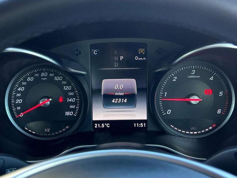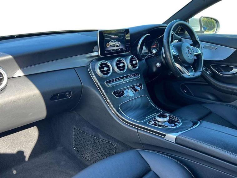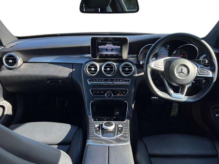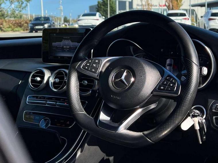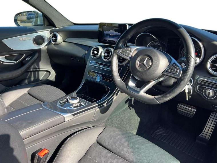Active park assist with parktronic system, Attention assist, Bluetooth interface for hands free telephone, Collision prevention assist plus, DYNAMIC SELECT with a choice of driving modes (ECO, Comfort, Sport, Sport+ and Individual), Garmin Map Pilot navigation system with SD card, touchpad and voice control, Instrument cluster with 5.5-inch TFT multi-function display, Multi function trip computer, Outside temperature gauge, Remote boot release, Service indicator (ASSYST), Speed sensitive steering, Diesel particulate filter, 2 USB ports, Audio 20 radio/CD with 7" colour display with multi touch keypad, DAB digital radio module, Frontbass loudspeakers, Media interface, Steering column mounted multifunction controls, Adaptive brake lights, AMG front, rear apron and side skirts, Auto dimming driver's door mirror, Auto dimming rear view mirror, Body coloured bumpers, Chrome grille surround, Door sill plates with "Mercedes-Benz" lettering, Electric adjustable/heated/folding door mirrors, Electric windows one touch open/close, Green tinted glass, Heated windscreen washers, LED daytime running lights, LED tail lights, Radiator grille with integral star, Rain sensor windscreen wipers, Side windows surround in polished aluminium, Twin chrome exhaust tailpipes, 2 cupholders in front centre console, 2 rear head restraints, 3 spoke flat bottom multi-function leather AMG steering wheel, 4-way lumbar support for drivers seat, 4-way lumbar support for front passenger seat, 40:20:40 split folding rear seats, AMG floormats, Auto dual-zone climate control system, Auto Mercedes-Benz child seat recognition sensor, Door courtesy lamps, Electric front seats, Electric height adjustable front seats, Front centre armrest with storage compartment, Front footwell illumination, Heated front seats, Height/reach adjustable steering column, Illuminated front/rear door handle recesses, Illuminated glovebox, Isofix rear child seat fastenings, LED reading lights, Sports pedals with stainless steel surfaces and rubber studs, Sports seats with integrated headrests, Steering wheel gearshift paddles, Sunvisors with illuminated vanity mirrors, Seat comfort pack - C Class, Stowage space pack - C Class, 2 rear seatbelts, ABS + BAS, Active bonnet, Adaptive brake system, Brake calipers with Mercedes-Benz lettering + perforated brake discs, Drivers knee airbag, Drivers pelvis airbag, Dual stage driver/passenger airbags, Electronic parking brake, ESP with ASR, Front side airbags, Hill hold control, Hill start assist, Tyre pressure monitoring system, Warning triangle and first aid kit, Window airbags, Alarm system/interior protection/immobiliser, Chrome surround electric key, Remote central locking,