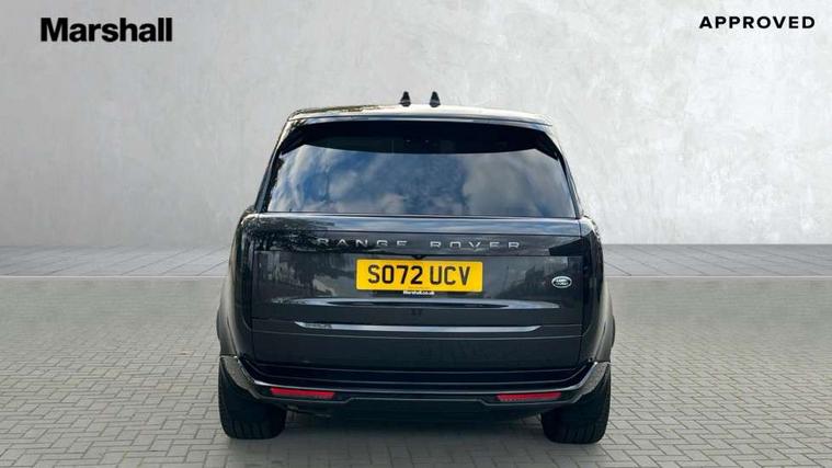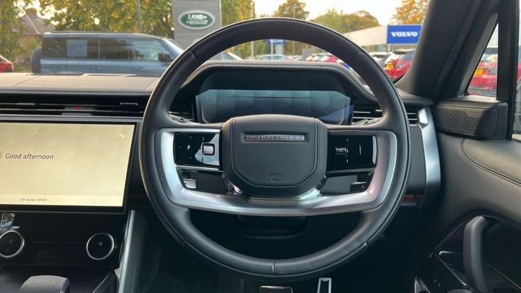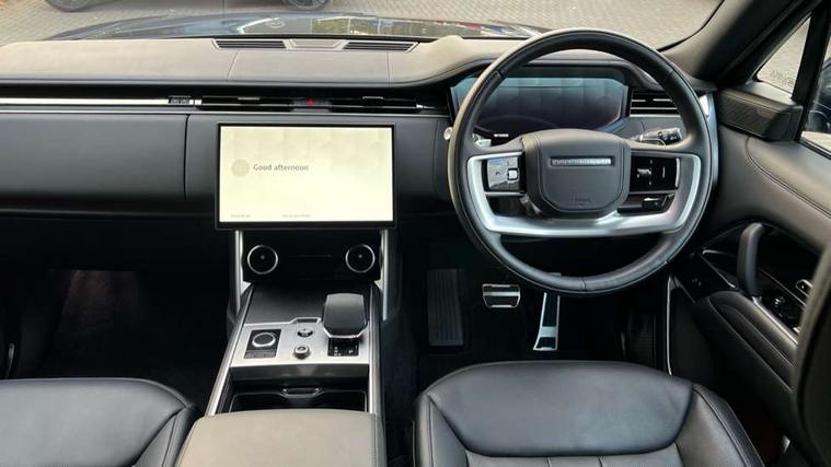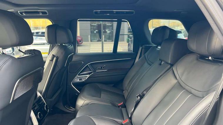 13.1" Touchscreen, 3D surround camera inc frwd traffic detection, vehicle clearance guidance, 3D view, clearsight ground view, manoevure light, 360 parking aid, wade sensing, Adaptive cruise control with steering assist, All Terrain Info Centre, All wheel steering, Android Auto, Apple car play, Blind spot assist, Bluetooth connectivity streaming, Configurable programs, Driver condition response, Eco mode, Electric power assisted steering (EPAS), Emergency call service, Front and rear parking aid, Head up Display, Interactive driver display, Lane keep assist, Powered gesture tailgate/boot lid, Rear collision monitor, Rear traffic monitor, Remote, Traffic sign recognition with adaptive speed limiter, Wi-Fi Enabled with data plan, Wireless device charging with phone signal booster, 8 speed automatic transmission, Active damper technology system, Adaptive dynamics, All terrain progress control, All Wheel Drive (AWD), Automatic access height, Electronic active differential with torque vectoring by braking, Electronic air suspension with dynamic response, Terrain Response 2 Auto, Twin speed transfer box, Digital Audio Broadcast radio-DAB, Meridian 1600W signature sound system, Pivi pro including smart settings, Connected navigation pro, nuance speech, USB socket, Acoustic laminated windscreen, Animated directional indicators, Automatic headlights, Automatic levelling headlights, Centre high mounted stop light, ClearSight interior rear view mirror, Electric windows with one touch open/close and anti trap, Flush deployable exterior door handles, Front and rear recovery eyes, Front fog lights, Headlamp power wash, Heated rear window, Heated washer jets, Illuminated metal treadplates with Autobiography script, Laminated front and rear side glass, LED tail lights, Power fold, auto-dimming, heated door mirrors with approach lights, Rain sensing windscreen wipers, Rear boot, Rear fog lights, Rear side wing doors, Rear wash/wipe, Side repeater indicators in mirror, Solar attenuating windscreen, Trailer stability assist, Winter wiper park position, 12V power sockets, 3 seat bench in 2nd row, Air quality sensor, Auto folding loadspace cover, Bright metal pedals, Cabin air purification pro, Cabin lighting, Customer configurable single point entry, Driver and passenger front seat armrests, Easy boot loading, Ebony Carpet, Electric rear side window sunblinds, Four zone climate control, Front and rear cupholders, Front and rear grab handles, Front head restraints, Gearshift paddles, Heated steering wheel, Hook in load space, Loadspace light, Luggage tie down in loadspace, Multifunction steering wheel, Rear centre armrest, Rear head restraints, Rear ISOFIX, Single front passenger seat, Soft close doors, SV bespoke carpet mats, Twin blade sunvisors with Illuminated vanity mirrors, Upper and lower glovebox, Versatile loadspace floor in tailgate, Online pack with data plan - Range Rover, 3x3 point rear seat belts, Anti-lock braking system (ABS), Black brake calipers, Brake hold function, Cornering brake control (CBC), Customer configurable autolock, DSC - Dynamic Stability Control, Electronic brake force distribution, Electronic parking brake, Electronic traction control, Emergency brake assist, Emergency braking, Front airbags with passenger seat occupant detector, Front side airbags, Hill descent control, Hill launch assist, Illuminated seat belt buckles, Low traction launch, Occupant protection assist, Power operated child locks, Roll stability control, Tyre pressure monitoring system (TPMS), Immobiliser, Intrusion sensor and alarm, Keyless entry, Locking wheel nuts, Remote central locking, Noble chrome controls,