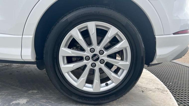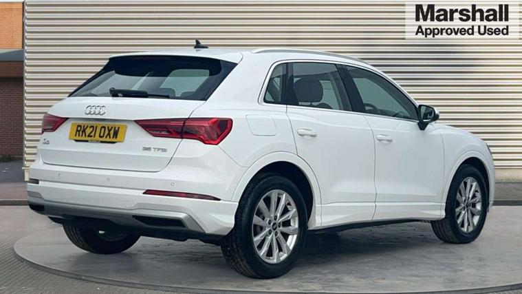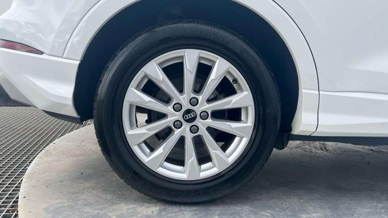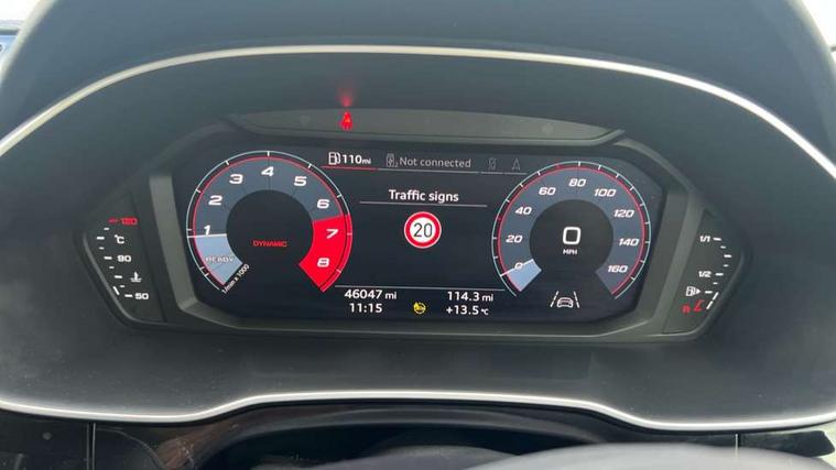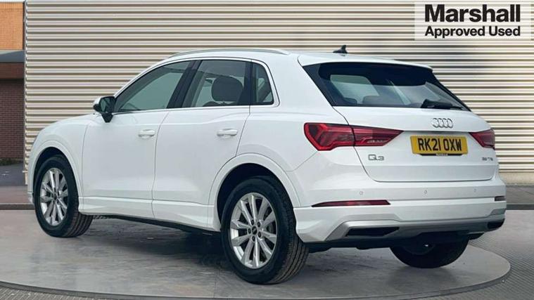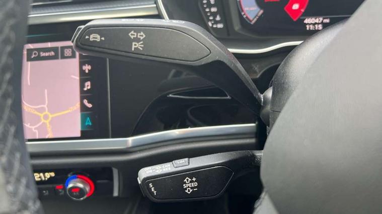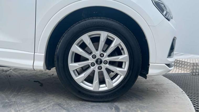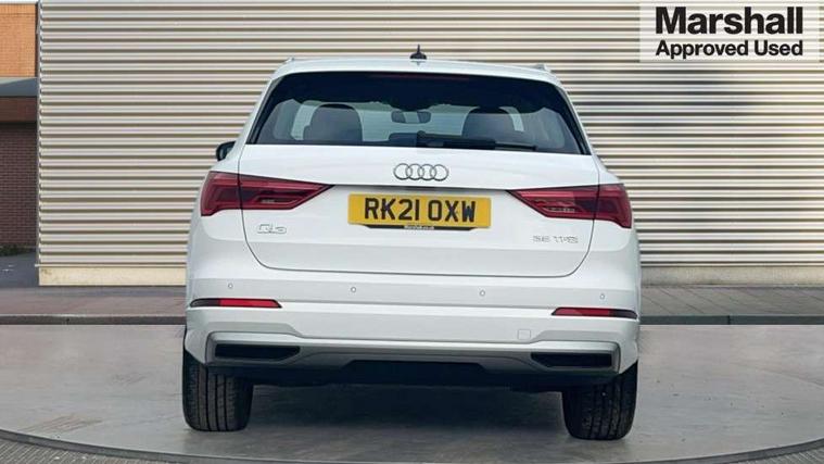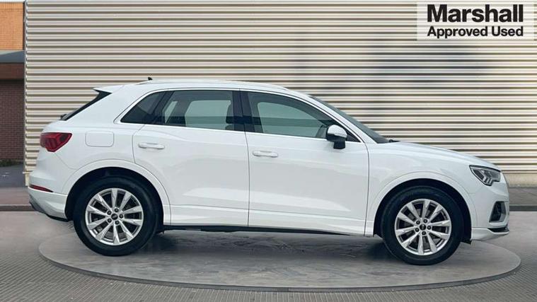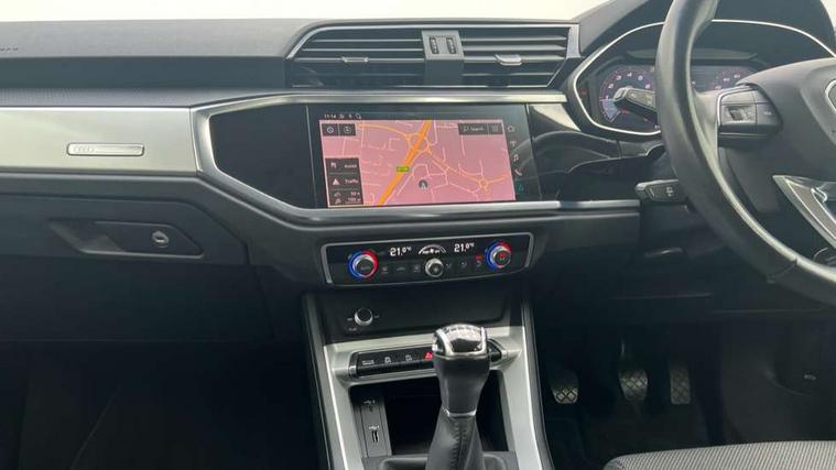Audi connect safety and service (e-call), Audi drive select, Audi lane departure warning, Audi smartphone interface includes wireless Apple carplay/Android Auto, Audi Virtual Cockpit - 10.25" display, Bluetooth interface, Camera based traffic sign recognition, Cruise control + speed limiter, MMI Navigation Plus with high resolution 10.1 inch touchscreen colour display, Power operated tailgate, Progressive steering, Rear parking sensors, Service interval indicator, Start stop system with recuperation, Voice control system with natural language interaction, Standard suspension, 2 USB-C ports with charge and data functions, 6 passive loudspeakers, DAB digital radio module, Acoustic windscreen, Aluminium roof rails, Aluminium window trim, Auto dimming frameless rear view mirror, Body coloured bumpers, Electrically folding, adjustable and heated door mirrors with integrated LED side indicators and kerb view function for passenger side, Front and rear electric windows, Front fog lights, Front side air inlets in matt selenite silver, Front spoiler in matt selenite silver, Grille vertical bars in aluminium silver/Matt, High gloss black finish B and C pillars, LED headlights with LED daytime running lights and dynamic rear indicator, LED rear lights, Rain and light sensors, Rear diffuser strip in matt selenite silver, Silver chrome grille surround, Titanium black radiator grille, 12V socket in rear centre console, 3 spoke multi-function leather steering wheel, 40:20:40 folding with manual adjustment for 60:40 forwards/backwards position and backrest angle, Adjustable rear seat bench/backrest, Aluminium door sill trims, Dual zone electronic climate control, Front and rear floor mats, Front and rear headrests, Front and rear roof module including reading lights, Front centre armrest, Glove compartment lighting, Height and reach adjustable steering wheel, ISOFIX child seat mounting for front passenger with airbag deactivation and outer rear seat including top tether attachment point for outer rear seats, Luggage compartment light, Lunar silver cloth headlining, Manual front seats with height adjustment, Stainless steel luggage compartment sill finisher, Non smoking pack - Q3, 3x3 point rear seatbelts, 6 airbags - Driver, front passenger, curtain and side windows, Audi pre-sense front with pedestrain and cyclist recognition, Electrically operated child locks on rear doors, Electromechanical parking brake, Electronic stabilisation control including ABS, ASR and EDL, Hill descent control, Hill hold assist, Pre sense basic, Seatbelt monitoring, Tyre pressure warning, Warning triangle and first aid kit, Anti theft alarm, Anti theft wheel bolts, Remote central locking, Detail dashboard around MMI touch colour display in glass look, black with surround in aluminium look, Micrometallic silver inlay,