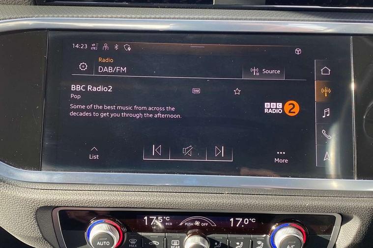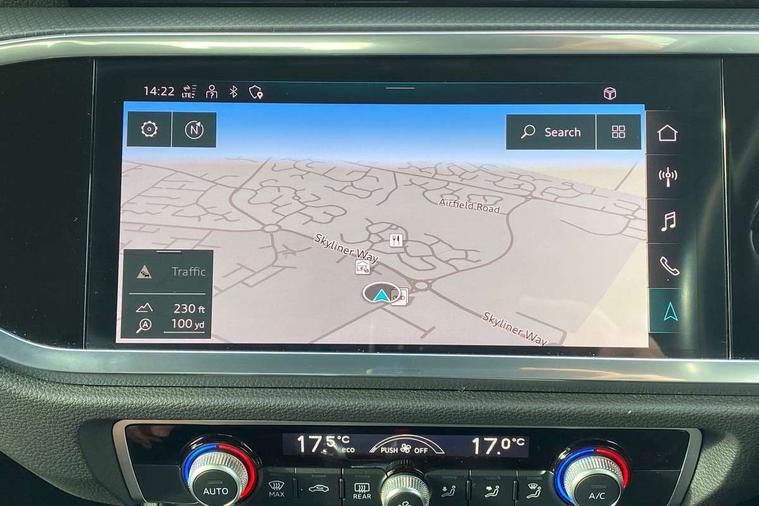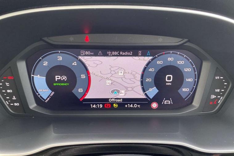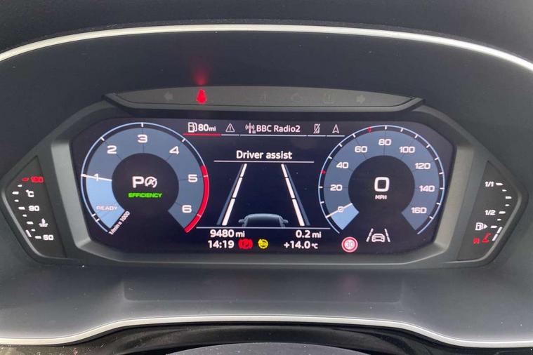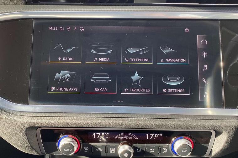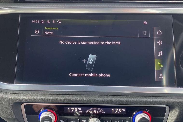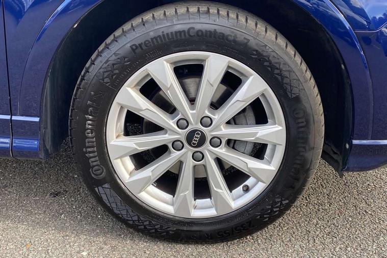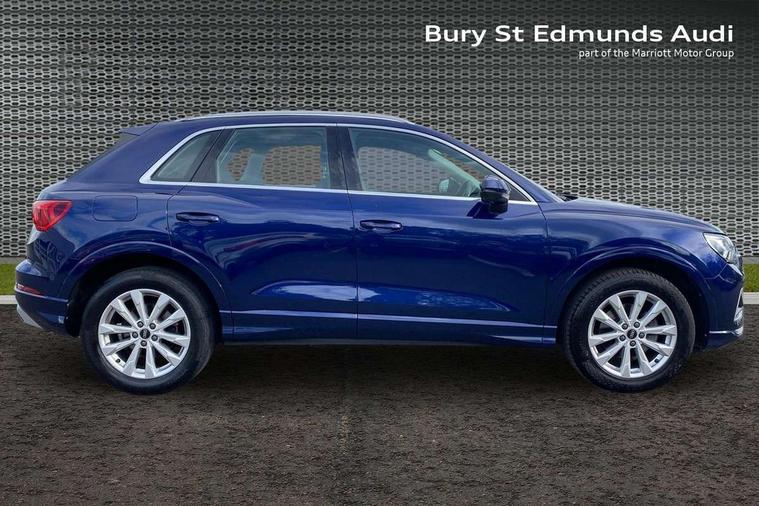 Amazon alexa Integration, Audi connect safety and service (e-call), Audi drive select, Audi lane departure warning, Audi Virtual Cockpit - 10.25" display, Bluetooth interface, Camera based traffic sign recognition, MMI Navigation Plus with high resolution 10.1 inch touchscreen colour display, Power operated tailgate, Progressive steering, Service interval indicator, Smartphone interface includes wireless Apple carplay/Android Auto, Start stop system with recuperation, Voice control system with natural language interaction, Diesel particulate filter, Standard suspension, 2 USB-C ports with charge and data functions, 6 passive loudspeakers, DAB digital radio module, Acoustic windscreen, Aluminium roof rails, Aluminium window trim, Auto dimming frameless rear view mirror, Body coloured bumpers, Electrically folding, adjustable and heated door mirrors with integrated LED side indicators and kerb view function for passenger side, Front and rear electric windows, Front fog lights, Front side air inlets in matt selenite silver, Front spoiler in matt selenite silver, Grille vertical bars in aluminium silver/Matt, High gloss black finish B and C pillars, LED headlights with LED daytime running lights, LED rear lights, LED third brake light, Rain and light sensors, Rear diffuser strip in matt selenite silver, Rear side wing doors, Rear wiper, Silver chrome grille surround, Titanium black radiator grille, Variable front intermittent wipers, 12V socket in rear centre console, 3 seat bench in 2nd row, 3 spoke multi-function leather steering wheel, 40:20:40 folding with manual adjustment for 60:40 forwards/backwards position and backrest angle, Door sill trims with aluminium inlay, Dual zone electronic climate control, Front and rear floor mats, Front and rear headrests, Front and rear roof module including reading lights, Front centre armrest, Glove compartment lighting, Height and reach adjustable steering wheel, ISOFIX child seat mounting for front passenger with airbag deactivation and outer rear seat including top tether attachment point for outer rear seats, Luggage compartment light, Lunar silver cloth headlining, Manual front seats with height adjustment, Single front passenger seat, Stainless steel luggage compartment sill finisher, Non smoking pack - Q3, 3x3 point rear seatbelts, 6 airbags - Driver, front passenger, curtain and side windows, Audi pre-sense front with pedestrain and cyclist recognition, Electromechanical parking brake, Electronic stabilisation control including ABS, ASR and EDL, Front seatbelt reminder, Hill descent control, Hill hold assist, Manual child lock in rear doors, Pre sense basic, Seatbelt monitoring, Tyre pressure warning, Warning triangle and first aid kit, Anti theft alarm, Anti theft wheel bolts, Immobiliser, Remote central locking, Detail dashboard around MMI touch colour display in glass look, black with surround in aluminium look, Micrometallic silver inlay,
