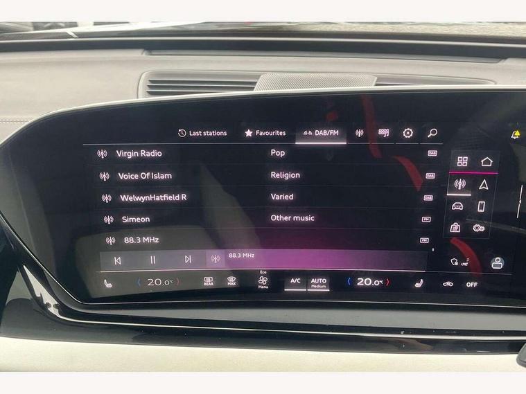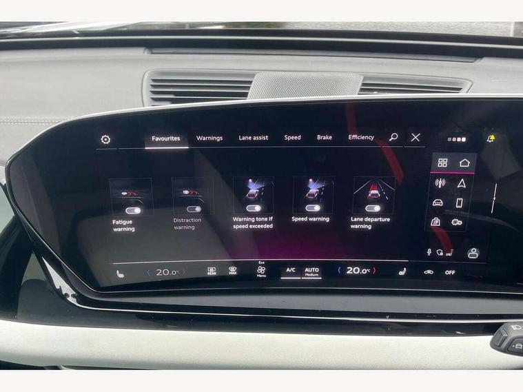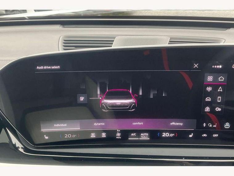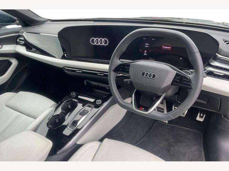 Adaptive cruise control, Advanced driver attention and fatigue montior, Audi application store, Audi assistant, Audi connect emergency call and service, Audi drive select, Audi smartphone interface, Audi virtual cockpit plus with 11.9" OLED colour display, Automatic start/stop system with coasting functionality, Camera based traffic sign recognition, Intersection assist, Lane departure warning, MMI navigation plus with high resolution 14.5" OLED touchscreen colour display, Park assist plus, Parking system plus with 360 display, Progressive steering with servotronic, Rear view camera, Swerve assist and turn assist, Traffic sign based speed limiter, Sports suspension lowered by 20mm, 2 USB-C ports in both the front and rear, Audi sound system impressive sound with 10 loudspeakers including centre speaker and subwoofer, 6-channel amplifier with a total output of 180 watts, DAB digital radio reception, Smartphone compartment with wireless charging, Aluminium window trims, Auto dimming rear view mirror, Body colour door mirrors, Door mirrors - electrically adjustable, heated, folding and auto dimming on both sides, Front and rear electric windows, Front door sill trims with aluminium inlays, illuminated with 'S' logo, High beam assist, LED headlights Plus incl. digital daytime running lights, turning light, all-weather light, motorway light, manouevring light and intersection light, LED rear lights pro incl. dynamic rear indicators and illuminated light strip with animated coming and leaving home function, LED third brake light, Privacy glass, Rear and side windows with heat insulating glass, Rear boot, Rear side wing doors, S Line badges on the front wings, S line bumpers, radiator grille and diffuser in phantom black and diffuser insert in matt anthracite, White rhombus logo projection light in exterior mirrors, Windscreen with acoustic glazing, 3 rear headrests, 3 seat rear bench, 3 spoke leather steering wheel with multi-function buttons with touch control, flattened on top and bottom, with S badging and contrast stitching, 3-zone automatic climate control, 40:20:40 split folding rear seat bench with centre armrest and cup holders, Comfort front centre armrest, Front and rear floor mats, Front seats with manual adjustment for position and 4-way electric lumbar support, Front sport seats with integrated headrest and S embossed logo, Headlining in black cloth, Heated front seats, i-Size child seat mounting on the front passenger side and outer rear seats, i-Size and top tether on the outer rear seats, Luggage compartment lid, electrically opening and closing, Manual steering column height and depth adjustment, Single front passenger seat, Stainless steel pedals and footrest, Steering wheel grips in perforated leather and shift paddles, Ambient lighting package plus - A5, 3x3 point rear seat belts, Driver airbag, Electric child safety locks, First aid kit with warning triangle and vests, Front emergency brake assist, Front passenger airbag, Front passenger airbag deactivation, Front side airbags with head airbag system and front interaction airbag, Hill hold assist, Seat belt monitoring with rear seat occupant reminder, Tyre pressure loss indicator, Anti theft alarm, Anti-theft wheel bolts, Keyless Go, Accent surfaces and control buttons in gloss black, Black dashboard with contrast stitching, Inlays in matt brushed aluminium with linear embossing, anthracite, Softwrap in leatherette with contrast stitching, Upper and lower interior elements in leatherette, Tyre repair kit,