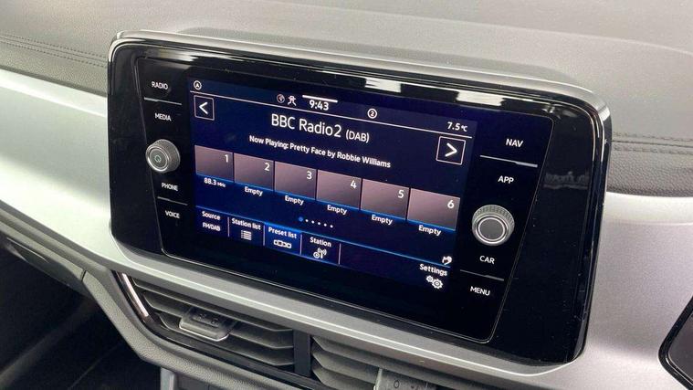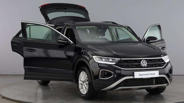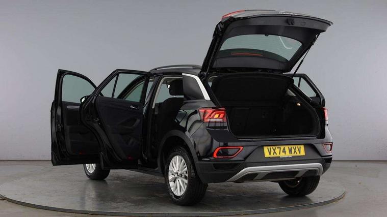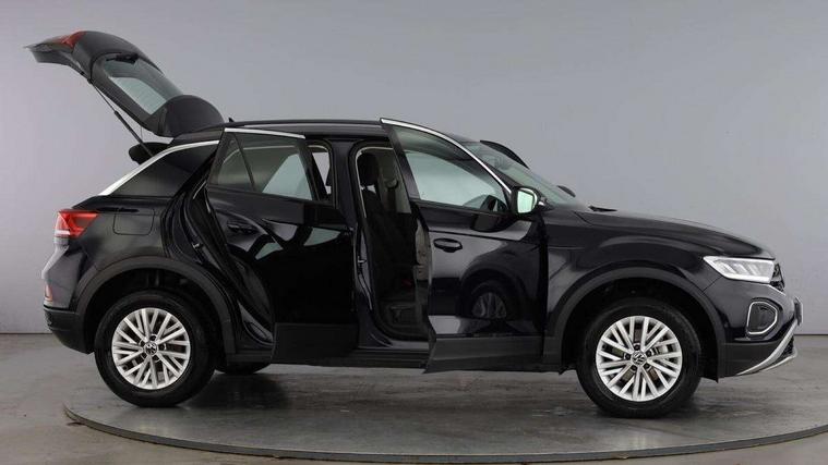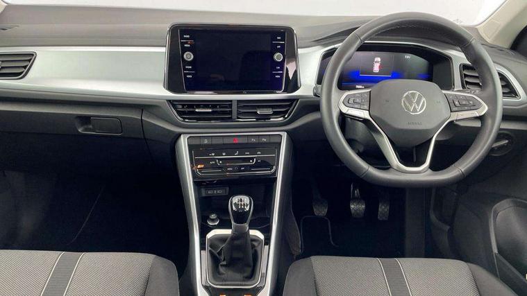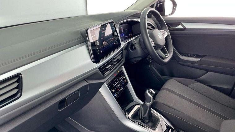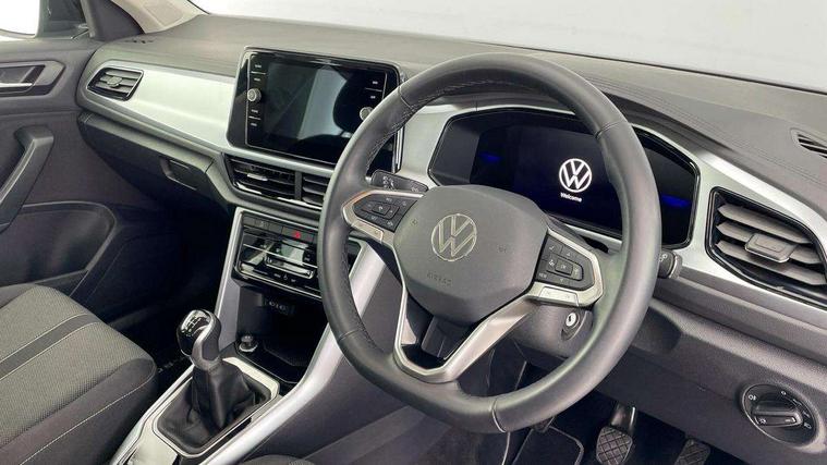 Advanced driver attention and drowsiness monitor, Dynamic road sign display, Emergency call service, Lane keeping system Lane Assist, Mobile phone interface, Modified key software - reduce switch off time for key status change to Long no motion, Online services, Park assist including front and rear parking sensors, Power assisted speed sensitive steering, Service interval indicator, Tailgate/trunk lid release from outside, Think blue trainer driver tips and journey analysis, Warning sound and light for front seatbelts unfastened, Wireless app connect, Wireless Smartphone charger, Battery regeneration during braking, Front shock absorption, Rear shock absorption chassis with increased ride height, Start/stop function with battery regeneration, DAB Digital radio, Diversity antenna for FM reception, Front and rear 6 speakers, Music playback - MP3, WMA and AAC files, Premium USB cable in choice of either Apple or Android smartphone compatibility, SD card slot, Simultaneous pairing of 2 compatible mobile devices, Title and cover art display, We Connect and We Connect Plus functionality, Auto dimming interior rear view mirror, Automatic hazard lights activation under emergency braking, Automatic headlight control with LED separate daytime running lights with coming/leaving home function, Black roof rails, Body coloured bumpers and radiator grille with chrome trim and front fog lamps with chrome bezel, Body coloured exterior mirror housings and door handles, Electrically adjustable and heated door mirrors, Extended roof spoiler, Exterior mirrors aspherical on driver side, convex on front passenger side, External USB type C socket and charging sockets, Front windscreen wiper with intermittent wipe and 4 position delay, Heated rear window, LED 3rd brake light, LED rear combination lamps, LED rear number plate lights, Power windows with comfort operation and circuit breaker, Rain sensor, Rear exhaust tailpipe, Rear fog light on one side and reversing lights on both sides, Rear side wing doors, Rear wash/wipe with intermittent wipe setting, Remote electrically foldable door mirrors, puddle lights and reverse activated passenger's door mirror, 12V power socket in centre console, 3 rear head restraints, 3 seat bench in 2nd row, 4 load lashing points in luggage compartment, Air care climatronic air conditoning system with active combination filter and 2-zone temperature control, Ambient lighting with mirror logo projection, Cloth upholstery, Door and side trim panel in cloth, Drawer under drivers seat, Driver/front passenger seat height adjustment, Front centre armrest, Front comfort sports seats, Front cupholders x 2, Front reading light, Front seat back storage pockets, Glove compartment door with light, Instrument lighting, white adjustable panel illumination, Interior light delay, Isofix child seat preparation, Leather gearshift handle, Load-through provision with cup holder when folded down ('Unsplit rear seat bench, split folding backrest, with centre armrest), Luggage compartment lighting, Lumbar support for driver's and front passengers seat, Non-folding front passenger seat backrest, Single front passenger seat, Storage compartment in left and right luggage area, Storage compartment in rear doors, Storage compartments in driver and front passenger doors, Sunvisors with illuminated vanity mirrors, Variable boot floor, height adjustable and removable, Driver assistance pack without proactive passenger protection - T-Roc Life/Match, 3 point height adj front seatbelts + pretensioners, 3 point seatbelts in outer rear with ECE label, ABS, Child locks on rear doors, City emergency braking and pedestrian monitoring, Driver and front passenger airbag with front passenger airbag deactivation, Driver and front passenger safety-optimised head restraints, Drivers seatbelt reminder, Electronic parking brake, Electronic Stability Control (ESC) inc EDL (Electronic Differential Lock) and ASR (Traction Control), Front and rear passengers curtain airbag system including front side airbags, Front disc brakes, Hill start assist, Predictive pedestrian protection, Rear disc brakes, Two tone horn, Tyre pressure loss indicator, Volkswagen roadside assistance, Alarm with interior protection, Pewter matt decorative inserts for intrument panel, centre console and door panels at the front, Trims for alloy wheels,