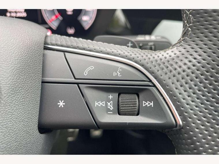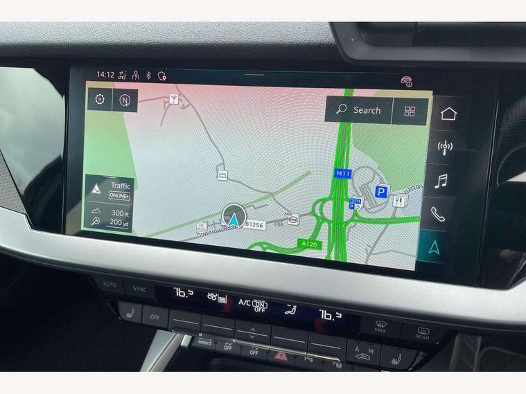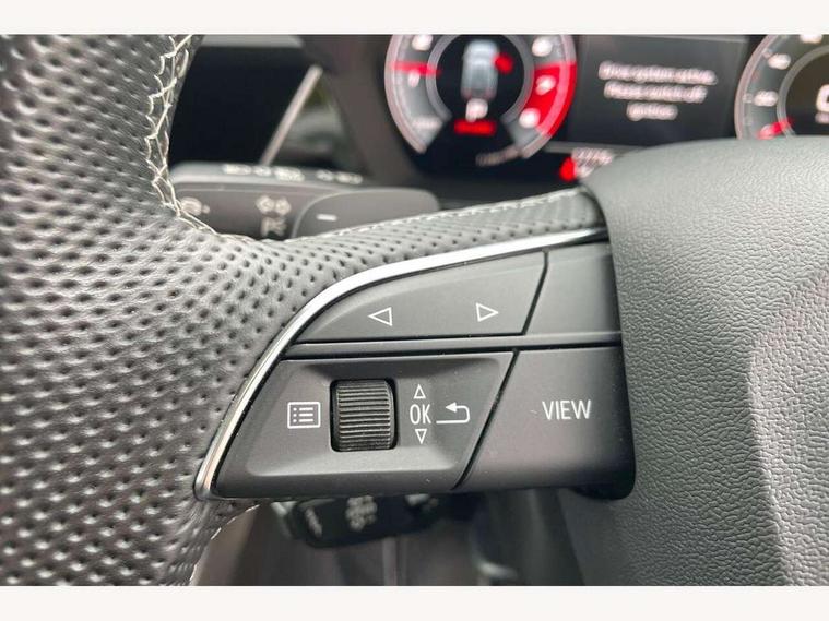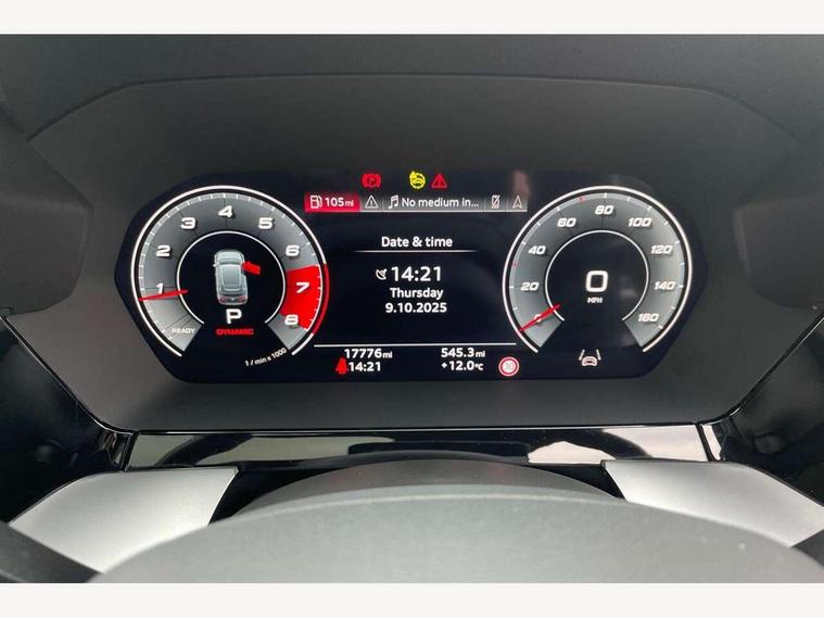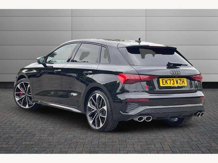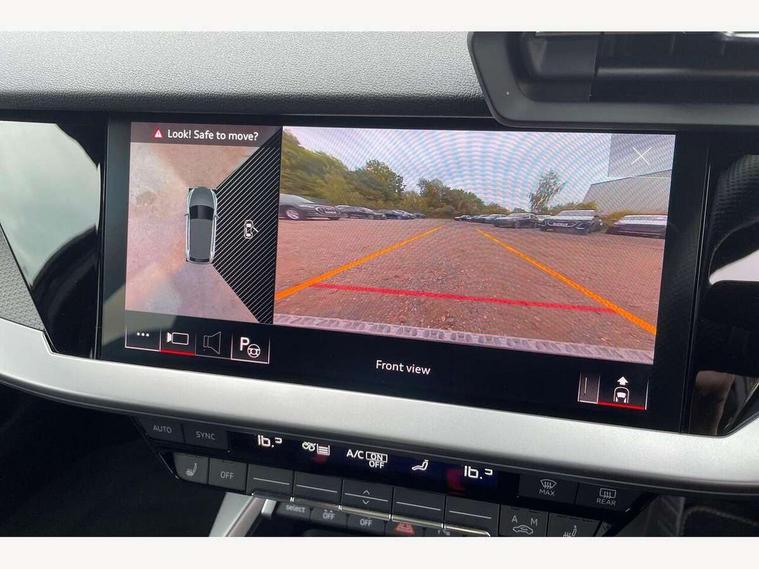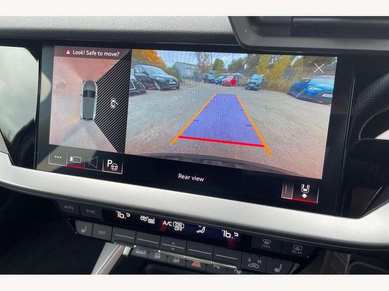 Adaptive cruise assist, Audi drive select (Auto, Comfort, Dynamic, Efficiency and Individual), Audi smartphone interface, Audi virtual cockpit plus - 12.3" full HD resolution dynamic digital instrument cluster, Automatic start/stop system with recuperation, Bluetooth interface, Collision avoidance assistant, e-Call (emergency call), Head up Display, Lane change assistant with exit warning system and rear cross traffic alert, Lane departure warning system, MMI Navigation Plus with high resolution 10.1" colour touch screen display, Power operated tailgate - Luggage compartment lid opens/closes electrically, Progressive steering, Service indicator, Trip computer, Voice control system with natural language interaction, Quattro permanent all wheel drive, S suspension with damper control, 2xUSB-C connection with data and charging functions, DAB Digital radio, 3rd brake light, Acoustic glass windscreen, Audi Beam uses LEDs to project Vorsprung onto the ground as you exit your S3, Auto dimming frameless rear view mirror, Carbon door mirror housings, Dual branch oval twin tailpipes in chrome plated finish, Electrically adj heated/folding + automatically dimming exterior mirrors with memory + automatic kerb side function for passenger side exterior mirror, Front electric windows, Headlight washers, Heat insulating glass windscreen, Illuminated door sills with aluminium inserts at the front with S logo, Integrated LED indicators in door mirrors, LED daytime running lights, Light and rain sensors, Privacy glass - dark tinted rear window, rear door and side windows, Rear electric windows, Rear side air outlets in grained matt black, Rear side wing doors, Rear wiper, 12V socket and storage compartment in front centre console, 3 seat bench in 2nd row, 3 spoke leather multifunction steering wheel with gear shift paddles, 4 way electrically adjustable lumbar support for driver and front passenger, 60/40 split folding rear seat bench, Black cloth headlining, Dual zone electronic climate control, Fine Nappa leather upholstery with front sports seats S embossed logo, Front and rear centre armrest in artificial leather, Front and rear headrests, Front/rear floor mats, Height and reach adjustable steering wheel, Interior lighting - glove compartment light and right hand side, Luggage compartment floor covering, Seat side bolsters, Single front passenger seat, Stainless steel pedals and front footrest in black, Aluminium interior elements pack - A3 Sportback, Black styling pack - A3 Sportback/S3, Body styling design pack - S3, Extended ambient lighting pack - A3 Sportback, Storage pack - A3 Sportback, Technology pack pro with 360 camera - A3 Sportback/Voursprung, 3x3 point rear seat belts, Driver and front passenger airbag with passenger airbag deactivation, Electronic Stabilisation Control (ESC) including ABS, ASR and EDL, First aid kit with warning triangle and 2 safety vests, Front side airbags with head airbags and interaction airbag, Pre-sense front with pedestrian and cyclist detection, Seatbelt monitoring, Tyre pressure loss indicator, Anti theft alarm, Anti-theft wheel bolts, Electronically operated child locks, Immobiliser, Remote control central locking, Carbon inlays, accent surfaces in the dashboard and centre console in platinum grey silk effect paint finish,