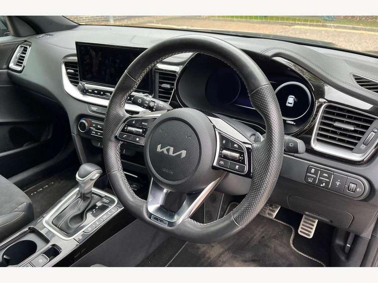 10.25" touchscreen satellite navigation with telematics, 12.3" TFT supervision cluster display, Android auto with voice control, Apple car play with voice control, Blind spot collision warning, Bluetooth with Voice Recognition & Music Streaming, Drive mode selector, Driver attention warning, Emergency call service, Forward Collision-Avoidance Assist (FCA) - City/Pedestrian/Cyclist, Intelligent speed limit warning, Lane Following Assist (LFA), Lane keep assist, Motor driven power steering, Rear cross-collision assist, Reversing camera with dynamic guide lines, Smart cruise control with stop and go functionality, Smart park assist system (SPAS) with parallel/perpendicular/reverse with front/rear parking sensors, Smart power tailgate, Trip computer, Wireless Mobile Phone Charger, Intelligent Stop and Go, 1x Rear USB-C, 2x Front USB (1x USB-C, 1x USB-A), DAB Radio with MP3, JBL Premium sound system with 8 speakers, Rear console USB C-type charge port, Steering wheel mounted controls, All-round Electric Windows with Auto Up & Down Function, Auto dimming rear view mirror, Automatic defog system, Automatic headlights, Black side sill mouldings with body coloured inserts, Black wheel arch trim, Body colour bumpers, Body colour exterior door handles, Body colour rear spoiler, Body coloured and dark chrome rear skid plate, Dark chrome window surround, Electrically folding, adjustable and heated door mirrors with integrated LED indicator lights, Gloss black shark fin antenna, GT-Line body kit, Heated rear window with timer, High beam assist, High gloss black door mirrors with matt black lower housing, High gloss black roof rails, High glossy black and dark chrome radiator grille, LED Bi-Function projection headlights, LED daytime running lights, LED front fog lights, LED High-mounted Brake Light, LED honeycomb rear light, LED rear fog light, Panoramic sunroof with tilt/slide function and automatic electric roll blinds, Privacy glass - Rear windows and tailgate, Rain sensing front wipers, Rear side wing doors, Rear wiper, Smaller XCeed badge on rear left hand tailgate, Tinted glass, Variable front intermittent wipers, Wide view drivers door mirror, Windscreen Washer Level Warning, 3 seat bench in 2nd row, 40:20:40 split folding rear bench seat, All-round height adjustable headrests, Aluminium pedals, Centre Console with Storage Box and Sliding Armrest, Chrome interior door handles, Cupholders in centre console, Driver + front passenger electric lumbar support, Driver and passenger front seat pockets, Driver seat memory function, Driver seat power height adjuster, Dual zone automatic air conditioning, Faux leather door trim, Front and luggage area 12V power sockets, Front and rear door storage, Front cabin LED map light with sunglasses case, Front Passenger Seat Height Adjuster, Heated front seats, Heated outer rear seats, Heated steering wheel, Illuminated driver and front passenger sunvisors with vanity mirror, ISOFIX Child seat top tethers and anchor fixings, Leather D cut steering wheel, Leather steering wheel and faux leather gearshift, Leather/suede upholstery, Luggage area light, Luggage area parcel shelf, Luggage hooks, Rear cabin light, Rear centre armrest with cupholders, Single front passenger seat, Tilt/telescopic adjustable steering wheel, Towing pack - XCeed, ABS with Electronic Brakeforce Distribution (EBD) and Brake Assist System (BAS), All round 3-point seatbelts, Dual horn, Electronic parking brake, Electronic stability control (ESC) and vehicle stability management (VSM), Front passenger airbag cut off switch, Height adjustable front seatbelts, Hill start assist control (HAC), Impact sensing auto door unlocking, Rear door child safety locks, Seatbelt reminder warning, Traction control, Twin curtain airbags, Twin front airbags, Twin front side airbags, Tyre pressure monitoring system, Alarm system, Engine Immobiliser & Deadlocks, Locking wheel nuts, Smart key with engine start/stop button, 18" GT-Line alloy wheels, Tyre mobility kit,