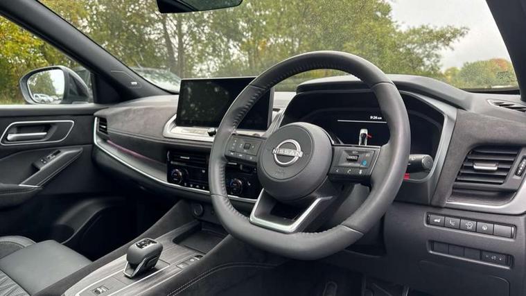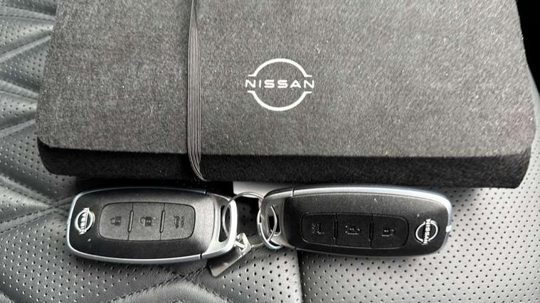 2 front USB-C ports, 2 rear USB-C ports, 360 degree Intelligent around view monitor with moving object detection, Advanced windscreen head up display, Blind spot intervention, Blind spot warning, Drive assist custom mode, Drive modes (sport, normal, eco), Driver drowsiness and attention warning, Electric speed sensitive power steering, Emergency and breakdown call, Emergency lane keep assist, Emergency Stop Signal (ESS), Engine start/stop button, Event data recorder, Front and rear parking sensors, Full Digital 12.3" TFT Digital Combimeter, Google virtual personal assistance, Hands free power tailgate, Idle stop/start system, In-car WIFI hotspot, Intelligent Cruise control (ICC), Intelligent forward collision warning, Intelligent speed assist, Lane departure warning system, Nissan connect 12.3 inch touchscreen infotainment system, Nissan connect navigation with google maps, Nissan connect services 2.0 (Google Automotive System), Outside temperature sensor, Rear cross traffic alert, Reversing detection, Traffic jam pilot, Wireless Apple CarPlay/Android Auto, Wireless charging pad, Limited slip differential, Multi link suspension, 10 Bose speakers - 2 tweeters, 6 high and medium frequency door speakers and 2 in subwoofer, AM/FM audio system with DAB, Bluetooth audio streaming, Bose acoustimass bass box, Auto dimming frameless rear view mirror, Auto rear wiper when reversing, Body colour mirror caps, Body coloured bumpers, Body coloured door handles, Bodyside mouldings, Chrome side window finisher, Electric auto folding door mirrors, Electrically adjustable and heated door mirrors with LED turn indicator, Follow me home headlights, Glossy black bumper inserts and fenders, High beam assist, Intelligent auto headlights, LED 3rd brake light, LED daytime running lights, LED headlights with adaptive driving beam, LED rear lights, LED sequential turn lights, One touch front and rear electric windows with remote opening and closing, One touch passenger window, Rear privacy glass, Rear roof spoiler, Rear side wing doors, Rear styling plate, Reverse tilting door mirrors, Shark fin antenna, Silver roof rails, Splash free rain sensing wipers, Super RED rear LED lights, Super UV and infrared cut glass, Thermaclear heated windscreen, 3 bench rear seats in 2nd row, 3 rear headrests, 60/40 split folding rear seat bench, Chrome interior door handles, Dark headlining, Driver seat back pocket, Dual zone automatic climate control with pollen filter, Fixed Glass roof with electric sunshade, Front door with bottle holders, Heated front seats, Heated steering wheel, Height adjustable front headrests, Luggage board system, Luggage space lighting, Multifunction steering wheel, Passenger seat back pocket, Quilted premium leather upholstery, Rear door bottle holders, RGB ambient light (Full area coverage), Single front passenger seat, Smooth leather steering wheel, Steering wheel gearshift paddles, Tilt/telescopic adjustable steering wheel, Two rear isofix child seat anchorage points with top tether, 3x3 point rear seatbelt pretensioners + load limiters, Autonomous emergency braking, Child locks on rear doors, Curtain and front side, far side airbags, Driver and passenger airbags, Driver, passenger and 2nd row rear seat belt reminder, Electric handbrake with auto hold function, Front seatbelt pretensioners + load limiters, Height adjustable front seatbelts, Hill start assist, intelligent front emergency braking, Rear automatic braking, Tyre pressure monitoring system, Vehicle dynamic control, Engine immobiliser, Intelligent key with walk away lock and approach unlock functions, Remote central door locking with deadlocking, Thatcham alarm, 20" Diamond cut alloy wheels, Tyre puncture repair kit,