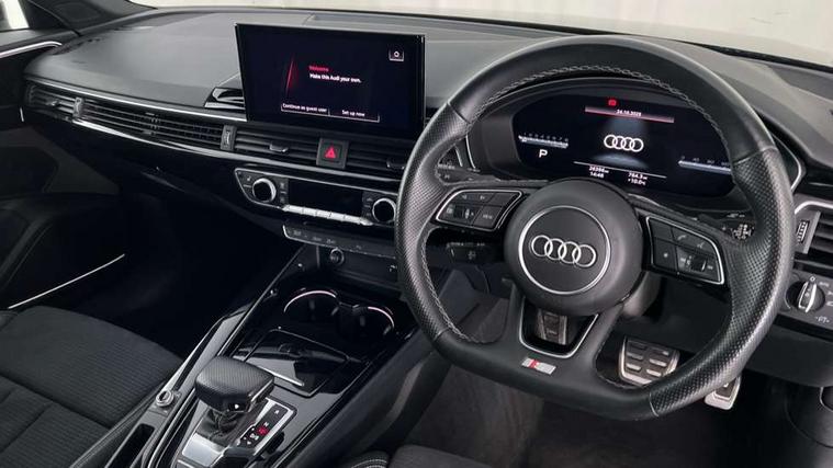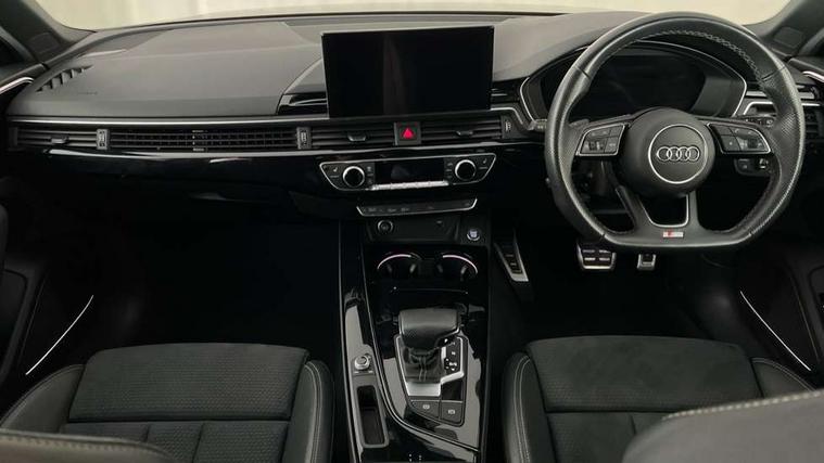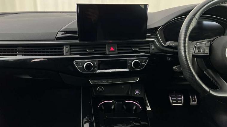 Audi connect safety and service (e-call), Audi connect with Amazon Alexa Integration, Audi drive select, Audi parking system plus with front and rear sensors, Audi smartphone interface, Audi virtual cockpit, Automatic start-stop system with coasting functionality and efficiency programme, Bluetooth interface, Electromechanical power steering, Email, calendar and text messages displayed via MMI, MMI Navigation plus with MMI touch includes 10.1" high resolution colour MMI display, 3D map, Power operated tailgate, Rear view camera, Voice control system, 54 litre fuel tank, Sports suspension lowered by 23mm, 2 USB charging ports, 8 passive loudspeakers, DAB digital radio reception, Auto dimming rear view mirror, Black Audi rings and black badging (model name in black badging, no engine badging), Black audi rings decal above rear sills, Body colour door handles, Body colour front spoiler lip, Body colour side sill trim, Electrically folding auto dimming/adjustable/heated door mirrors with LED side indicators and kerb view function for passenger side, Front and rear bumpers with side skirts, Front wing badges, Grained matt black side air inlets with matt aluminium silver inlay, High beam assistant, High gloss black B pillar trims and triangular rear door trim, LED headlights with LED rear lights + dynamic rear indicators + headlight adjustment and high beam, turning light + LED daytime running lights, LED third brake light, Matt aluminium silver tailpipe trim, Privacy glass, Rain and light sensors, Rear diffuser in matt titanium black with trim strip in matt aluminium silver, Rear side wing doors, RS4 rear spoiler in body colour, S Line roof edge spoiler, Variable intermittent front wash/wipe, Windscreen with acoustic glazing, 4 way electric lumbar support for driver and front passenger, 40/20/40 split folding 3 rear seat bench in 3 parts with rear centre armrest, Black cloth headlining, Black perforated leather gearknob, Contrast stitching on seats, steering wheel and gear lever gaiter, Deluxe 3 zone electronic climate control, Door sill trims with aluminium inlay, Electric load area cover, Front and rear head restraints, Front centre armrest, Heated front seats, Illuminated door sill trims with S logo, ISOFIX child seat mounting and top tether, Manual seat adjustment, Single front passenger seat, Stainless steel pedals and foot rest, Black styling pack - A4 Avant, LED Interior light pack - A4/S4, 3 rear seatbelts, 6 airbags - Driver, front passenger, curtain and side windows, Electronic Stabilisation Control (ESC) including ABS, ASR and EDL, Hill hold assist, Multi collision brake assist, Pop-up bonnet for pedestrian protection, Pre sense city, Seatbelt monitoring, Warning triangle and first aid kit, Anti theft alarm, Anti theft wheel bolts, Central locking, Keyless Go, Piano black finish inlay, Tool kit, Tyre repair kit,