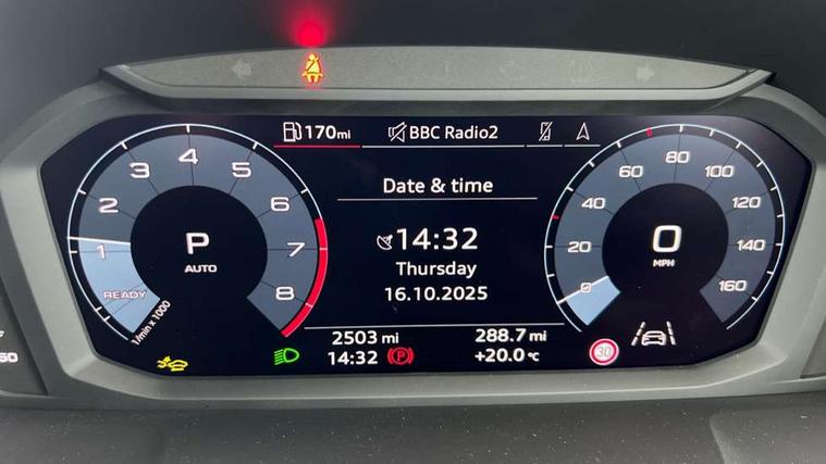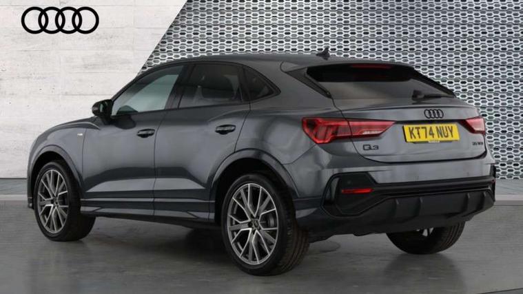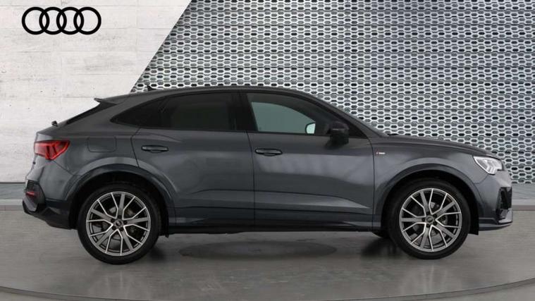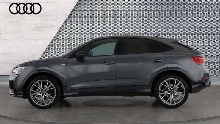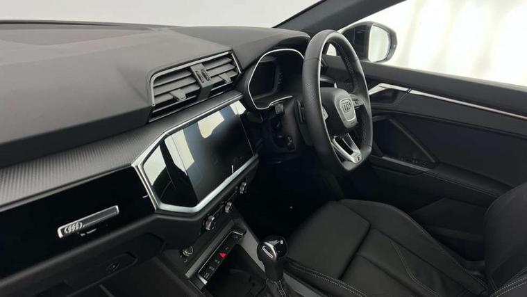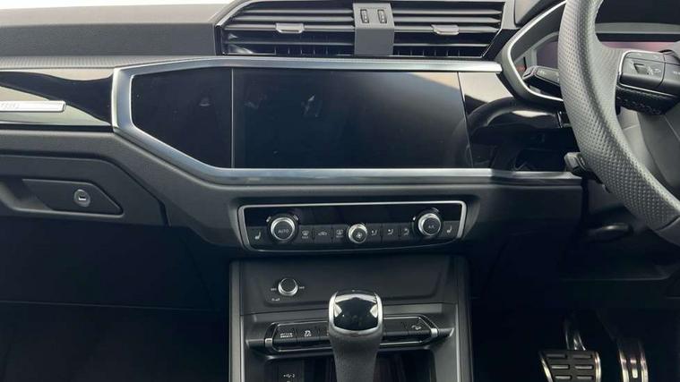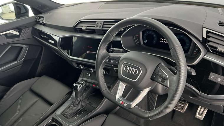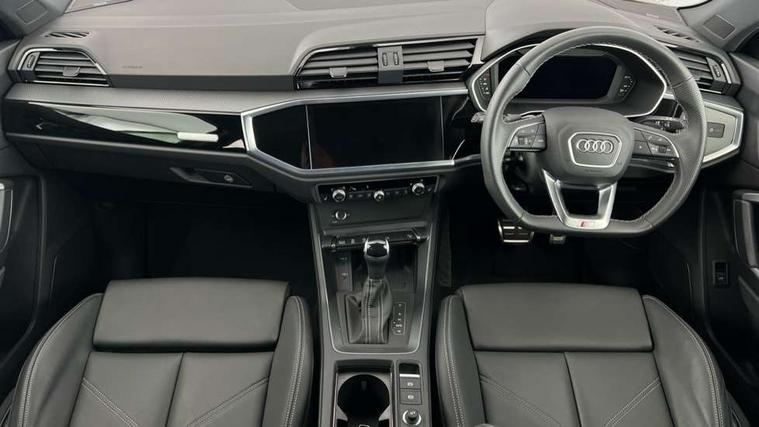 Audi connect safety and service, Audi drive select, Audi lane departure warning, Audi Virtual Cockpit - 10.25" display, Bluetooth interface, Camera based traffic sign recognition, Distraction and Fatigue warning, Legal emergency call, MMI Navigation Plus with high resolution 10.1 inch touchscreen colour display, Power operated tailgate, Progressive steering, Service interval indicator, Smartphone interface includes wireless Apple carplay/Android Auto, Start stop system with recuperation, Voice control system with natural language interaction, Sports suspension, 2 USB-C ports with charge and data functions, 6 passive loudspeakers, DAB digital radio module, Acoustic windscreen, Audi Beam uses LEDs to project the Audi logo onto the ground as you exit your Q3, Auto dimming door mirrors, Auto dimming frameless rear view mirror, Diffuser grille in grained matt black, Diffuser trim in selenite silver, Electrically folding, adjustable and heated door mirrors with integrated LED side indicators and kerb view function for passenger side, Front and rear electric windows, Front fog lights, Front underbody protection in manhattan grey paint finish, High gloss black finish B and C pillars, LED Dynamic rear indicators, LED headlights with LED daytime running lights, LED rear lights, LED third brake light, Privacy glass dark tinted rear and rear-side windows (from B-pillar backwards), Rain and light sensors, Rear side wing doors, Rear underbody protection in matt black, Rear wiper, S line front and rear bumpers and side skirts in contrasting Manhattan grey paint finish, Variable front intermittent wipers, 12V socket in rear centre console, 3 seat bench in 2nd row, 40:20:40 folding with manual adjustment for 60:40 forwards/backwards position and backrest angle, Adjustable rear seat bench/backrest with centre armrest and cupholder, Black cloth headlining, Dual zone electronic climate control, Electric lumbar support, Front and rear black floor mats with contrast stitching, Front and rear headrests, Front centre armrest, Height and reach adjustable steering wheel, Illuminated door sill trims with S logo, ISOFIX child seat mounting for front passenger with airbag deactivation and outer rear seat including top tether attachment point for outer rear seats, Luggage compartment sill protection in stainless steel, Manual front seats with height adjustment, Perforated leather gearknob, Single front passenger seat, Stainless steel pedals, Twin leather upholstery with front sport seats + S embossing, Black styling pack - Q3, Non smoking pack - Q3, 3x3 point rear seatbelts, 6 airbags - Driver, front passenger, curtain and side windows, Audi pre-sense front with pedestrain and cyclist recognition, Electrically operated child locks on rear doors, Electromechanical parking brake, Electronic stabilisation control including ABS, ASR and EDL, Front seatbelt reminder, Hill descent control, Hill hold assist, Pre sense basic, Seatbelt monitoring, Tyre pressure warning, Warning triangle and first aid kit, Anti theft alarm, Anti theft wheel bolts, Immobiliser, Remote central locking, Aluminium look interior elements, Detail dashboard around MMI touch colour display in glass look, black with surround in aluminium look, Leatherette door armrest, Piano black inlay,