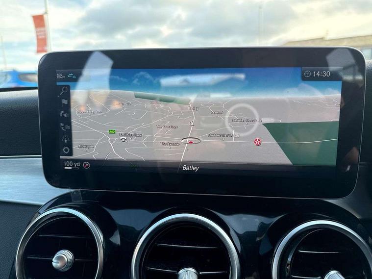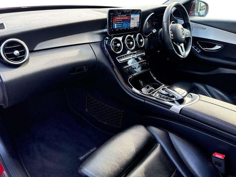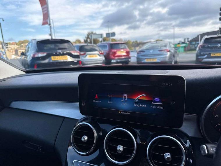 Active park assist with parktronic system, Attention assist, Collision prevention assist plus, Colour display - 10.25" colour display screen, Comand Online HDD Nav with media interface, radio/CD/DVD/MP3, 10.25 screen, linguatronic voice control, DYNAMIC SELECT with a choice of driving modes (ECO, Comfort, Sport, Sport+ and Individual), Instrument cluster with two tube design round dials and 5.5" TFT multifuction display, Mercedes connect me, Multi function trip computer, Outside temperature gauge, Remote boot release, Reversing camera, Service indicator (ASSYST PLUS), Smartphone integration with Apple CarPlay and Android auto, Wireless charging, Diesel particulate filter, 2 USB ports in centre console, Audio 20 with integrated media interface and bluetooth handsfree function, DAB Digital radio, Frontbass loudspeakers, Mid-range sound system with 7 speakers and 225W amplifier, SD card slot, Steering wheel mounted audio controls, Adaptive brake lights, Body coloured bumpers, Body coloured door mirrors, Electric windows one touch open/close, Electrically adjustable and heated door mirrors, Green tinted glass, Heated windscreen washers, High gloss black with aluminium door trims, LED Indicators, LED tail lights, LED third brake light, Multi beam LED headlights, Radiator grille with integral star and 2 louvres in matt iridium silver with chrome trim, Radio aerial integrated into rear window, Rain sensor windscreen wipers, Side windows surround in polished aluminium, 2 cupholders in front centre console, 3 spoke leather multi function steering wheel with silver chrome trim, 40:20:40 split folding rear seats, Auto Mercedes-Benz child seat recognition sensor, Black floor mats, Dual zone automatic climate control, Electric front seat height adjustment, Front and rear head restraints, Front centre armrest with storage compartment, Front door sills with Mercedes Benz lettering, Gearshift paddles on steering wheel, Heated front seats, Illuminated glovebox, Interior lighting - 64 colour Ambient lighting, Leather upholstery, Rear top tether child seat ISOFIX attachment, Sports seats, Sunvisors with illuminated vanity mirrors, Lighting pack - C class, Mirror pack - C Class, Seat comfort pack - C Class, Stowage space pack - C Class, 3 rear 3 point seatbelts, Active bonnet, Adaptive brake system, Black seat belts, Child proof door locks, Drivers knee airbag, Drivers pelvis airbag, Dual stage driver/passenger airbags, Electronic parking brake, ESP with ASR, Front passenger seat occupancy sensor, Front side airbags, Hill start assist, Rear seatbelt warning indicator, Tyre pressure monitoring system, Warning triangle and first aid kit, Window airbags, Alarm system/interior protection/immobiliser, Central locking with interior switch, automatic locking and crash sensor with emergency opening function, Chrome surround electric key, 18" 5 twin spoke aero alloy wheel in silver, Tyre inflation kit,