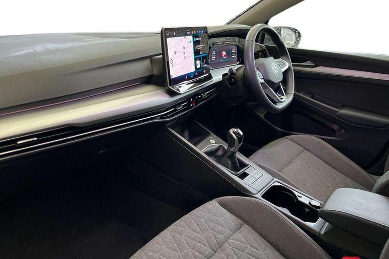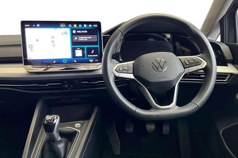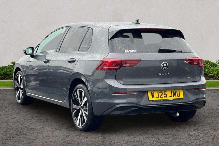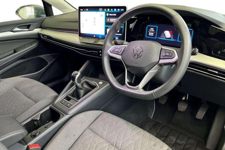 Activated carbon canister, Adaptive cruise control (ACC), Advanced driver attention and drowsiness monitor, Dynamic road sign display, E-Sim card for online connectivity, eCall emergency call system, Multi-color Digital cockpit pro, selection of different info profile possible, Multifunction front facing camera for distance control, Navigation system, Oncoming vehicle braking when turning including swerve support, Preparation for light assist system, Speed limiter, Speedo, rev counter, electronic odometer, trip, service interval display, exterior temperature and fuel gauge, Voice enhancer and voice control, Warning signal and warning light for front and rear seatbelts not fastened, We connect plus preparation, We connect preparation, Wireless app connect, Petrol Particulate Filter, Start-stop system with battery regeneration (recuperation - energy recovery during braking), XDS electronic differential lock for improved traction and handling, 2 USB C ports in front, 2 USB charging sockets on the centre console in the rear charging capacity upto 45W, Comfort telephony + wireless charging, without wireless aerial connection, Digital radio reception (DAB), Diversity antenna for FM reception, Gaming platform via car app, Infotainment system with 12.9" display, Mobile phone interface with inductive charging feature, 3rd brake light, Auto dimming rear view mirror, Auto headlights, Automatic headlamp activation with Coming home and Leaving home feature, Body colour door handles, Body colour door mirrors, Exterior ambient lighting with illuminated door handles, Exterior mirrors convex on the left and aspherical on the right, Front and rear electric windows, Heat insulating windshield made of laminated glass, LED daytime running lights, Rain sensor, Rear exhaust tailpipe, Rear fog light on one side and reversing lights on both sides, Rear side wing doors, Rear tinted glass 65% light absorbing from B pillar backwards, Rear windscreen washer and wiper with interval delay, Remote electrically foldable door mirrors, puddle lights and reverse activated passenger's door mirror, Standard bumpers, Welcome light with surround lighting, 12V socket in front centre console, 12V socket in luggage compartment, 3 rear head restraints, 3 seat bench in 2nd row, Chrome plated radiator grille inserts, air vent surrounds and light switch surrounds, Front centre armrest, Front head restraints, ISOFIX anchors for child seats on outer rear bench seats and on front passanger seat compatible for i-Size, Leather gearshift handle, Luggage compartment lighting, Rear cupholder and loadthough, Single front passenger seat, Soul black instrument panel, Split folding backrest with centre armrest and unsplit rear seat bench, Standard pedal cluster, Storm grey roof lining, Sun visors with illuminated vanity mirrors, Parking and comfort pack - Golf Estate/Hatchback, 3 point height adj front seatbelts + pretensioners, 3 rear three point seatbelts, ABS, Autonomous emergency braking front assist with pedestrian and cyclist monitoring, Child locks on rear doors, Driver and front passenger airbag with front passenger airbag deactivation, Electronic parking brake with auto hold, ESC (Electronic Stability Control), Extended pedestrian protection measures, Rear disc brakes, Two tone horn, Tyre pressure loss indicator, Volkswagen roadside assistance, Alarm with interior protection, Anti theft wheel bolts, Keyless start with SAFE lock, Preparation for alcohol interlock, Nature cross brushed decorative inserts for dashboard and front door panels,