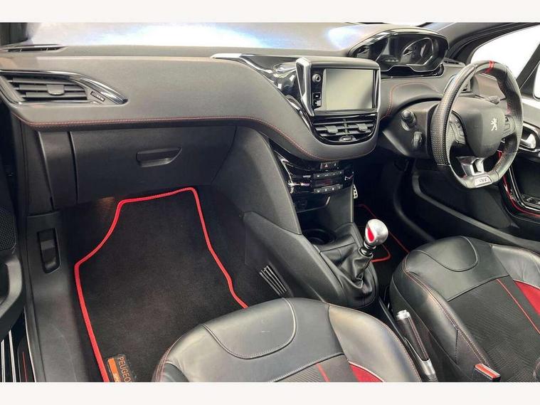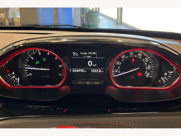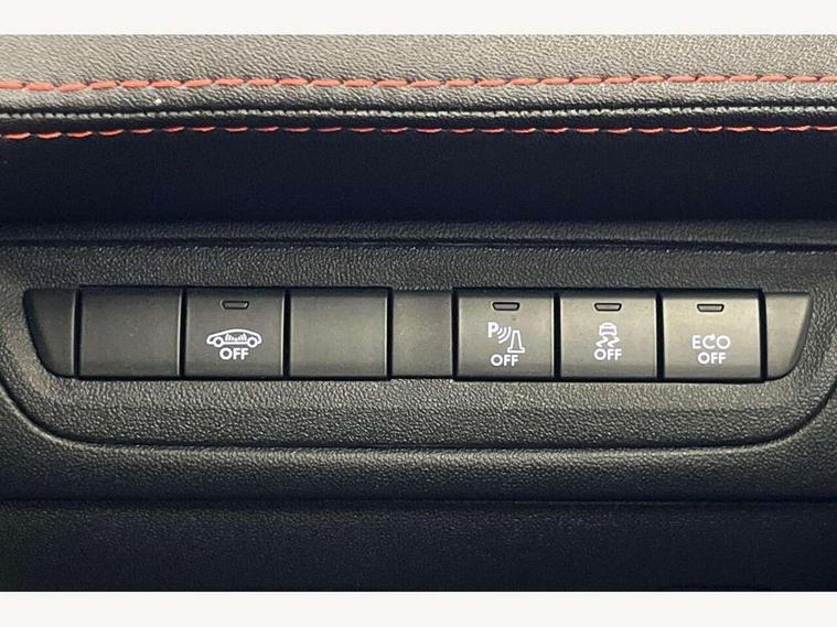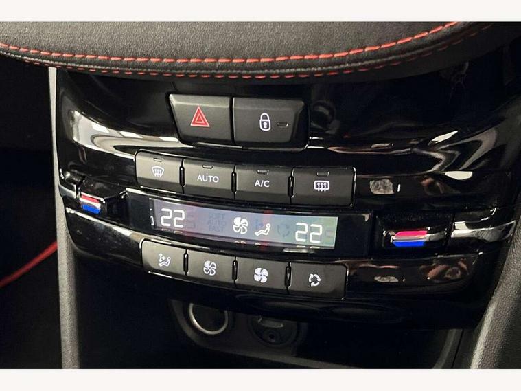 3D connected navigation + voice control + Peugeot connect SOS and assistance, Android Auto, Bluetooth system, Cruise control + speed limiter, EPAS, External temperature gauge, Mirror screen with mirror link and car play, Rear parking aid, Service interval indicator, Touch screen display, Trip computer, 4 speakers + 2 tweeters, Auxiliary input socket, DAB Digital radio, Steering wheel mounted remote controls, USB socket, Automatic activation of hazard warning lights, Black grille surround, Body colour door handles, Body coloured bumpers, Body coloured wheel arch extensions, Chrome door mirrors, Cornering front fog lights, Electric folding door mirrors, Electric front windows + drivers one touch, Electric operated/heated door mirrors, Follow me home headlights, Intermittent rear wash/wipe, LED daytime running lights, LED rear lights, Panoramic glass roof with sunblind, Rear sports spoiler, Tinted rear windows, Twin chrome exhaust tailpipes, 1/3 to 2/3 split folding rear seats, 3 rear head restraints, Aluminium door sill trims, Aluminium pedals, Ambient lighting, Auxilliary 12V power socket, Driver seat height adjust, Driver/passenger sunvisors and vanity mirrors, Dual zone automatic air conditioning, Front sports seats, Full grain leather/caro cloth upholstery, Heated seats, Height adjustable front headrests, ISOFIX on outer rear seats, Leather and chrome gear knob, Leather steering wheel, LED interior lights and illuminated footwells, Passenger seat height adjuster, Reach + rake adjustable steering column, Visibility pack - 208, 3 rear 3 point seatbelts, ABS/EBFD/EBA, Child safety lock, Driver and passenger airbags, ESP with Hill Assist, Front and rear curtain airbags, Front side airbags, Passenger airbag deactivation system, Seatbelt warning lamp and buzzer, Traction control, Tyre pressure sensor, Immobiliser, Remote central locking + deadlocks, Ultrasonic alarm, Contrast stitching - Red, 17" Carbone onyx black alloy wheels, Full size spare wheel,
