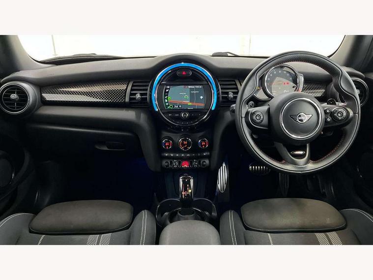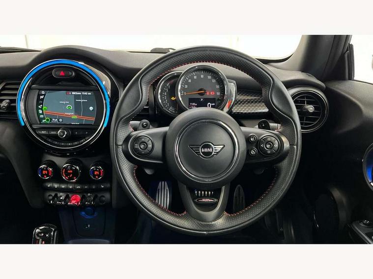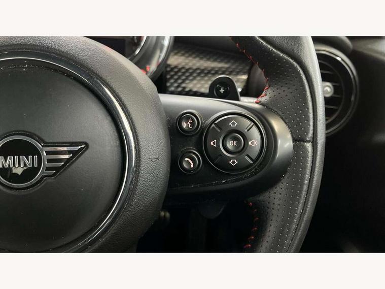 Automatic start/stop function with brake energy recuperation, Compatible mobile phone bluetooth with audio streaming, Electro-mechanical speed dependant steering assistance, Instrument cluster, Mini E-call, MINI TeleServices, On board computer, Service interval indicator, Double Vanos system, Fully variable valve control, High precision injection, Performance Control, Steptronic sport transmission with double clutch and steering wheel paddles, 6.5" touchscreen with LED ring, FM tuner and DAB digital radio, Automatic headlight activation switch, Bonnet scoop, Chrome border honeycomb structure radiator grille with S badge, Chrome plated fuel cap, Dynamic brake lights, Electric front+rear windows, Heated rear window, Heated windscreen washer jets, John Cooper Works - aerodynamic kit (front and rear apron, spoiler), front and rear sport bumpers and part-painted side sills with door sill finishers, John Cooper Works rear spoiler, LED headlight with closed ring and daytime driving lights, Metal door sill strips with Cooper S imprint, Model logo Cooper S on right of tailgate, Rain sensor window wipers, Rear fog lights, Rear LED lights with union jack design, Rear window wiper, Side scuttle panel with integrated indicator, Sun/heat protection glass, Two central exhaust tailpipes with chrome finisher, White indicator lenses, 12V Accessory socket in centre console, 4 lashing eyes in luggage compartment, 60/40 split folding rear seat, Anthracite headlining, Chrome interior highlights, Cupholders, Front and rear head restraints, Front and rear isofix with front passenger airbag deactivation, Glove compartment, Height and length steering column adjustment, Interior lighting with 12 basic colours selectable via toggle switch in roof, John Cooper Works leather steering wheel with contrasting stitching in Chilli Red with John Cooper Works logo, John Cooper Works Logo in seat, Leather gearshift lever and handbrake gaiters, LED reading lights, vanity mirror lights, front foot well light and spotlight on front seats, Manual air conditioning, Mechanical seat adjustment, driver seat height adjust, forward/back and front seats backrest, Mini logo projection on floor from drivers exterior mirror, Multifunction steering wheel, Storage compartments in doors, Storage pocket on back of front seats, Sunvisors with vanity mirrors, 3 point seatbelts on all four seats, 6 Airbags - front, side, head and seat belt tensioners, Anti-lock braking system (ABS), DSC - Dynamic Stability Control, Front and rear disc brakes, Hill start assist, Two tone horn, Tyre pressure monitoring system, Alarm system with tilt sensor, monitoring doors, bonnet interior and tailgate, Electronic vehicle immobiliser, Start/stop toggle with keyless go, Tool kit,