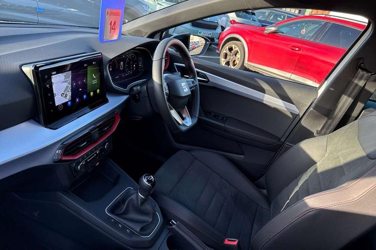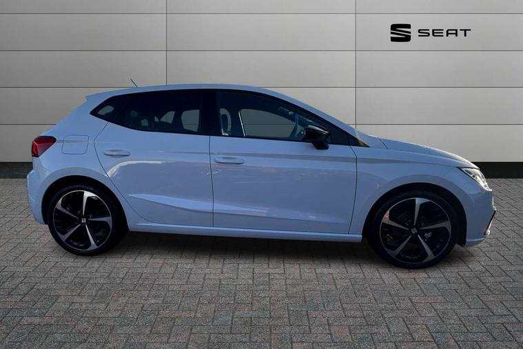 'Lights On' Reminder warning buzzer, 10" Digital cockpit, 9.2" touchscreen navigation system with type C USB socket, Voice control and DAB/AM/FM radio, Auto start and stop system, Bluetooth audio streaming with handsfree system, Digital clock, E-call, Full link smartphone integration with mirror link, wireless apple carplay, Google android auto + USB Type C cable for apple and android devices, Lane assist, Low fuel warning light, Outside temperature gauge, Power Steering, Rear parking sensor, Seat connect plus with safety, service, remote and online, SEAT logo boot release, Speed limiter, Traffic sign recognition, Trip computer, Sports suspension, 6 speakers, Auxiliary input socket, Radio/MP3 player, SD card slot, Steering wheel mounted controls, Anti theft roof antenna, Auto dimming rear view mirror, Automatic rain sensing wipers, Black door mirror caps, Body colour bumpers, Body colour door handles, Brilliant black window surrounds, Dark tinted rear windows, Electric adjustable/heated/folding door mirrors, Electric front windows, Electric headlight adjustment, Electric rear windows, Front/rear fog lights, FULL LED automatic headlights with dynamic headlight range control, coming and leaving home, LED daytime running lights, LED 3rd brake light, LED tail lights, Rear roof spoiler with FR twin exhausts, Rear side wing doors, Rear wiper, 3 seat bench in 2nd row, 60/40 split folding rear seat, Ambient interior lighting, Chrome detailing and black headlining, Comfort seats, Dual zone climate control with combination filter, Front courtesy lights, Front cupholders x 2, Front reading lights, Gear shift indicator, Glovebox, Height adjustable front and rear headrests (five), Height adjustable front seats, Height/reach adjust steering wheel, Illuminated air vent surrounds, Illuminated boot, Instrument lighting with brightness control, Isofix, Leather multifunction flat bottomed sports steering wheel, Microsuede cloth upholstery, Passenger sunvisor, Single front passenger seat, Storage pockets on back of front seats, Sunvisors with mirror and driver side card holder, Safety and driving pack (S) - Ibiza, 3 point seatbelts on all 3 rear seats, ABS, Active front headrests, Child locks on rear doors, Electronic stability control, Energy recovery system, Front driver and passenger side airbags with curtain airbag and front passenger airbag deactivation, Hill hold control, Multi-Collision braking, Seat belt reminder for front and rear seats, Tiredness recognition system, Tyre pressure monitoring system, Locking wheel bolts, Perimeter alarm and interior monitoring with backup horn and tow away protection, Remote central locking + deadlocks, 18" Performance machined alloy wheels in black and grey,