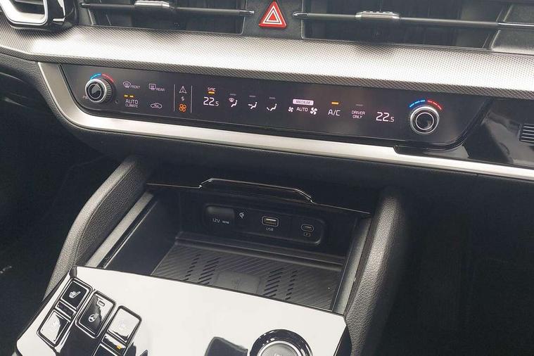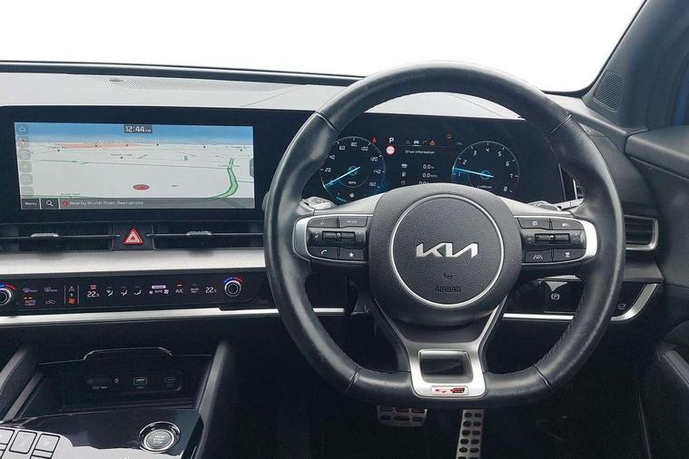 12.3" Display with navigation, 12.3" supervision colour cluster display, 360 degree around view monitor, Apple car play/Android Auto with voice control, Blind spot collision avoidance assist, Blind spot view monitor, Drive mode selector, E-call, Forward collision avoidance assist (FCA) - city/pedestrian/cyclist/junction covering, Front and rear parking sensors, Highway Driving Assist (HDA), Intelligent speed limit assist, Kia Connect (UVO), Lane Following Assist (LFA), Lane keep assist, Low washer fluid warning, Parking collision avoidance assist (PCA), Remote smart parking assist, Reversing camera system integrated into centre fascia screen, Smart cruise control with stop and go functionality, Smart power tailgate, Speed sensitive power steering, Trip computer, Windscreen washer level indicator, Wireless Smartphone charger, Intelligent Stop and Go, Bluetooth audio streaming, DAB Radio with MP3, Harman Kardon premium sound system, Rear USB port, Steering wheel mounted audio controls, USB C type charging ports on centre console, USB C type charging ports on side of front seats, USB port for connection of a media device, All round electric windows with drivers and front passenger auto up/down function, Automatic headlight control system, Automatic window defogger, Backlite glass heated with timer, Body colour and black bumper with silver accents, Body colour exterior door handles, Body colour radiator upper garnish and door garnish, Dual LED adaptive headlamps, Electric panoramic glass sunroof (Electric one touch with safety function), Electrically adjustable/heated/folding door mirrors with LED indicators, Front and rear chrome skid plates, Gloss black door mirrors, Gloss black radiator grille, Gloss black side sill and wheel arch body mouldings, Glossy black roof rack, High beam assist, Interior electrochromic mirror, LED daytime running lights, LED front fog lamps, LED High mounted stop light, LED rear combination lamp, Rain sensing wipers with aero blades, Rear fog lamp, Rear privacy glass, Rear side wing doors, Rear spoiler, Rear wiper, Satin finished beltline, Silver coloured inserts to bumpers, Tinted rear glass, Trailer stability assist, 10 way driver/8 way passenger electrically power adjustable seats, 12V power socket in front centre fascia and luggage compartment, 3 seat bench in 2nd row, 3 x passenger assist grips, 40/20/40 split folding rear seat, All-round height adjustable headrests, Ambient lighting, Black headlining, Centre console storage box, Cupholders in rear armrest, D-Shaped sports leather steering wheel and perforated inserts with GT-Line logo, Door courtesy lamps, Drink holder at centre armrest, Driver and front passenger side sunvisors with illuminated vanity mirrors, Driver seat memory function, Drivers seat power lumbar support, Front and rear door storage, Front seat and rear pockets, Front/rear centre armrests, Gear shift indicator, Glovebox illumination, Heated front and outer rear seats, Heated steering wheel, Interior door lock/unlock function, ISOFIX Child seat top tethers and anchor fixings outer rear seats, LED interior personal lamp, LED lighting in overhead console, Luggage area LED light, Luggage area load cover, Luggage net with hooks, Metal paint interior door handles, Paddle shift controls, Rear cabin light, Rear coat hooks, Single front passenger seat, Sports pedals, Suede leather upholstery, Three zone climate control, Tilt/telescopic adjustable steering wheel, Ventilated front seats, Ventilation ducts to rear compartment, Active front headrests, All round 3-point seatbelts, Anti-lock braking system (ABS), Dual front side airbags, Dual horn, Electronic parking brake, Electronic stability control with downhill brake control, Front passenger airbag cut-off switch, Front seatbelt pretensioners + load limiters, Height adjustable front seatbelts, Hill start assist control (HAC), Impact sensing auto door unlocking, Multi collision brake assist, Rear door child safety locks, Rear seat alert system, Traction control, Twin curtain airbags, Twin front airbags, Tyre pressure monitoring system, Advanced anti-theft system including immobiliser and alarm, Door deadlocks, Engine Start/Stop Button with Smart Entry System, Locking wheel nuts, Speed sensitive auto door locking, Visible vehicle identification number, Aluminium pattern finish centre fascia and door garnish, 18" GT-Line alloy wheels, Michelin tyres, Tyre mobility kit,