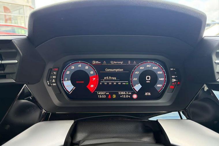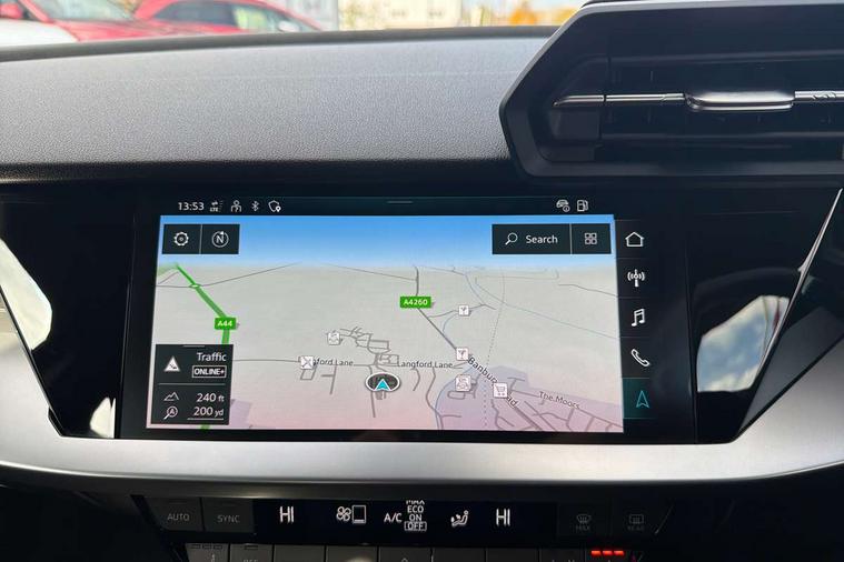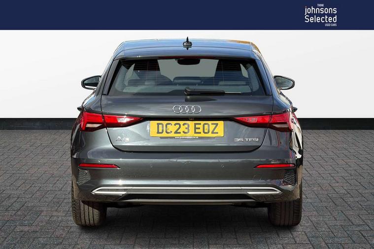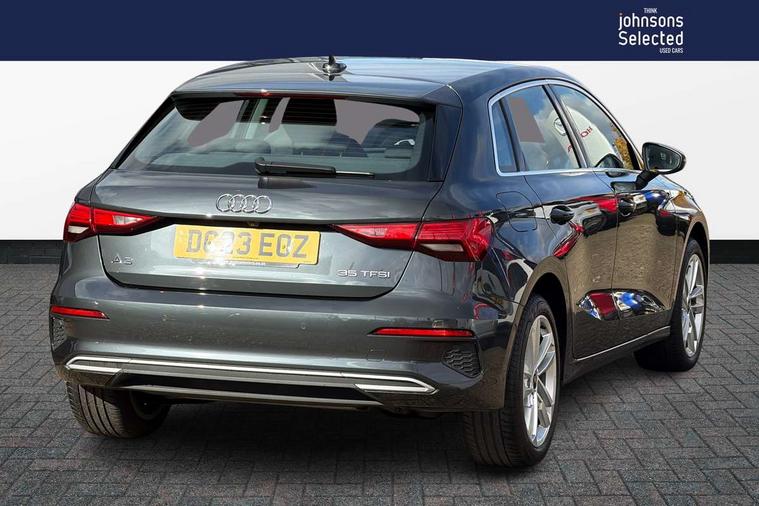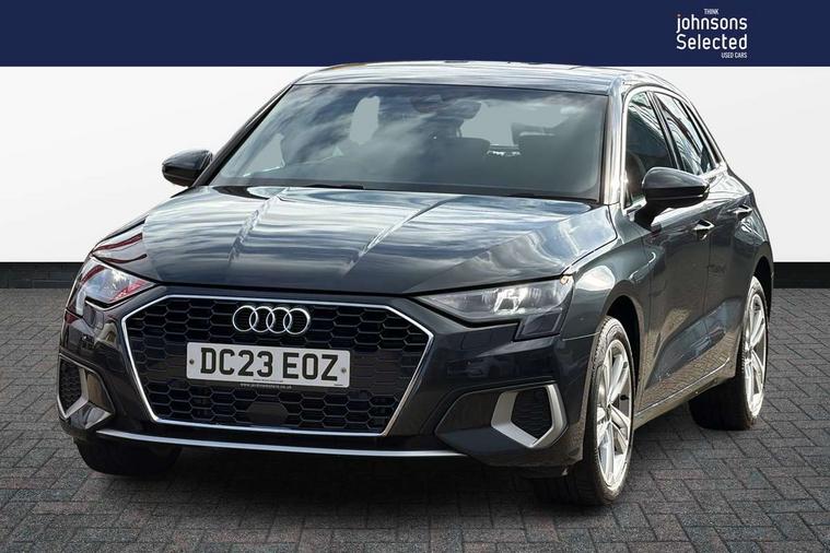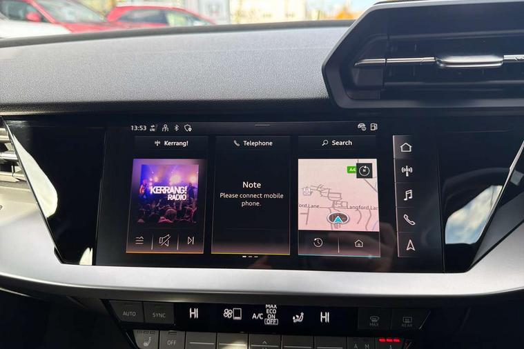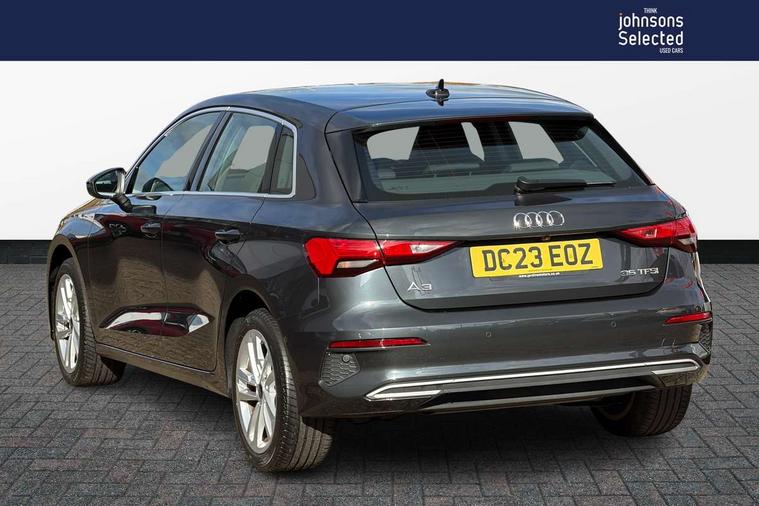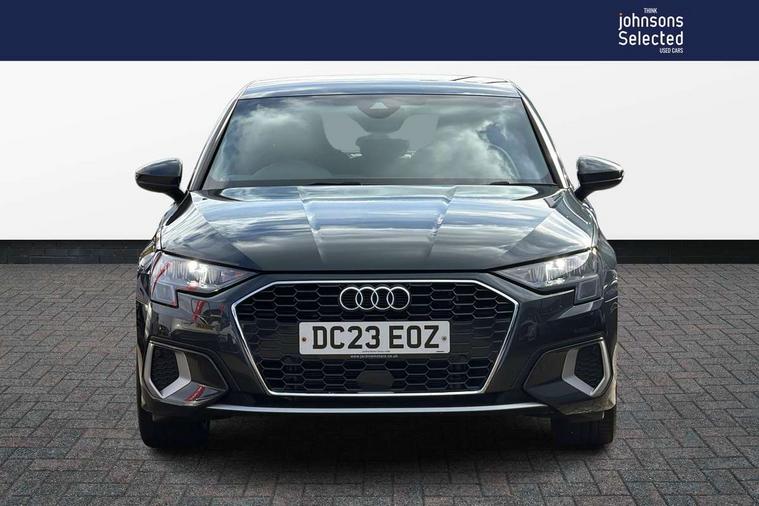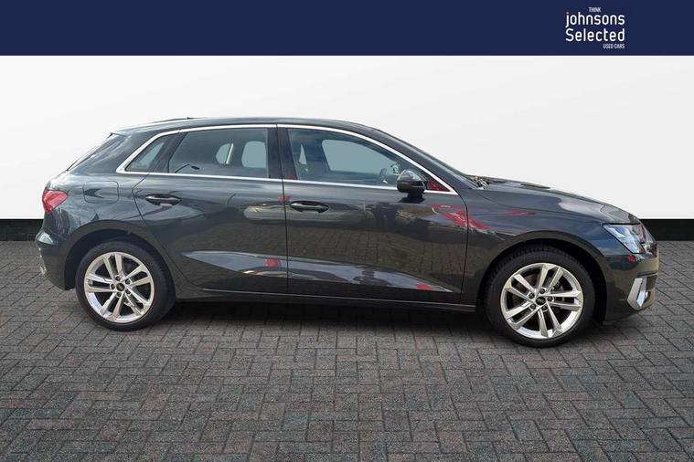 Audi drive select (Auto, Comfort, Dynamic, Efficiency and Individual), Audi smartphone interface, Audi Virtual Cockpit - 10.25" digital and colour instrument cluster, Automatic start/stop system with recuperation, Bluetooth interface, Camera based traffic sign recognition, Collision avoidance assistant, Cruise control, e-Call (emergency call), Electromechanical power speed sensitive steering, Lane departure warning system, MMI Navigation Plus with high resolution 10.1" colour touch screen display, Rear parking sensors, Service indicator, Trip computer, Voice control system with natural language interaction, Standard suspension, 2xUSB-C connection with data and charging functions, 6 passive loudspeakers, DAB Digital radio, 3rd brake light, Acoustic glass windscreen, Aluminium window trim, Auto dimming frameless rear view mirror, Body colour exterior mirrors, Body colour roof spoiler, Electrically adjustable/heated/folding/auto dimming door mirrors with integrated LED indications + kerb view function for passenger side, Front electric windows, LED daytime running lights, LED headlights and halogen rear lights, Light and rain sensors, Rear electric windows, Rear side wing doors, Rear window, rear door windows and rear side windows in clear glass, Rear wiper, 12V socket and storage compartment in front centre console, 3 seat bench in 2nd row, 3 spoke leather multifunction steering wheel, 4 way electrically adjustable lumbar support for driver and front passenger, 60/40 split folding rear seat bench, Dual zone electronic climate control, Front and rear headrests, Front centre armrest, Front door sill trims with aluminium inlay, Front/rear floor mats, Height and reach adjustable steering wheel, Interior lighting - Front and rear roof module including reading lights, glove compartment light and right hand side, Interior lighting - glove compartment light and right hand side, Luggage compartment floor covering, Manual boot compartment lid, Manually adjustable front seats, Routine cloth upholstery with front sports seats, Seat side bolsters, Single front passenger seat, Steel grey cloth headlining, Aluminium interior elements pack - A3 Sportback, LED interior lighting pack - A3 Sportback, Sport styling pack - A3 Sportback, 3x3 point rear seat belts, Driver and front passenger airbag with passenger airbag deactivation, Electronic Stabilisation Control (ESC) including ABS, ASR and EDL, First aid kit with warning triangle and 2 safety vests, Front side airbags with head airbags and interaction airbag, Pre-sense front with pedestrian and cyclist detection, Seatbelt monitoring, Tyre pressure loss indicator, Anti theft alarm, Anti-theft wheel bolts, Electronically operated child locks, Immobiliser, Remote control central locking, Inlays with silk effect paint in platinum grey,