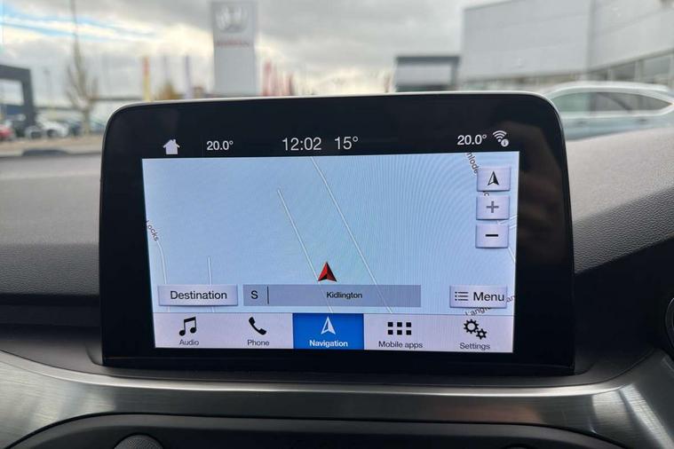 Bluetooth system, Digital clock, Easy fuel capless refuelling system, Eco mode, Ford pass connect, Ford SYNC 3 nav system with DAB radio, 8" colour touch screen, voice control, app link, Apple car play/Android auto and 4.2" TFT coloured cluster, Front and rear parking sensors, Intelligent speed assist, Lane keeping aid with lane departure warning, PAS, Selectable drive mode, Trip computer, 2 USB ports, Aux input, 'Quickclear' heated windscreen/heated washer jets, Auto dimming rear view mirror, Auto headlamps (on/off), Automatic rain sensing wipers, Body coloured bumpers, Body coloured door handles, Body coloured electrically operated and heated door mirrors with side indicators, Electrically operated front and rear windows with one touch opening and closing, Front fog lamps with cornering function, Front variable intermittent wipers with electric wash, Halogen reflector headlamps, Heated rear window, LED daytime running lamp, LED rear lamps, Power folding door mirrors with puddle lights, Tailgate wash/wipe, Upper grille with chrome surround and horizontal bars, 3 spoke leather trimmed steering wheel with integrated audio controls, 60/40 split back and cushion rear seats with 2 height adjustable headrests, Ambient lighting, Centre console with sliding front armrest, Cloth upholstery, Dual zone electronic air temperature control, Front/rear floor mats, Heated front seats, Height adjustable front headrests, Isofix child seat preparation, Leather gear knob, Reach + rake adjustable steering column, Rear centre headrest, ABS+Electronic Brake force Distribution, Auto hold function, Driver airbag, Electronic parking brake, Electronic stability control, Front and rear seatbelt reminder, Front inertia reel height adjustable seatbelts with pre-tensioners, Front passenger airbag, Front side airbags, Hill start assist, Passenger airbag deactivate switch, Post collision braking, Pre collision assist with autonomous emergency braking and pedestrian/cyclist detection, Side curtain airbags, Three rear inertia reel lap/diagonal seatbelts, Tyre pressure monitoring system, Ford keyfree system with Keyless entry and keyless start, MyKey system, Remote central locking & engine immobiliser, Thatcham category 1 alarm, 16" 15 spoke sparkle silver alloy wheels, Mini steel spare wheel,