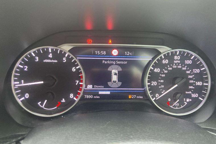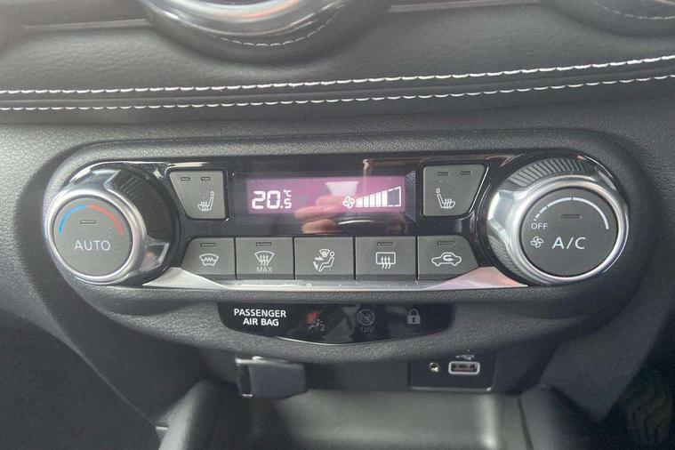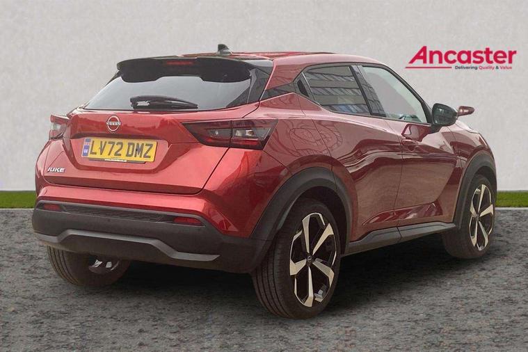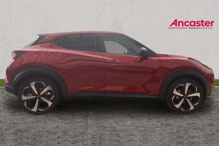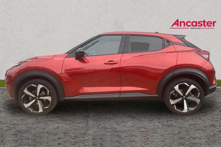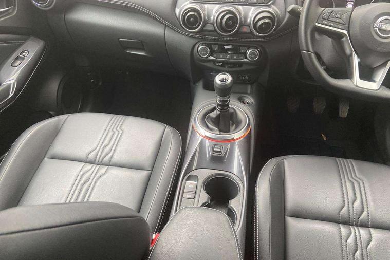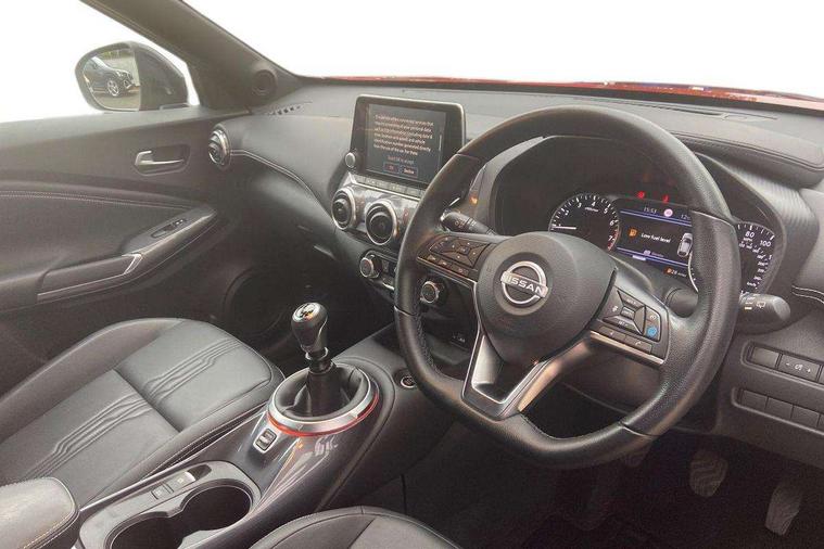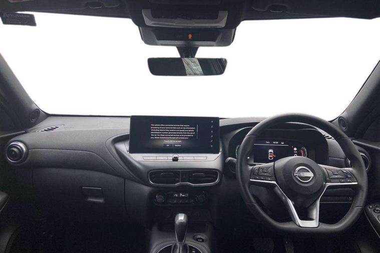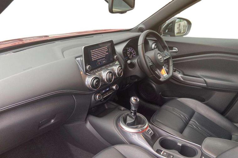 7" full colour TFT screen combimeter, Apple CarPlay and Google Android auto, Drive modes select (Eco, normal and sport), Emergency and breakdown call, Front parking sensor, Idle start/stop system, Intelligent lane intervention, Lane departure warning system, Nissan connect 8" touch screen entertainment system, Nissan connect nav with TomTom traffic, Nissan connect services and Wifi connection, Outside temperature sensor, Power Steering, Rear parking sensor, Traffic sign recognition, Trip computer, Voice recognition, Gasoline particulate filter, 10 Bose speakers 6 speakers and 2 headrest speakers for driver/passenger seats, Bluetooth system, USB, Aux-in and 12V socket, Bose personal sound stage control, DAB Digital radio, Rear console USB port, Auto dimming interior rear view mirror, Auto headlights, Automatic hazard signal with emergency stop signal, Body colour bumpers, Body colour door handles, Electrically adjustable door mirrors with integrated indicators, Follow me home headlights, Front and rear electric window with one touch driver window, Heated and auto folding door mirrors, High beam assist, LED daytime running lights, LED front fog lights, LED headlamps, LED rear fog lamp, LED rear lamps, Rain sensor windscreen wipers, Rear privacy glass, Rear side wing doors, Rear wiper, Thermaclear heated windscreen, Three blink turn signal, 3 height adjustable rear headrests, 3 seat bench in 2nd row, 60/40 split folding rear seat, Automatic climate control, Card holder on driver sunvisor, Door ambient lighting, Driver and passenger sliding and reclining seats, Driver seat back pocket, Driver side rear coat hanger, Driver/passenger sunvisors and vanity mirrors, Front and rear cabin lights, Front armrest, Front door pockets with bottle holders, Front head restraints, Front passenger isofix child seat anchorage point, Front/rear passenger grab handles, Gear console ambient circle lighting, Grey synthetic leather kneepad, Heated front seats, Height adjustable driver's seat, Height adjustable passenger seat, Internal chrome door handles, Leather gearshift knob, Leather steering wheel, Luggage board, Luggage space lighting, Monoform sporty seats, Multifunction steering wheel, Passenger seat back pocket, Rear door bottle holders, Single front passenger seat, Synthetic leather upholstery, Telescopic steering wheel adjustment, Two cupholders in front centre console, Two rear isofix child seat anchorage points with top tether, Welcome light and console tray ambient lighting, Advanced safety shield pack - Juke, ABS with EBD and brake assist, Active ride control, Active Trace Control, Driver and passenger airbags, Driver and passenger side airbags, Electric handbrake with auto hold function, Electronic Stability Programme (ESP), Front and rear curtain airbags, Height adjustable seatbelts, Hill start assist, Intelligent emergency braking with pedestrian and cyclist recognition, Rear door child safety locks, Seatbelt reminder for driver/front passenger and rear seats, Single tone horn, Three 3 point rear seatbelts, Traction control, Tyre pressure monitoring system, VDC Dynamic Vehicle Control, Ventilated rear brake discs, Alarm, Immobiliser, Intelligent key and start push button with walk away lock and approach unlock functions, Remote central locking,
